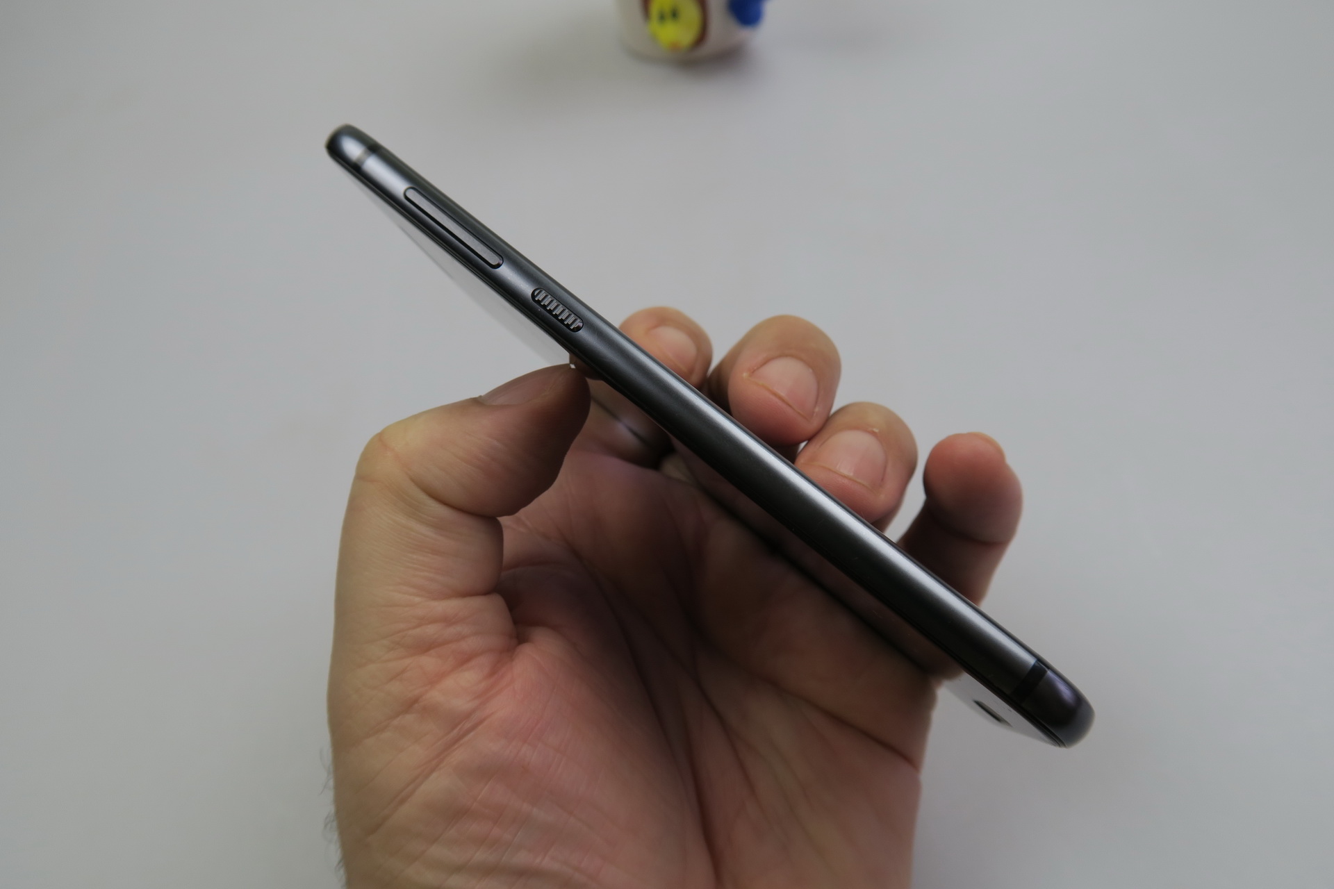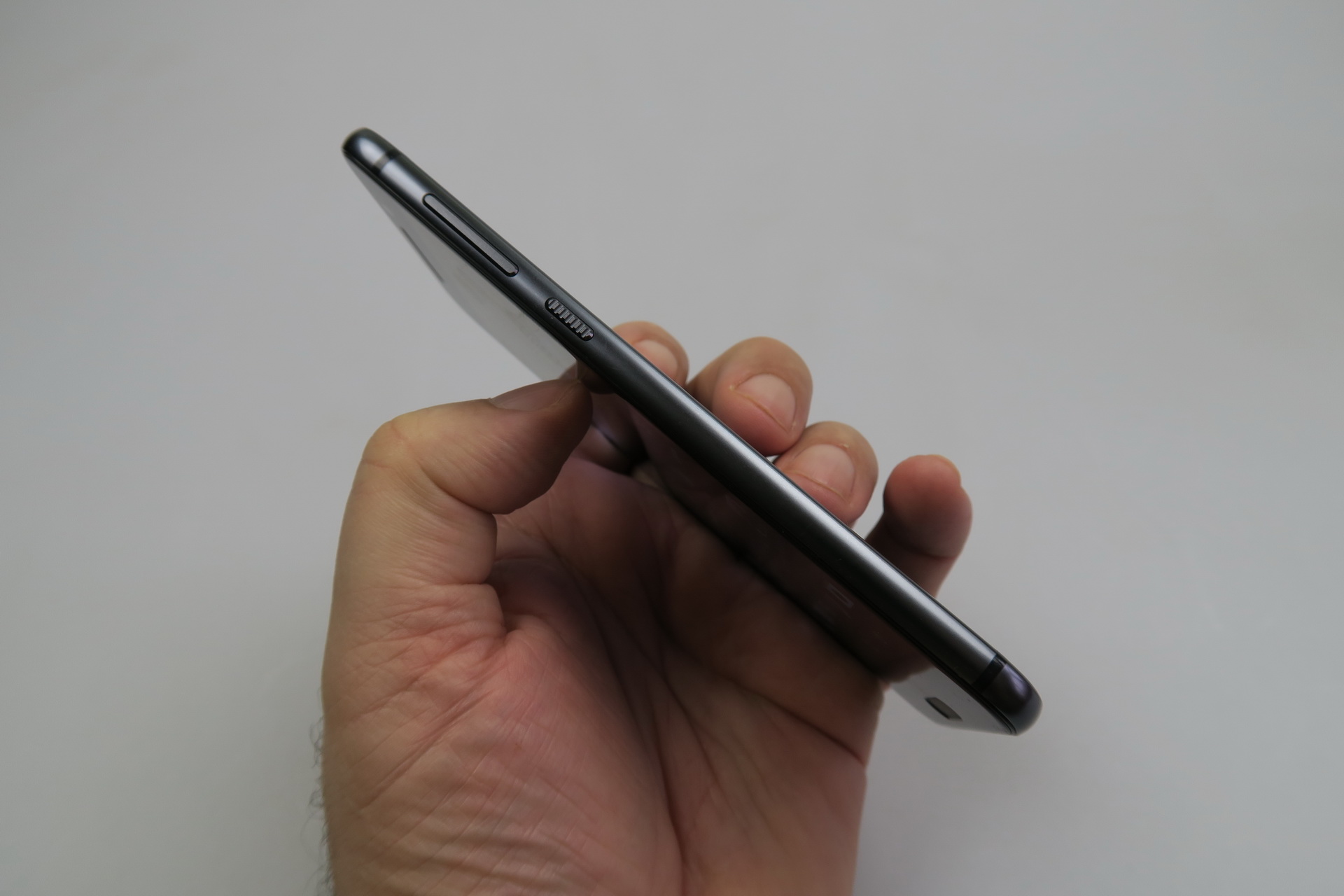 The rounded edges meet the panel edges in a more angular area, which improves grip a bit. This model has a very well balanced weight and it comes in gray, silver, gold or burgundy. Upfront we find a 2.5D curved edge glass panel, a capacitive Home button with fingerprint scanner embedded, the front camera, earpiece, sensors, notification light and the not so narrow bezels.
