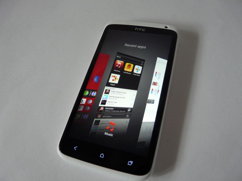 As far as the software goes, HTC One X is all about Android 4.0 + HTC Sense 4.0. Luckily, HTC didn’t play with Android 4.0 customizations too much, keeping the look of the new HTC Sense more minimalistic. They got rid of that useless carousel and also you can see that now we have 3 capacitive buttons below the display, used to control Android 4.0. No trace of search or menu button any more, there are only the Home, Back and Recent Apps buttons. The latter opens up an interesting set of previews for apps, that are shown as big thumbnails that are easy to swipe in order to shut down.