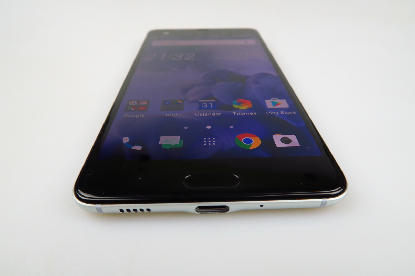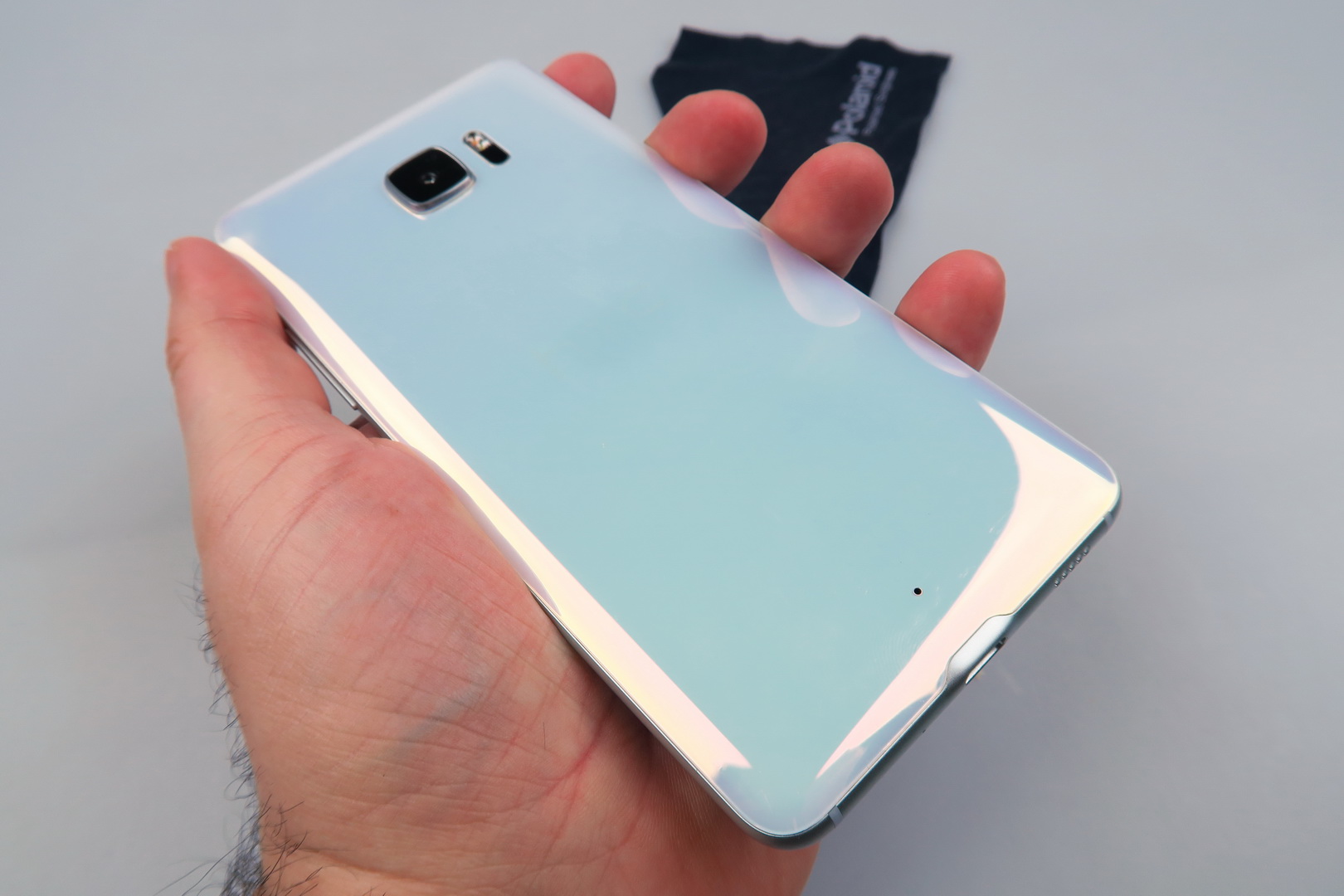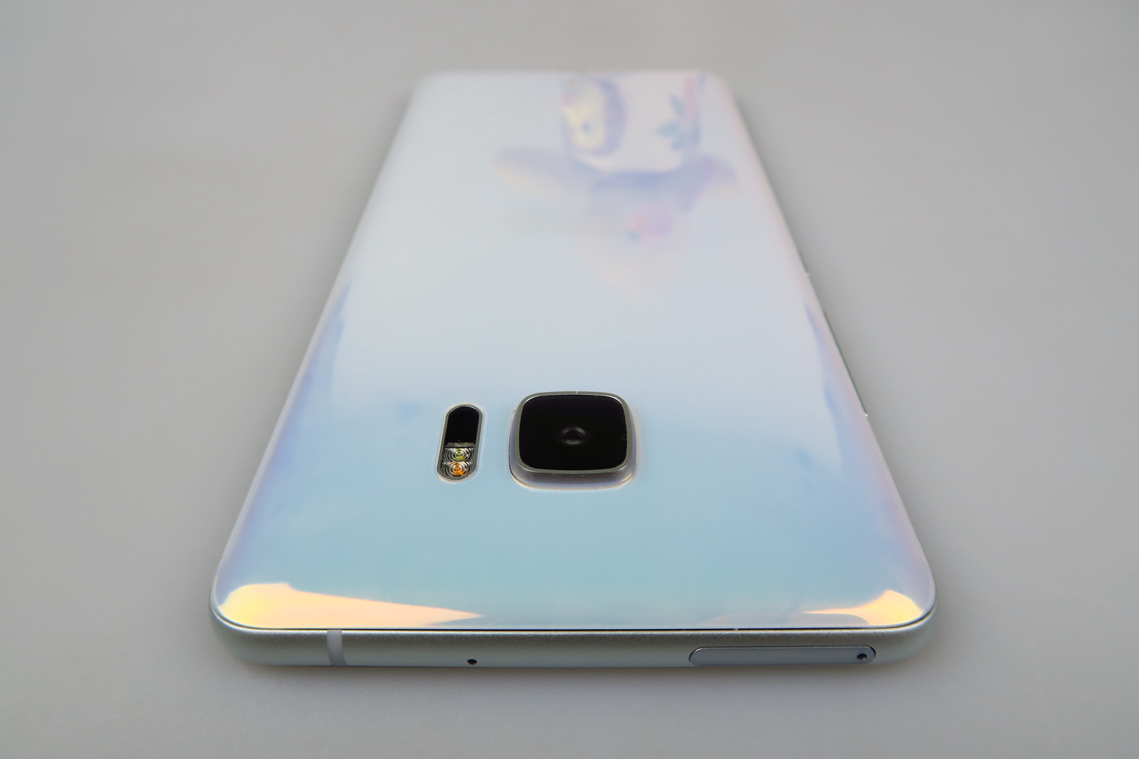HTC calls this “Liquid Surface” and it has something to do with the way that the glass at the back seems to change color when catching light. It’s a matter of taste, but some people may take this feature as a kitsch, while others see it as appealing. This one is a huge and slippery machine, prone to fingerprints and grease. It’s well built, but very massive and hard to wield.