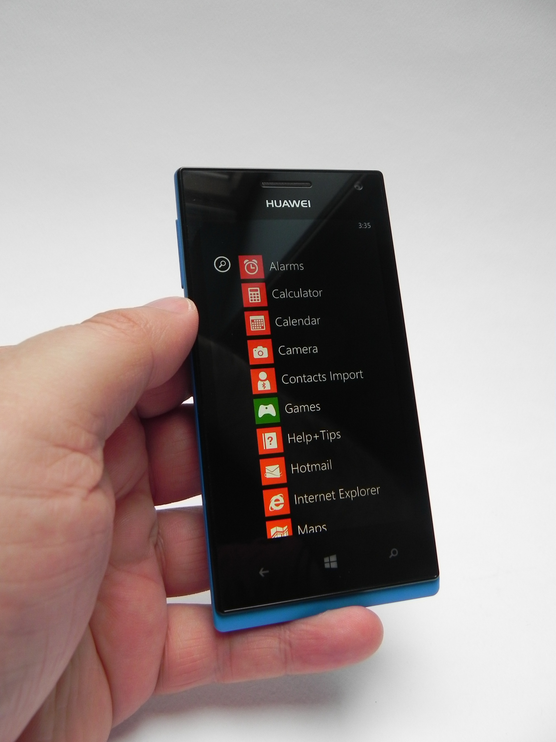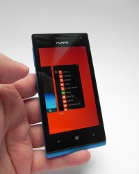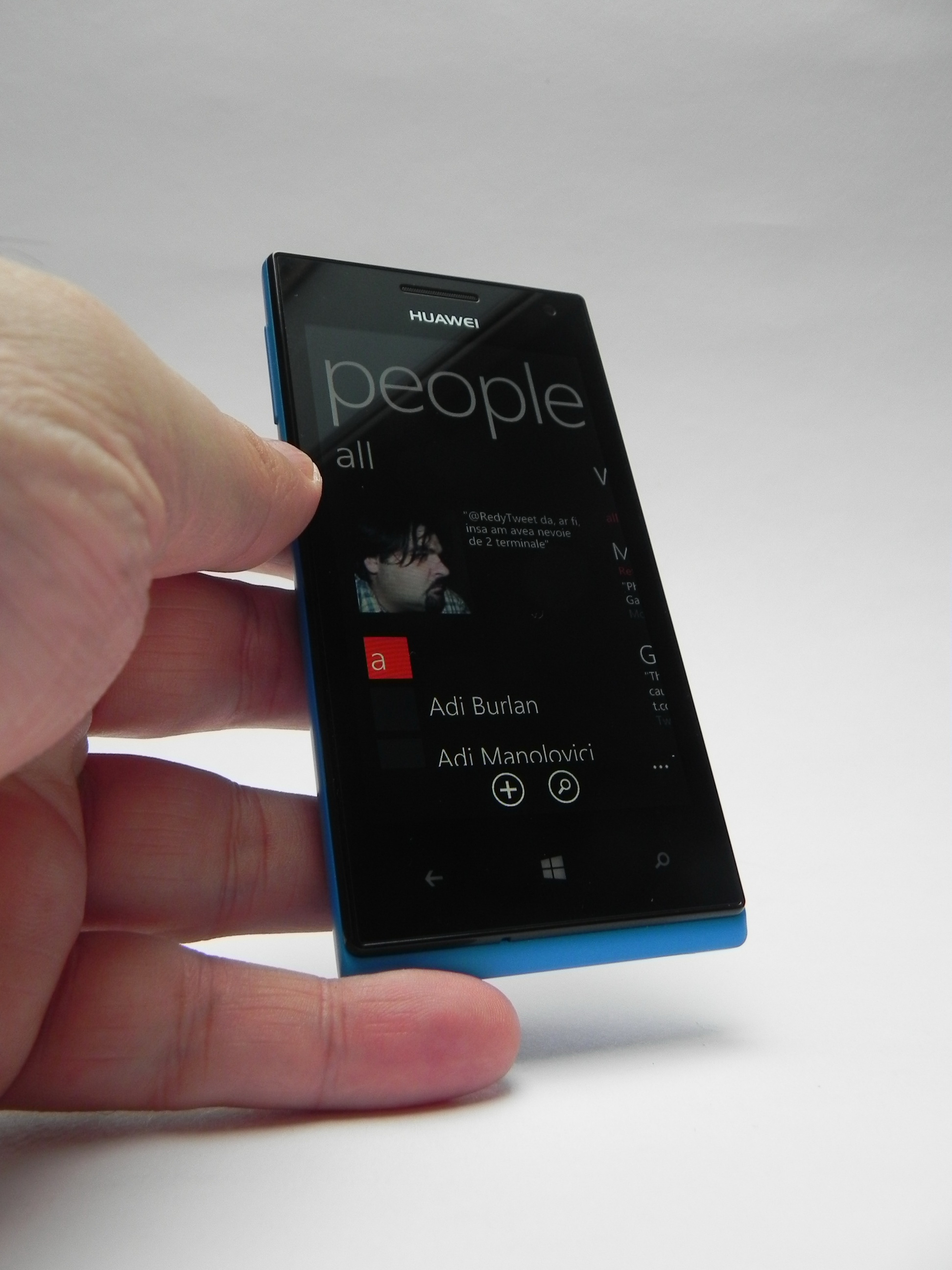I should also mention that this handset is not rounded and uses straight angles for its design. Huawei W1 is available in black or blue and it’s made of polycarbonate mostly. Its specs include a Qualcomm Snapdragon MSM8230 dual core 1.2 GHz processor, an Adreno 305 GPU and a 4 inch 480 x 800 pixel display. This is an IPS LCD screen with 233 PPI pixel density and other specs include 512 MB of RAM, 4 GB of storage (1.5 GB user available), WiFi dual band, DLNA, Bluetooth 2.1 and microUSB 2.0.