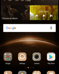 There’s no app drawer here, so all the apps are placed on the homescreens. The icons are very minimal and the lockscreen offers shortcuts for 4 apps when you perform a swipe up. If you pinch a homescreen, you will trigger the wallpaper, widget, transition and layout area. A swipe down in the homescreen triggers the notification area, shaped like a timeline and swiping to the side goes to the Quick Settings.