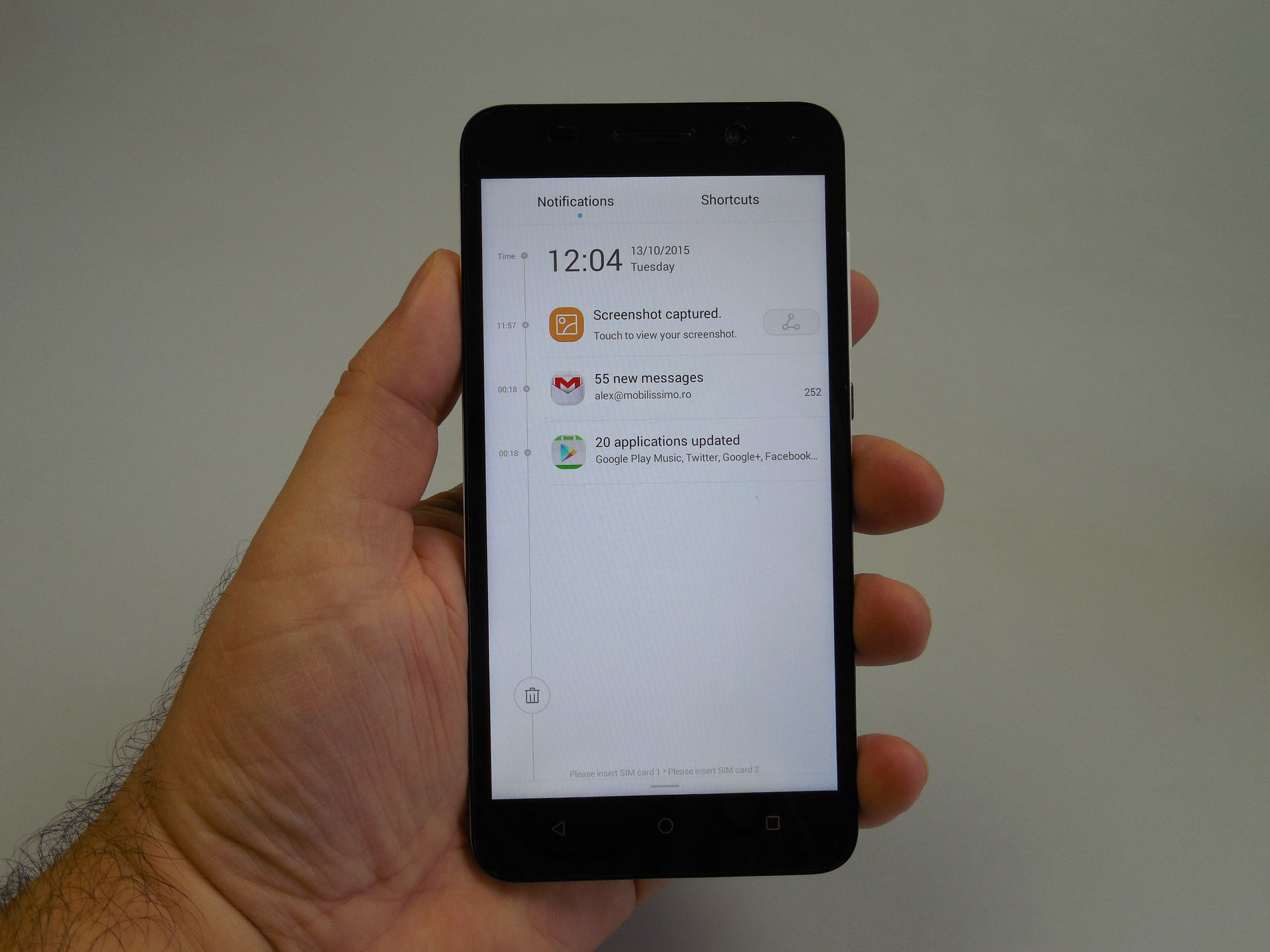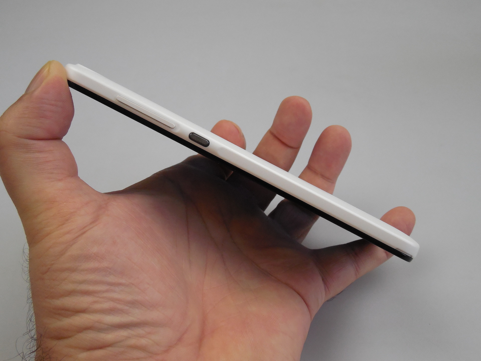 At the back there’s the main camera plus LED flash and a cover that’s easy to remove. Below it there’s the non removable battery, a microSD card slot and the micro SIM slots. At the top there’s the audio jack and microphone, while at the bottom we find the speaker, microUSB port and another microphone. There’s nothing on the left side, while on the right you can find the volume buttons and Power button, all of them comfy to use and offering good feedback.