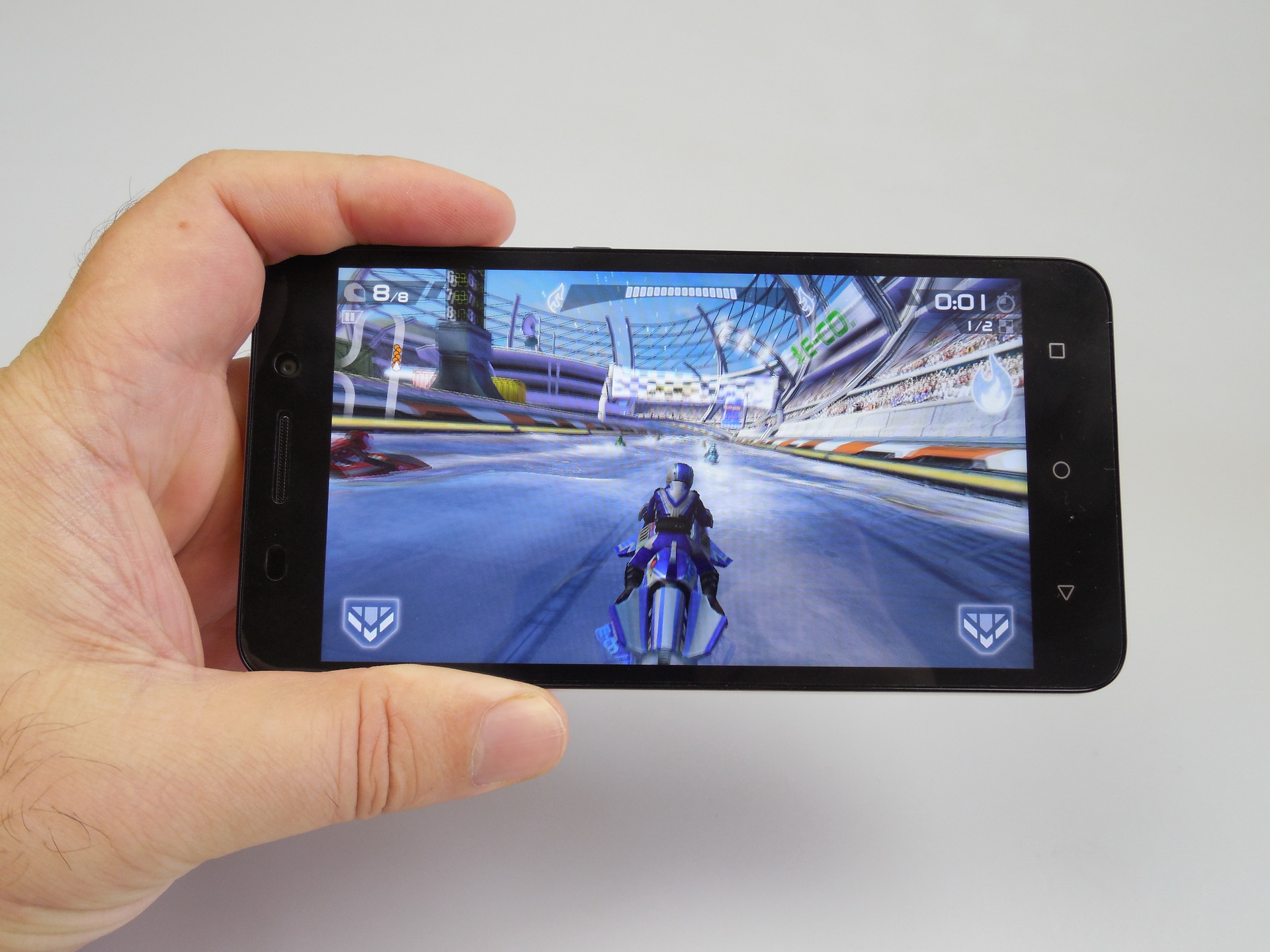 Huawei Honor 4X only wins 2 out of 11 tests, or 3 out of 11 minus the Allview model. Strangely, it has the same specs as the Huawei P8 Lite, but lesser results. At least it has no lag and runs Riptide GP2 just fine. Still, the software here is kind of old: Android 4.4.2 with EMUI 3.0 on top and this is a typical EMUI affair, with no app drawer, flat UI and some iOS influences.