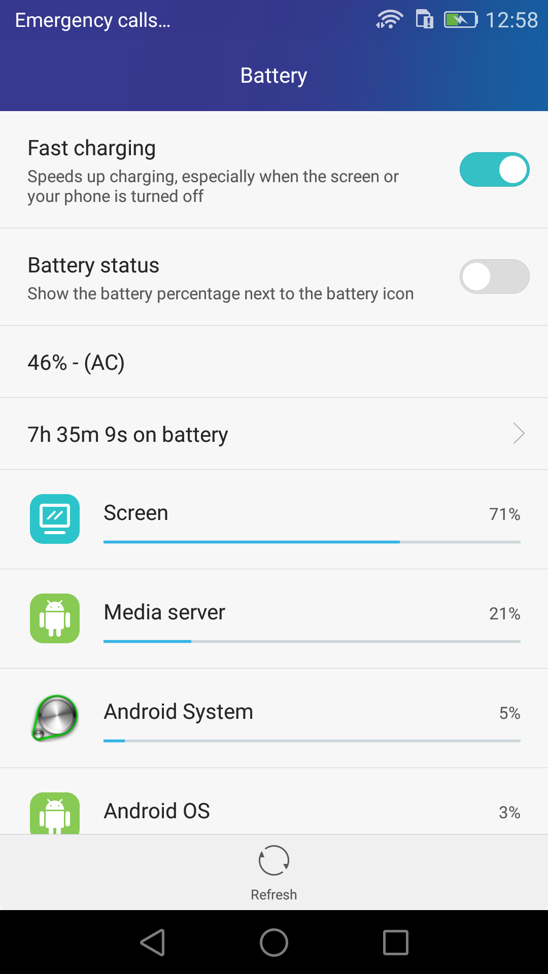 There’s also FM radio, microUSB and special technologies like WiFi+ and Signal+, that boost both types of connectivity. Calls are loud and clear and the microphone is great. So is the signal. Speedtest brought us a download speed of 23.94 Mbps and upload of 26 Mbps. Huawei Honor 7 packs a 3100 mAh Li-Po battery, with faster charging and the promise of 2.57 days of medium use.