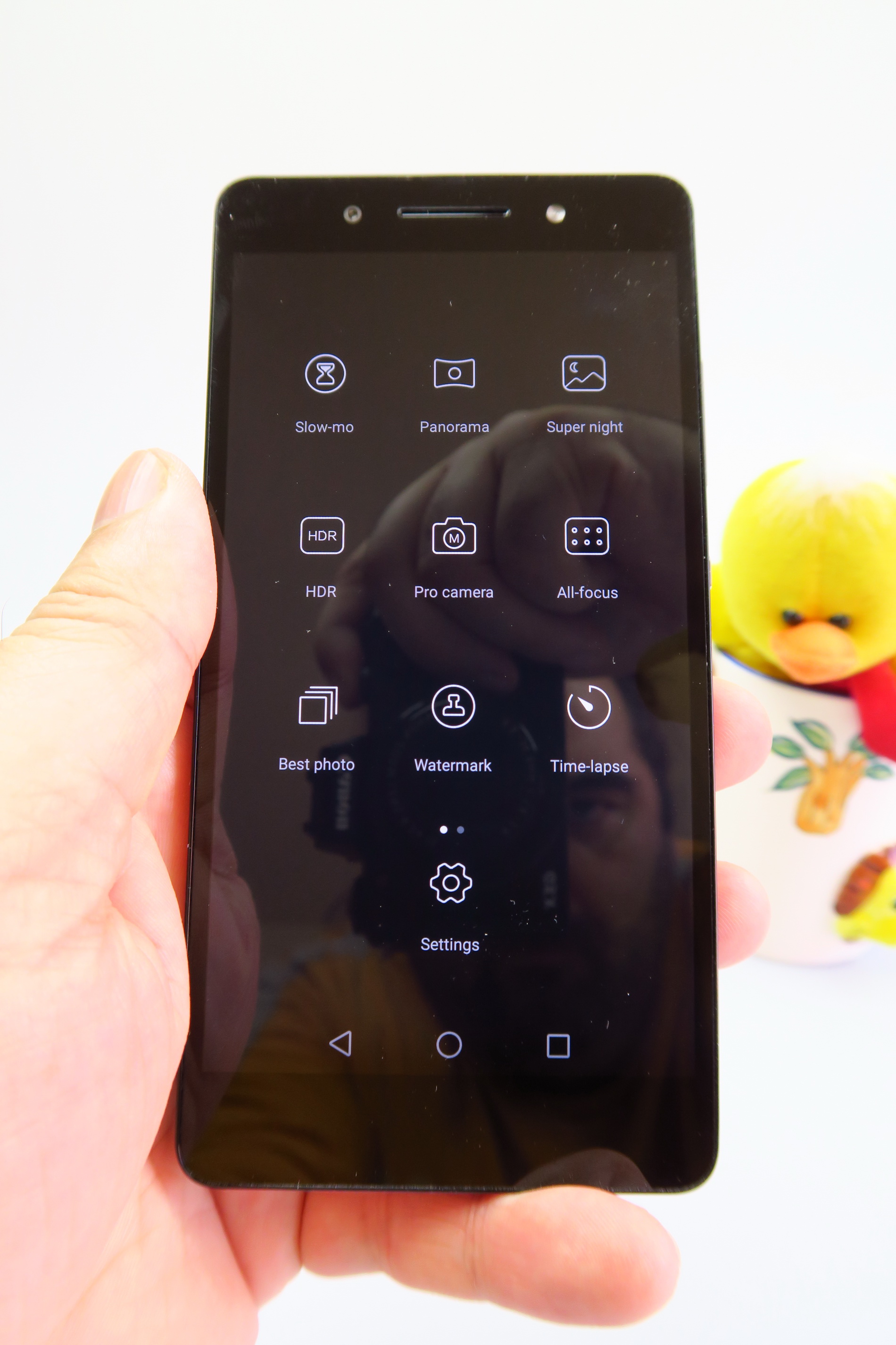 We used a decibelmeter to measure speaker performance and got up to 81.1 dBA, exactly like the Huawei Honor 6, Mate S and Nexus 6P, but below the Huawei P8 Lite. The only special settings included here have to do with a Karaoke mode. Now we have finally reached the camera.