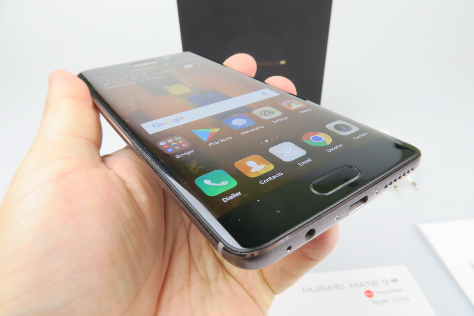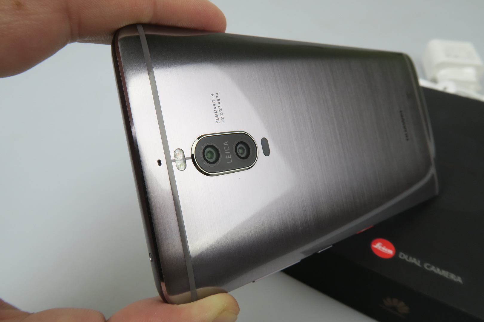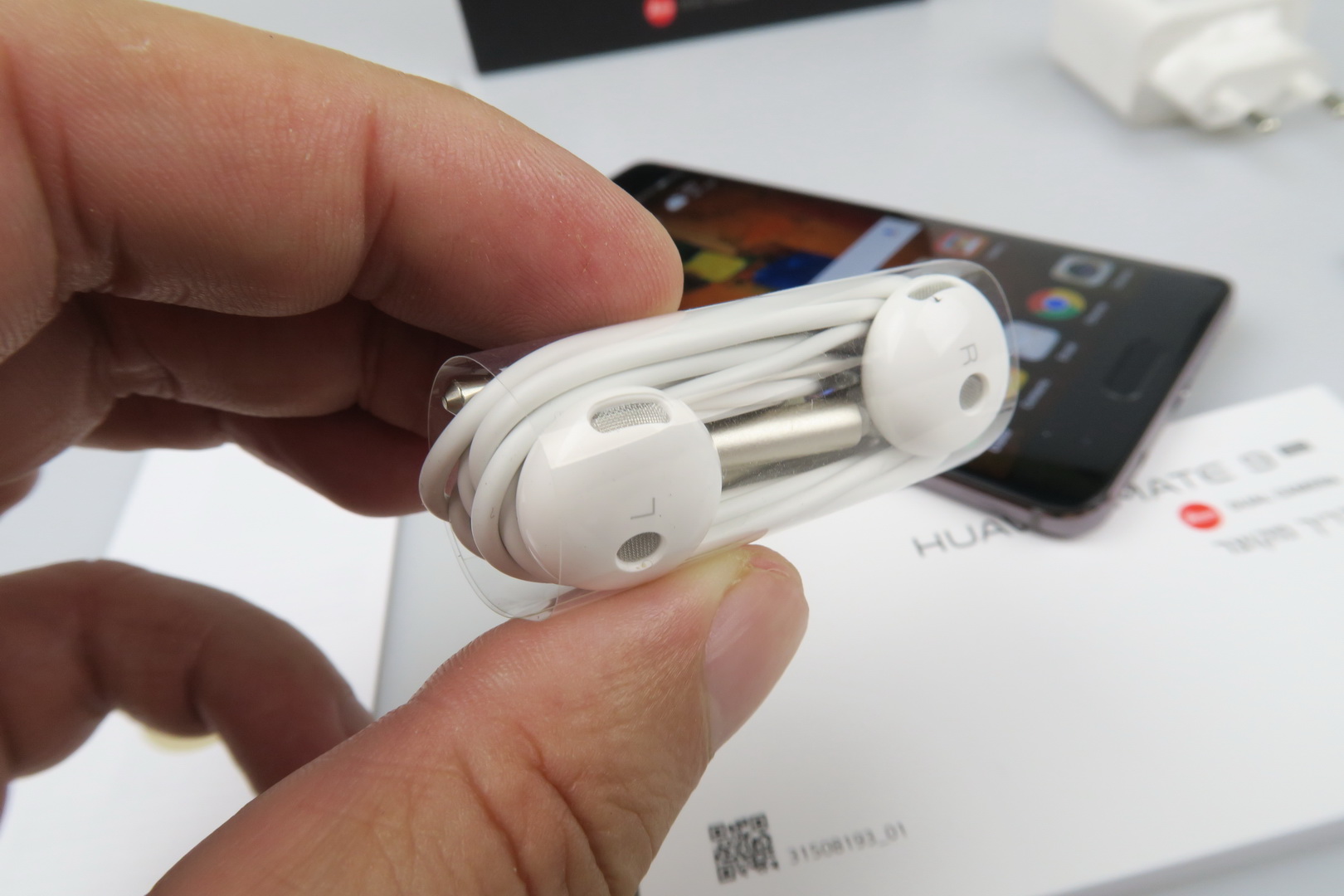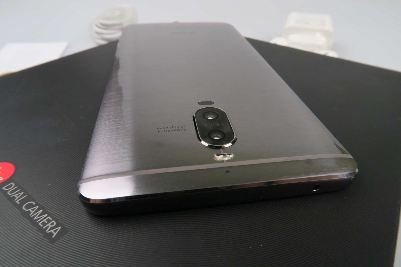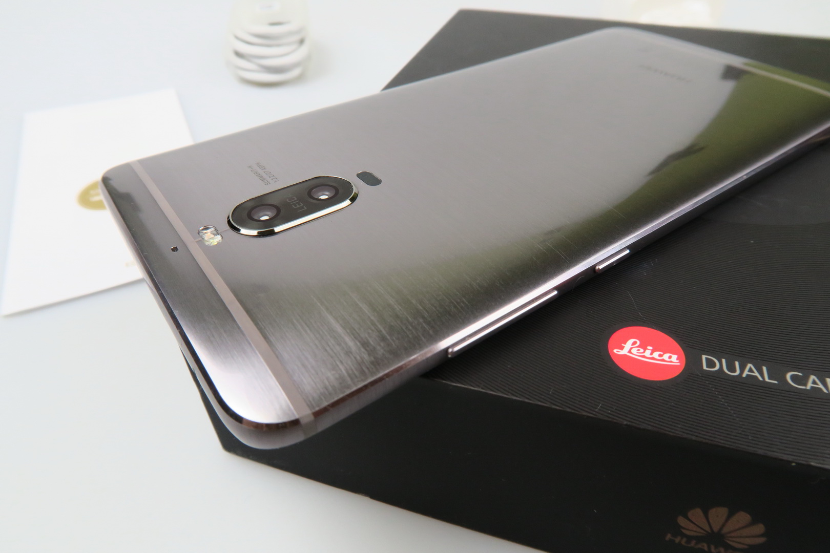 Interestingly enough, in spite of the Pro branding, this is actually the smaller and more compact model, at 5.5 inches. The Mate 9 is a 5.9 incher, just so you know. The Mate 9 Pro comes inside a flat box, with a few smaller boxes inside that have a velvet-like texture. Inside those boxes we find an USB Type-C cable, charger, headphones, the metal key used to access the slots and a manual.