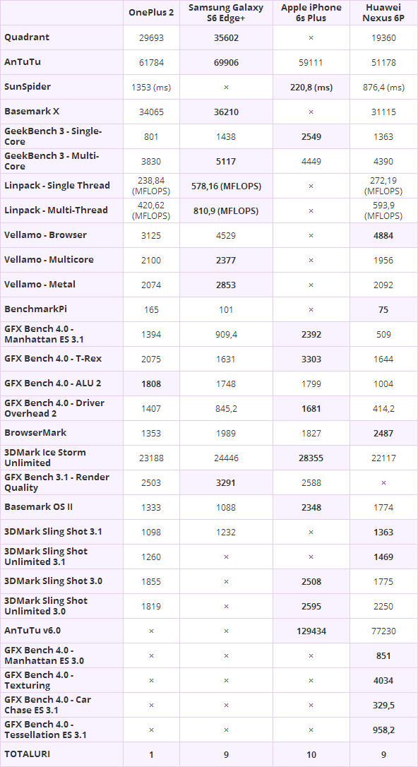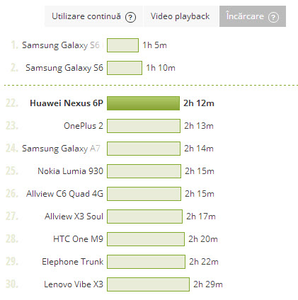 We scored below the Huawei Honor 4X (7 hours and 30 minutes), ASUS ZenFone 2 Laser (8 hours and 16 minutes) and Huawei Mate 8 (9 hours and 3 minutes). Charging requires 2 hours and 12 minutes, with an unofficial charger, because we couldn’t get a hold of the official one, having a test version available. At least we charged faster than the OnePlus 2 (2 hours and 13 minutes), HTC One M9 (2 hours and 20 minutes) and iPhone 6S Plus (2 hours and 57 minutes), but slower than the Nexus 6 (1 hour and 50 minutes) or the Galaxy Note 5 (1 hour and 27 minutes).