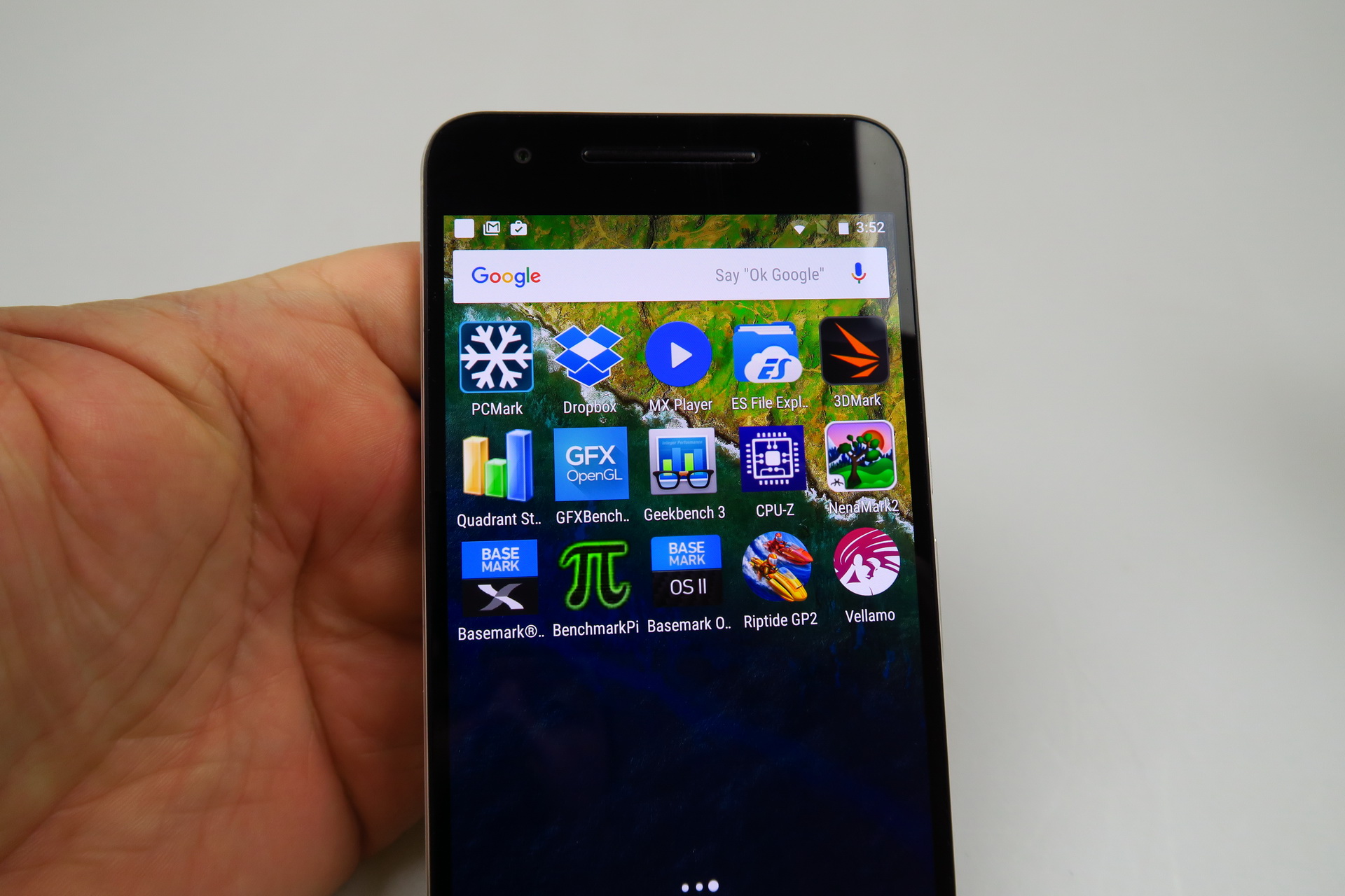 Nexus 6P certainly doesn’t have any lag, it has a fluid UI and everything feels very smooth on it, so performance is top notch. Games run in excellent fashion, from Grand Theft Auto Liberty City Stories to Riptide GP2. In benchmarks, we compared the Nexus 6P to the OnePlus 2, Galaxy S6 Edge+ and iPhone 6S Plus. You can tell that the Snapdragon 810 CPU is handling a Quad HD resolution here, so that’s why scores aren’t exactly stellar. Here are the results: