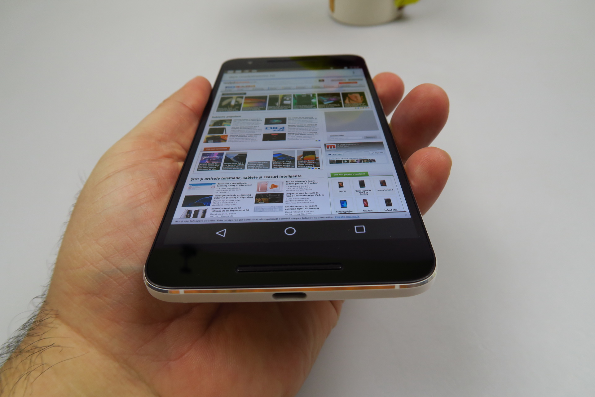 The top includes the audio jack and discrete antenna cutouts, while the bottom integrates an USB Type C port. To the left we find the SIM Slot, while the right side includes the dotted Power button, for improved feedback. Also there is the volume button pair and finally, this model has a gently curved back and great attention to details. It’s the best looking Nexus so far.