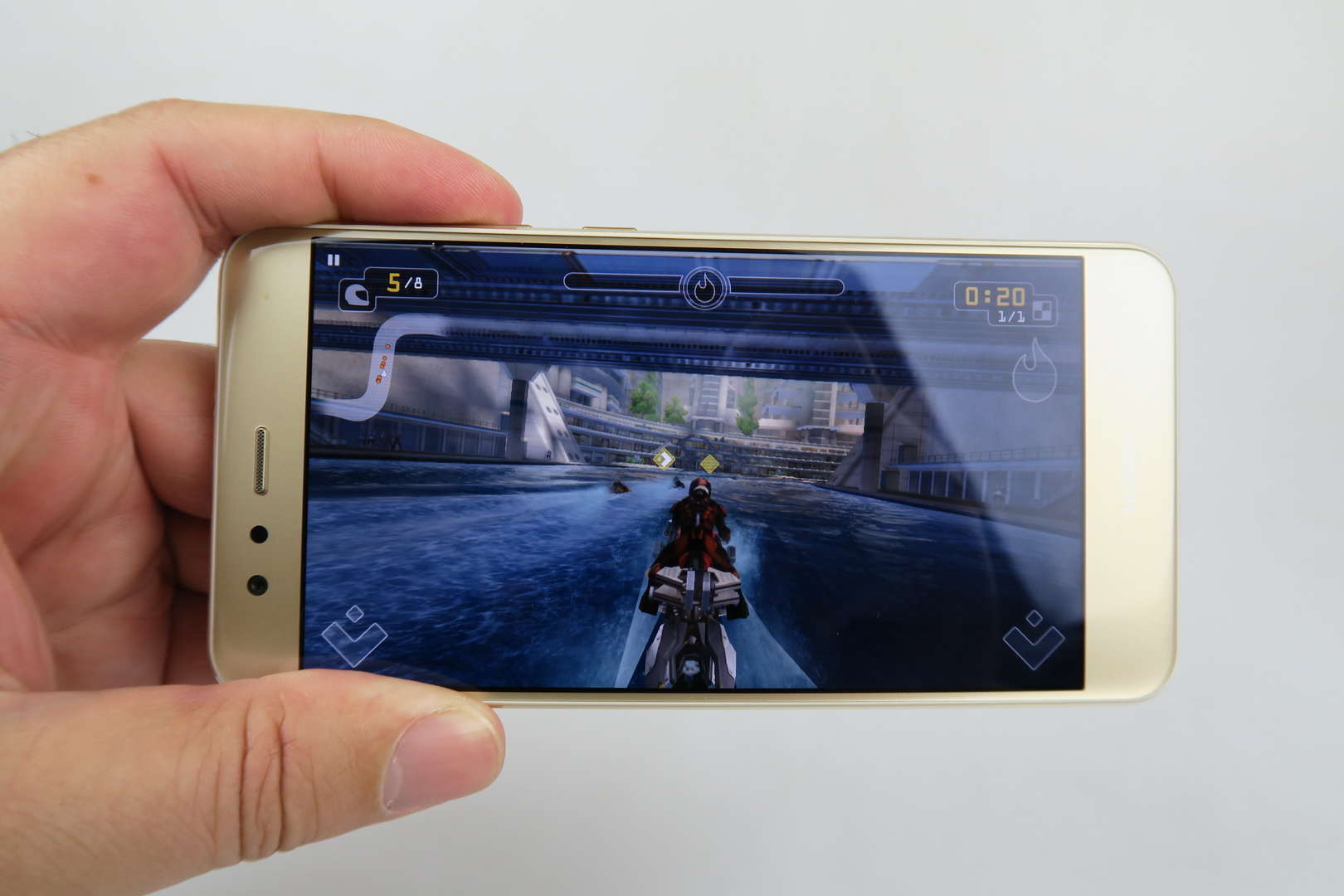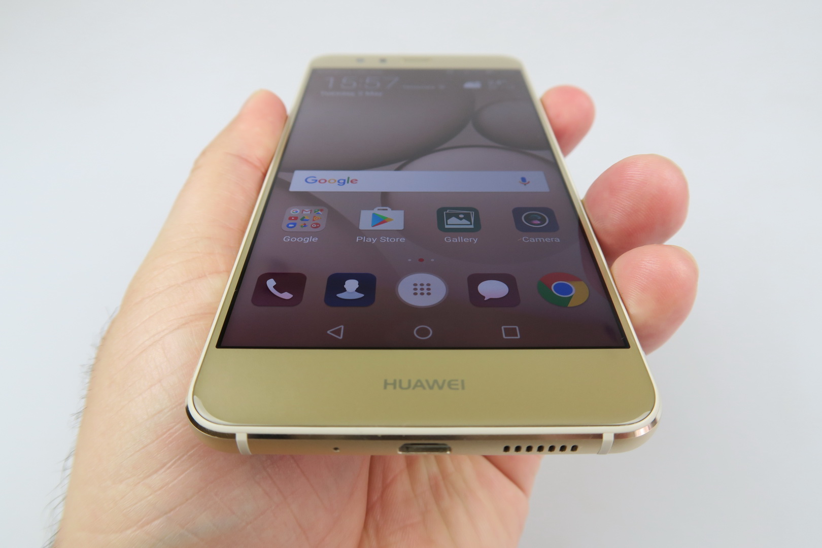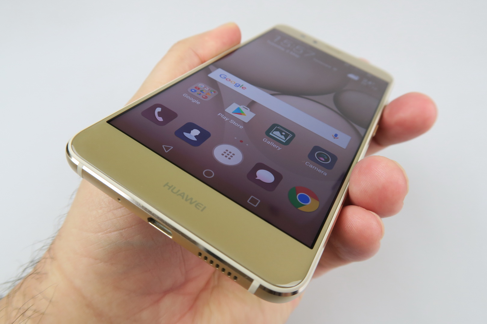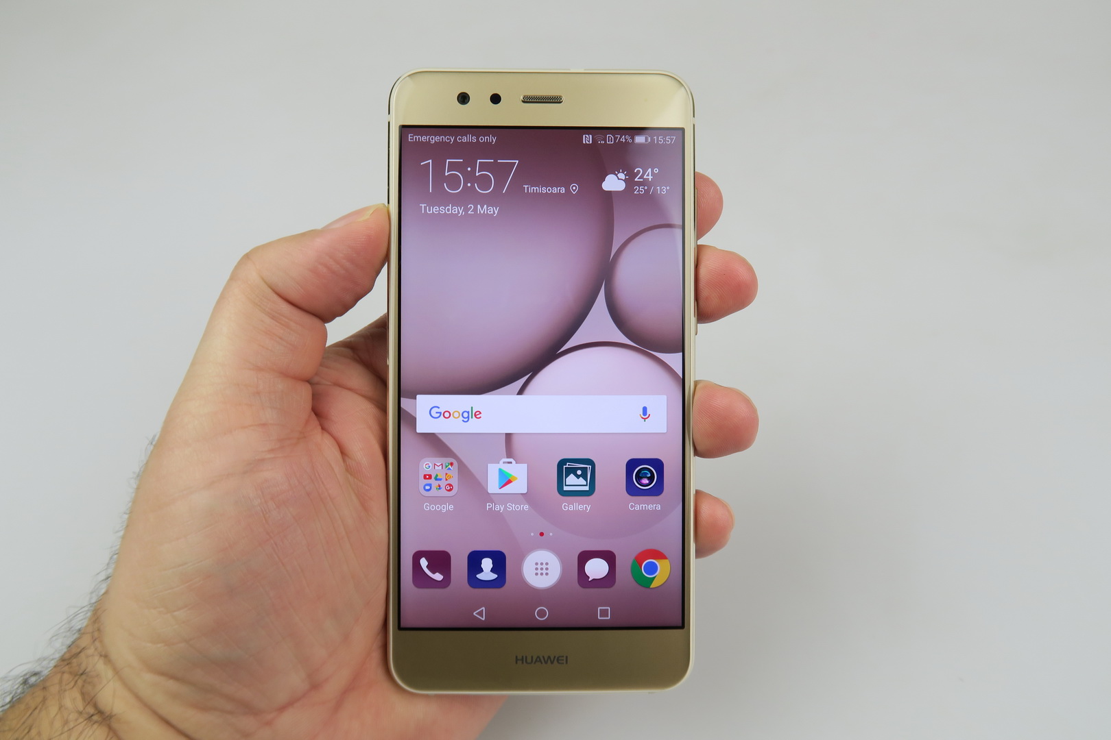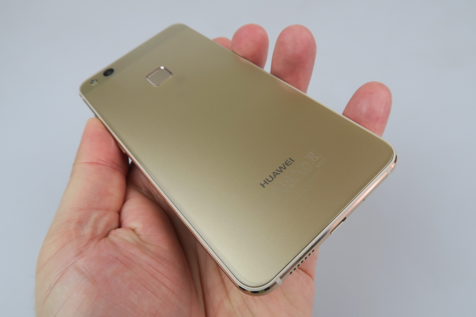 The phone provides comfy one hand usage and its buttons offer good feedback. The back side is not a fingerprint magnet, which is good news for a glass surface and this applies to the gold version we tested at least. Huawei P10 Lite feels like a very light phone, even lighter than its listed weight. It’s pretty premium for a midrange handset, priced at $300.