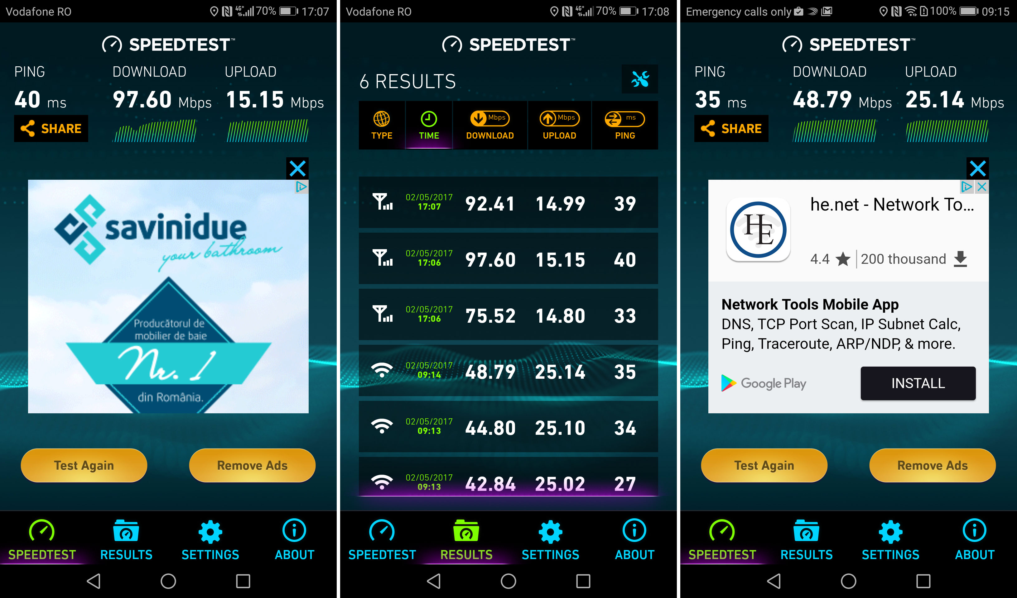 The Dialer includes a harassment filter, Speed Dial feature and Pocket Mode. The calls are loud and clear, noise cancelling is good and the microphone and signal were well within limits. We also did a SpeedTest, achieving 97 Mbps in 4G download and 15 Mbps in upload. The WiFi results were at 48 Mbps download and 25 Mbps in upload. Everything within limits, that’s for sure.