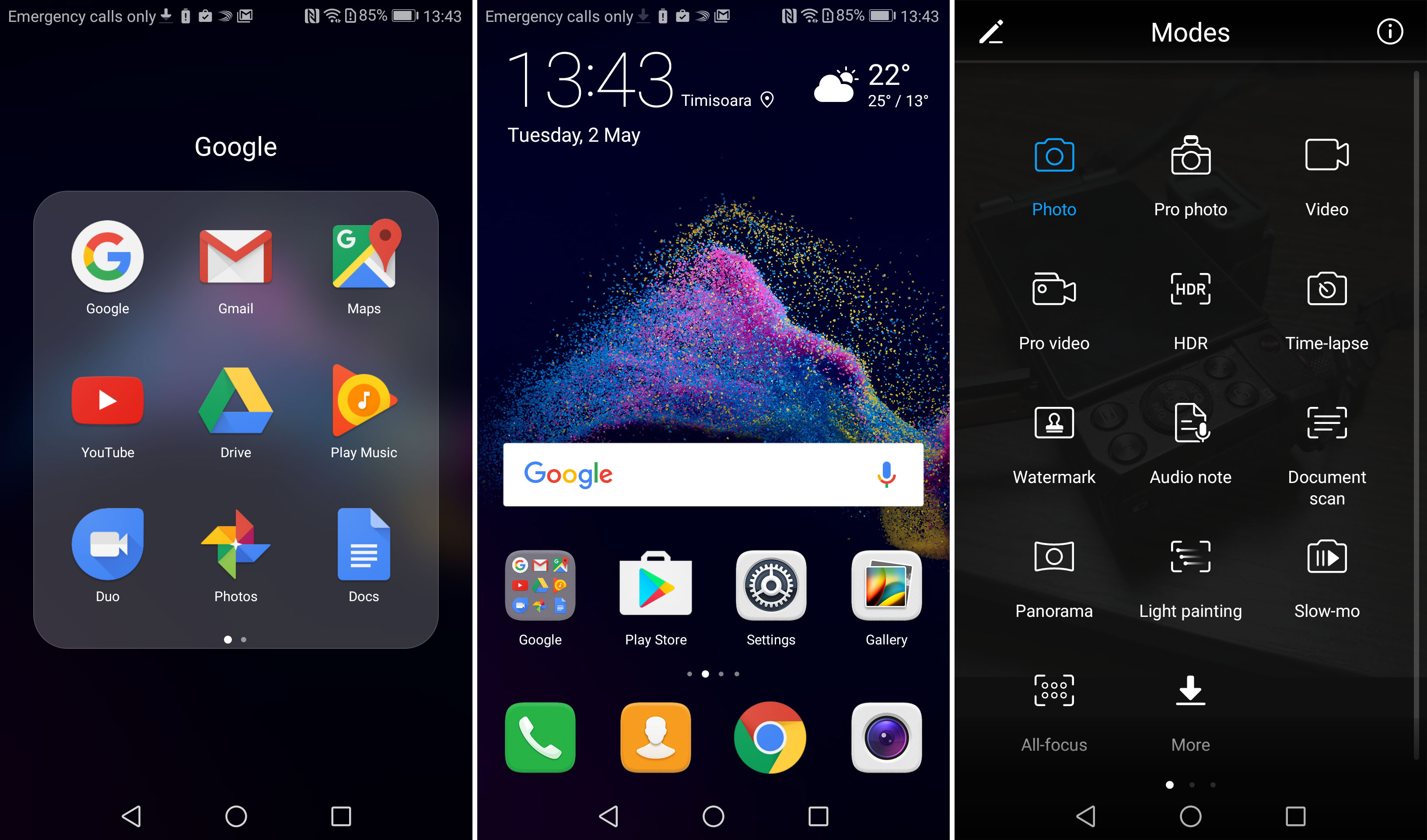 The camera app doesn’t start up quite fast, but the focus speed was OK . Picture taking could have been faster, though. The camera UI is typical, if you’ve seen a Huawei Nova, P9 Lite and P10 Lite lately. It’s got Beauty, Effects, Pro Mode, HDR, Time Lapse, Watermark and Audio Note. There’s also Light Painting and Slow Mo, as well as All Focus, so you can refocus after the shot.