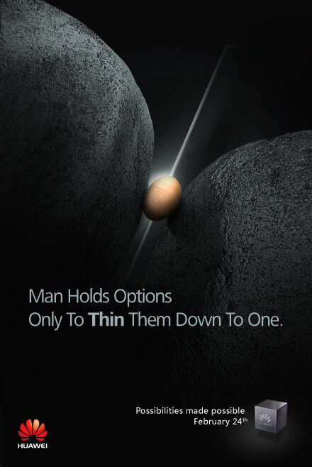 Huawei is the company that will open up the ball at MWC 2013, or better said before it, with a press conference going on on February 24th. They also did a similar thing at MWC 2012, where they kicked off the series of conferences. Now they’re teasing their event at MWC 2013 with the poster below, that frankly doesn’t say that much.