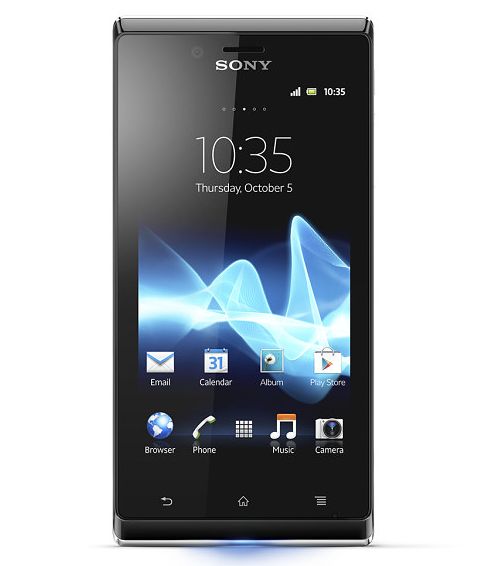Finally, the Xperia J has a 4 inch screen, with FWVGA resolution and Gorilla Glass protection. This model has a single core 1 GHz Scorpion CPU, 512 MB of RAM and Android 4.0 ICS, so it fits in the lower price range area. It has 4 GB of storage and a microSD card slot. The camera at the back is a 5MP unit and the Xperia J is actually pretty thin for an entry level unit: 9.2mm to be more precise. It’s still a bit heavy, at 130 grams. It packs in a 1750 mAh battery, apparently. Picture of the Xperia J: