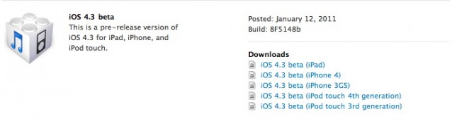 Although last we heard iOS 4.3 was coming in March, Apple just made the beta 1 version of the software available through its developer portal. The new version became famous days ago, as it was rumored to include the WiFi hotspot feature for the GSM iPhone that we’ve already seen on the CDMA one announced by Verizon.