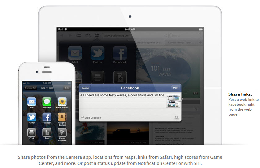 Every corner of the OS allows you to like, comment or share via FB. There’s even Facebook in the App Store, so you can see what apps your friends dig and you can post to the social networking service from Maps, Photos and you also get a very good integration of FB with the Notification Center. Facebook is supported by Siri, so you can dictate a new status easily. Also, using the new APIs available for developers, any app can integrate Facebook immediately. In case you’re wondering, the beta for iOS 6.0 is already available for developers and the full version will come this fall, most likely with the new iPhone.