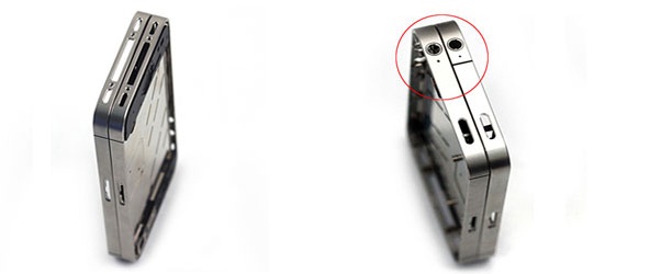 As you can see, there are 4 black separators shown in the pics, unlike the 3 on the current generation of iPhone. Also, the lower left band of the phone, the one that has been causing the Antennagate scandal is still there, but you’ll also find a new black band above the mute rocker, as an extra.