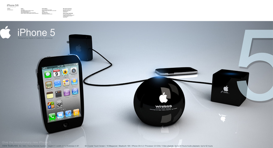 The iPhone 6 uses 3D sound and 3D hologram technology, on top of a 4.3 inch display and a curved chassis that radically changes the classic iPhone design. The resulting smartphone measure s8.49mm and uses a 3D TouchWiz UX, although I’m sure Samsung would objet strongly to that. Other specs include a dual core processor and possibly a very good camera, maybe even a 3D one. Moving on to the iPhone 5 concept created by Chris Youn, this one involves a 3D Crystal touchscreen, a 16 megapixel camera and a 2.6GHz processor. Here’s the device: