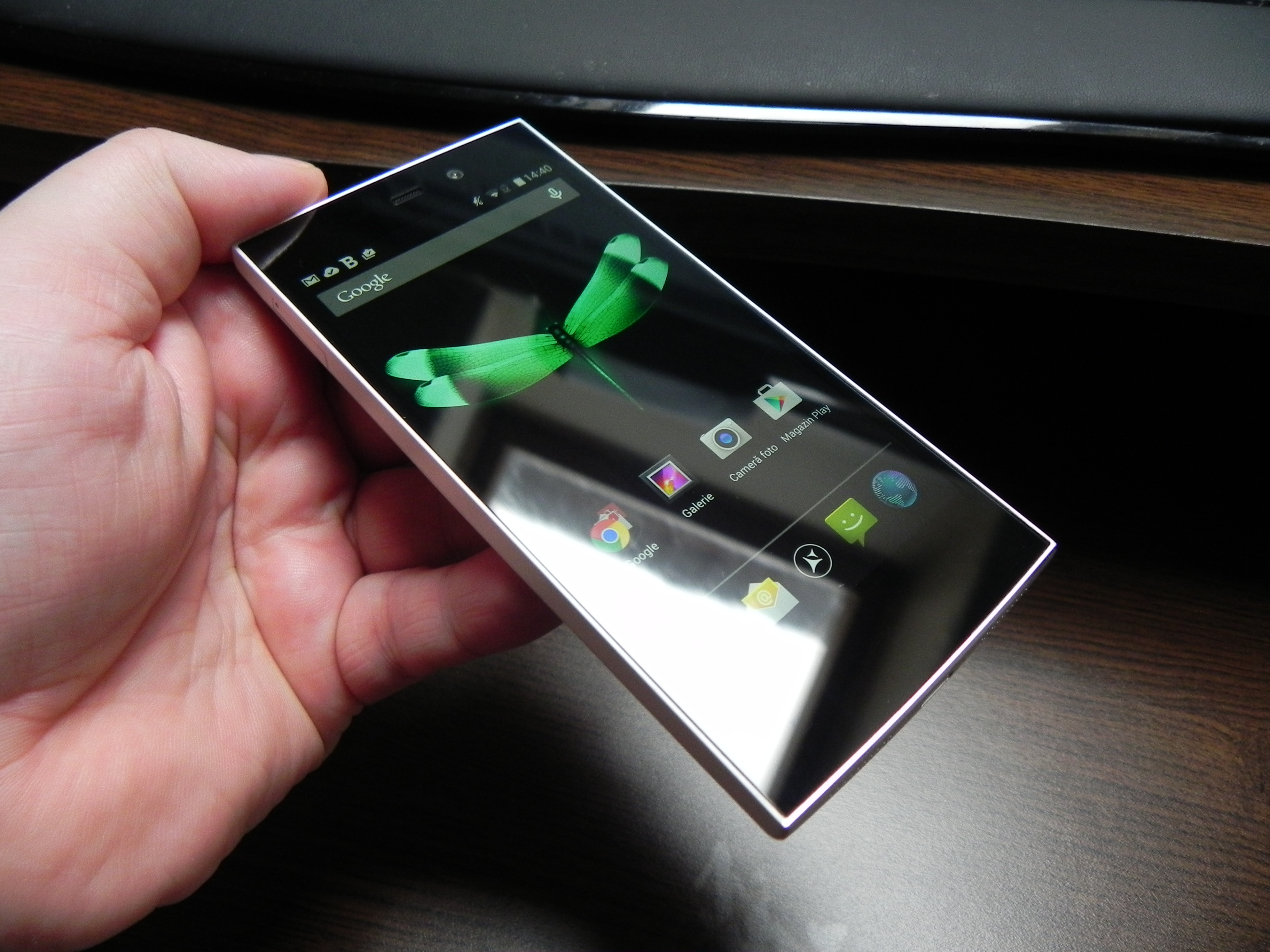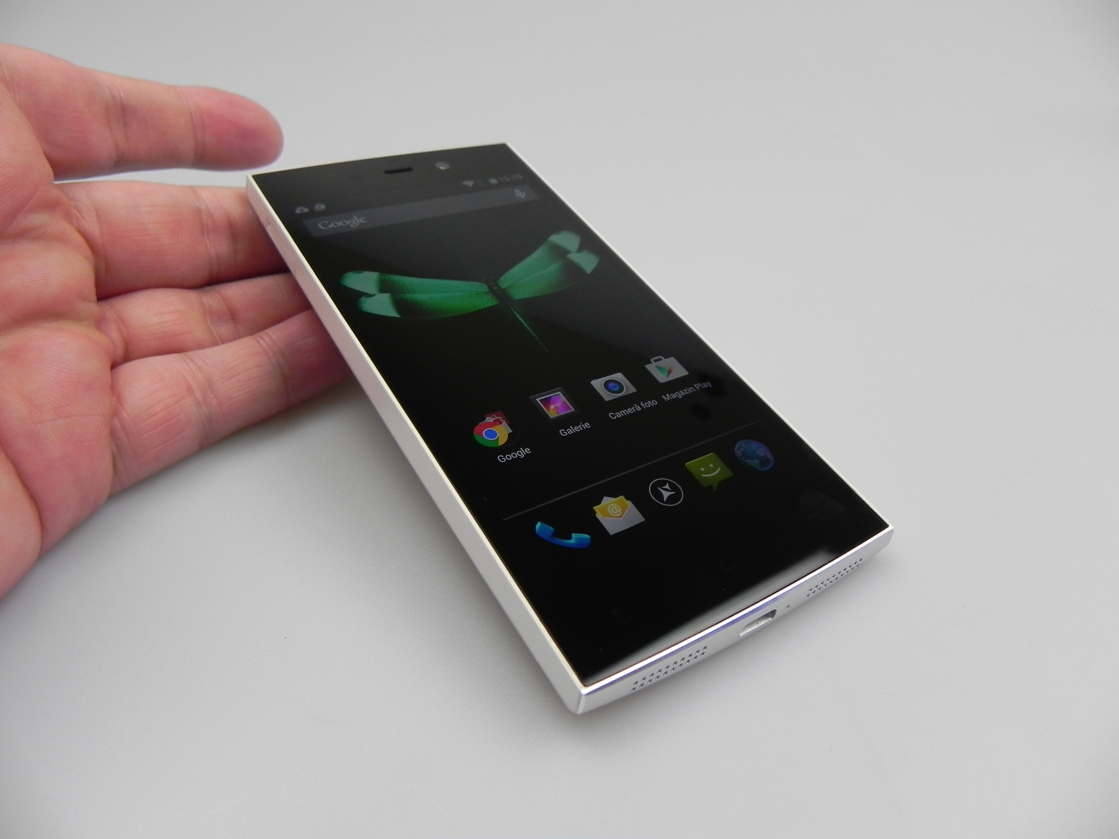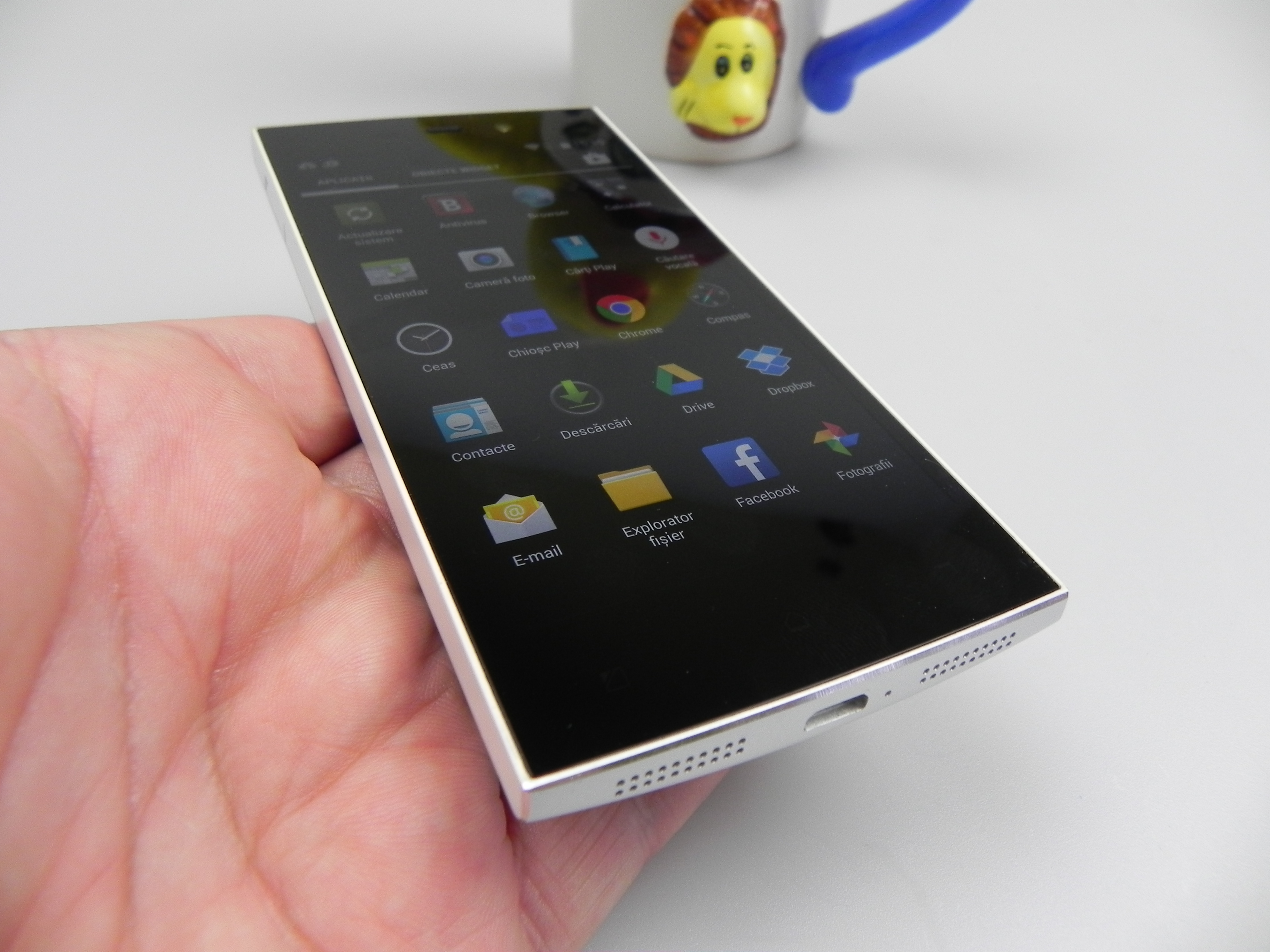 The device was also tested with a thermometer, achieving 38.5 degrees Celsius, after 15 minutes of playing Riptide GP2, so there’s no overheating. The browser was reasonably fast and the keyboard was the stock one. The phone calling part offered loud and clear calls, an OK volume, but there were problems with the WiFi and 3G signal and abnormally low download speeds, on both connections, sadly. The fault of the metal case? Maybe…