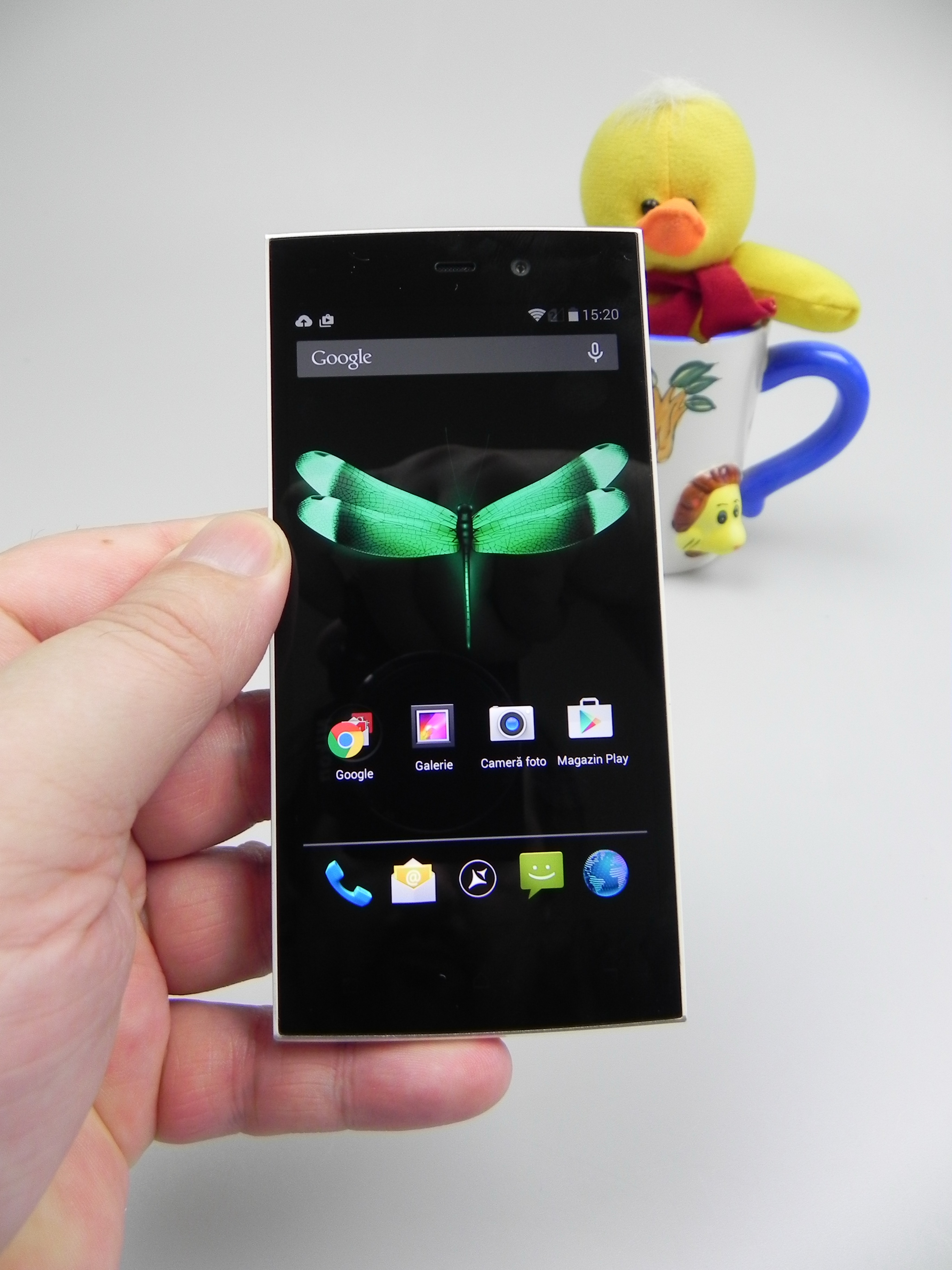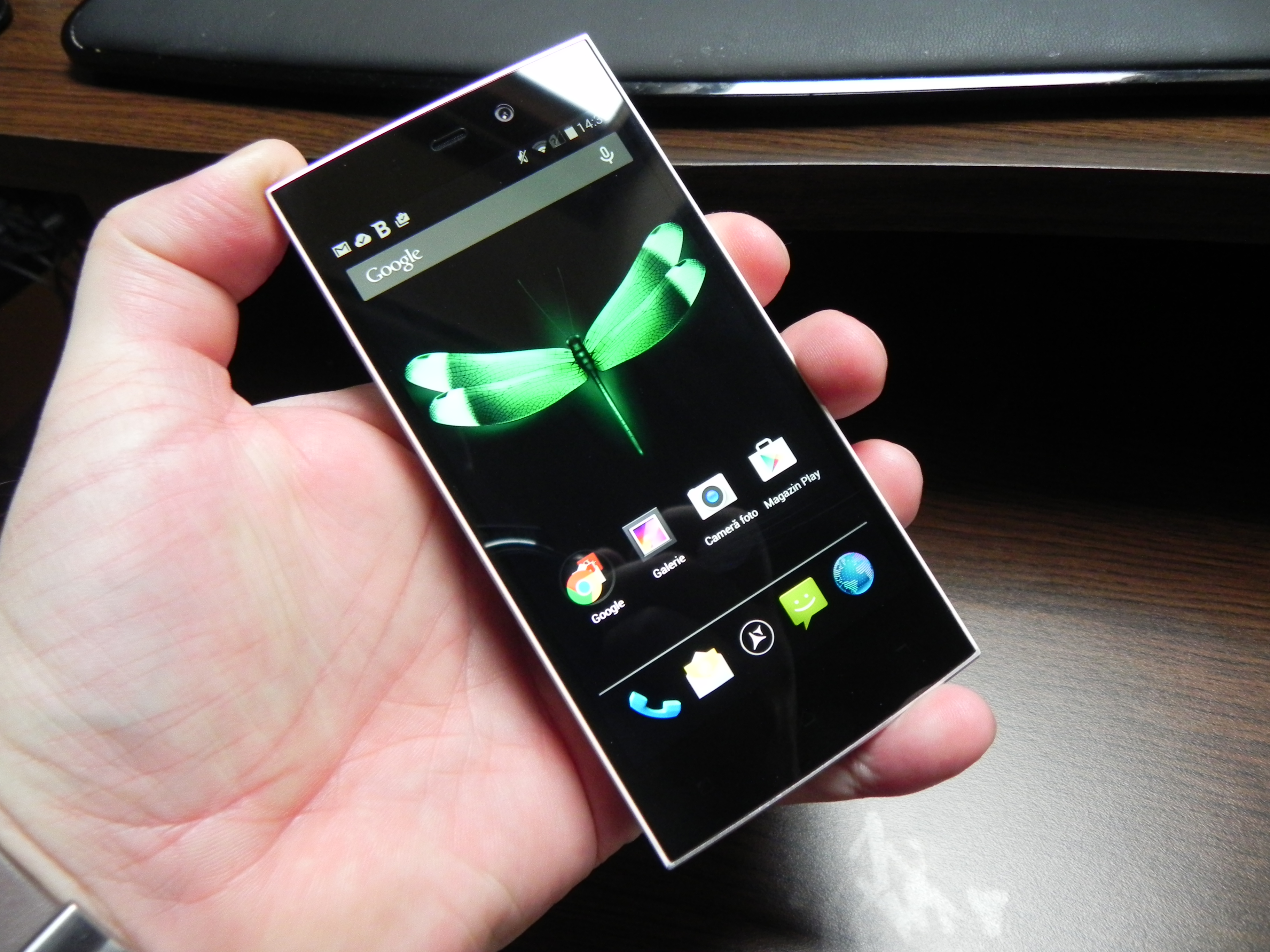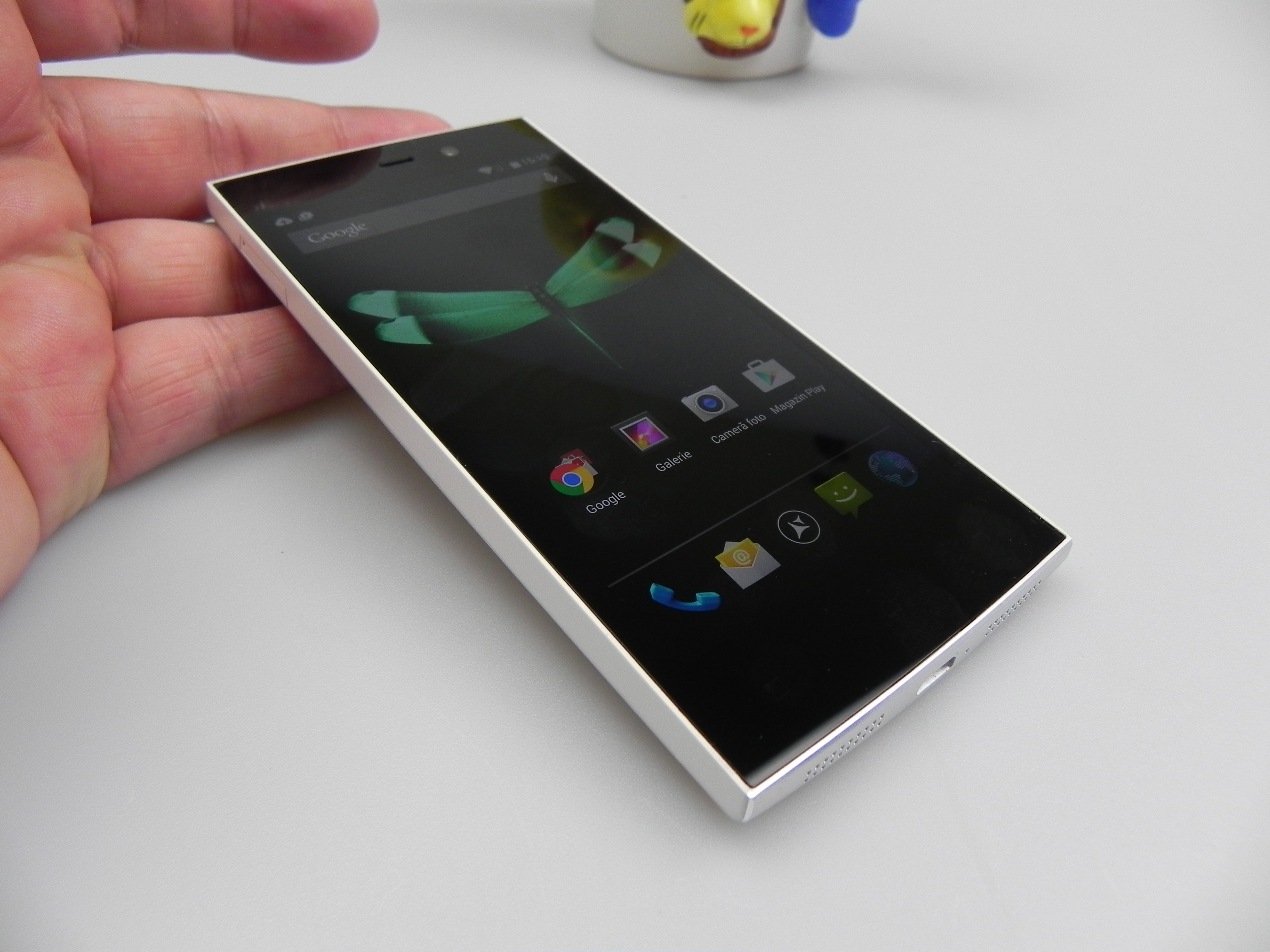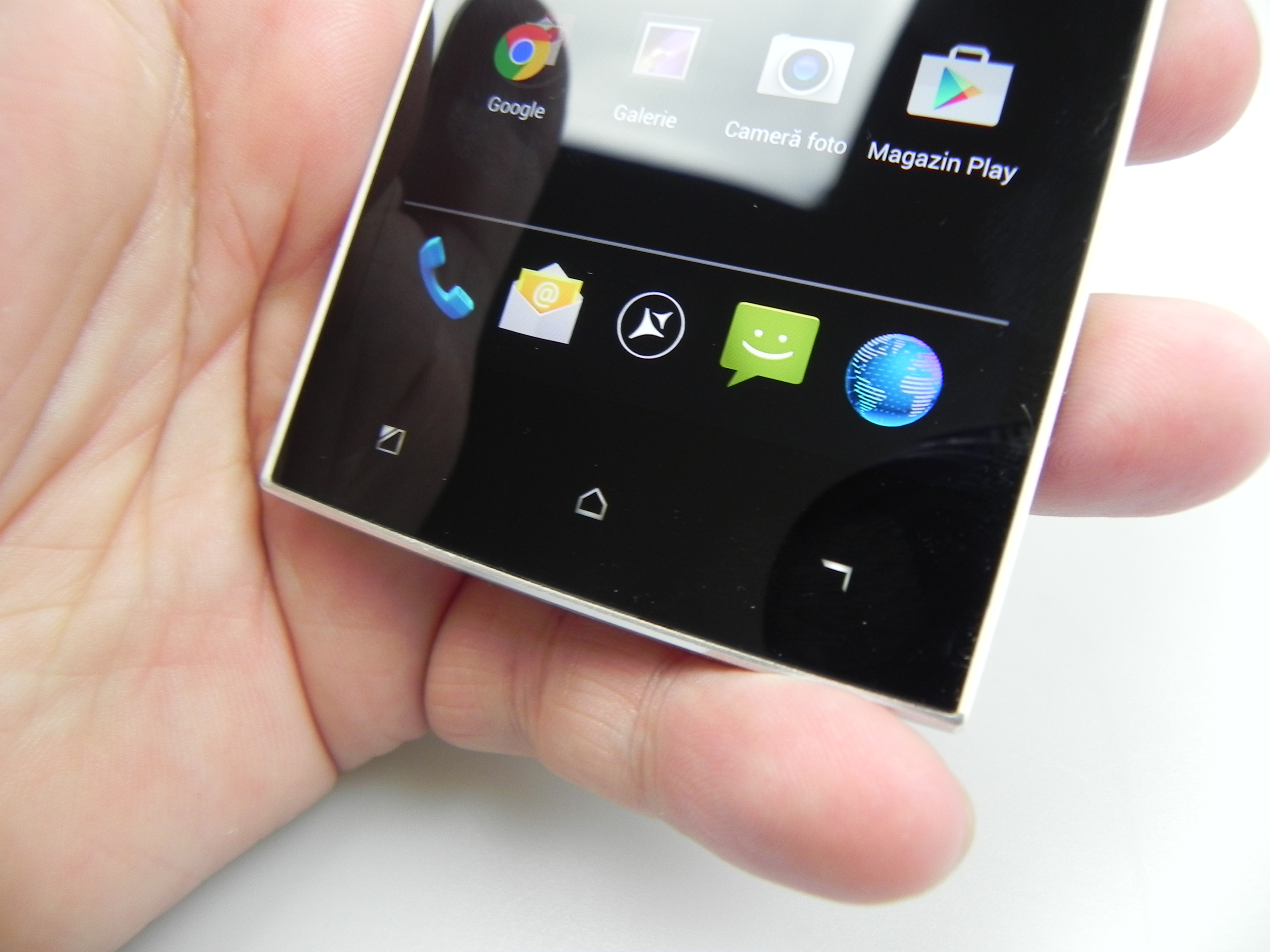 The device was also tested with a thermometer, achieving 38.5 degrees Celsius, after 15 minutes of playing Riptide GP2, so there’s no overheating. The browser was reasonably fast and the keyboard was the stock one. The phone calling part offered loud and clear calls, an OK volume, but there were problems with the WiFi and 3G signal and abnormally low download speeds, on both connections, sadly. The fault of the metal case? Maybe…