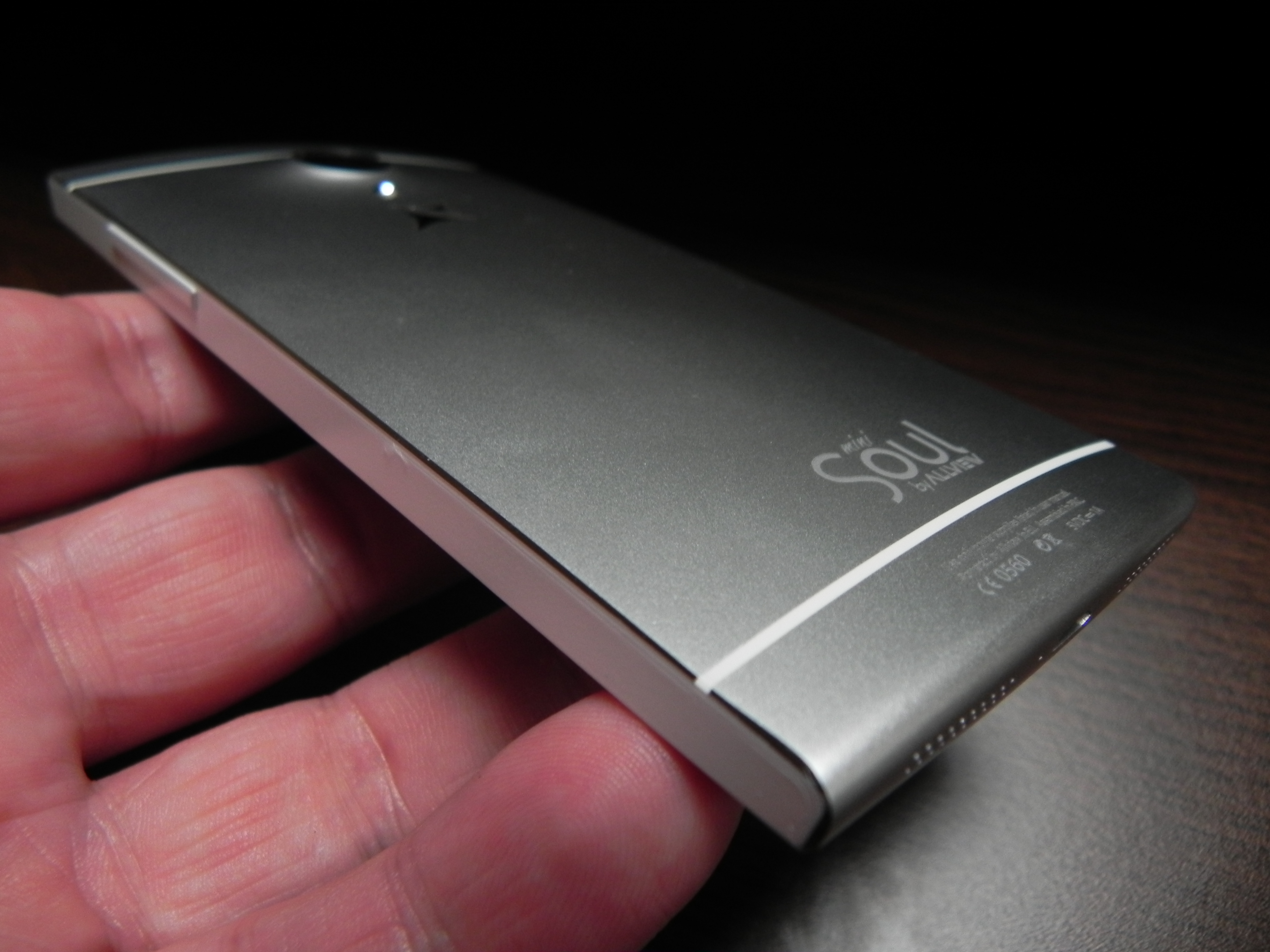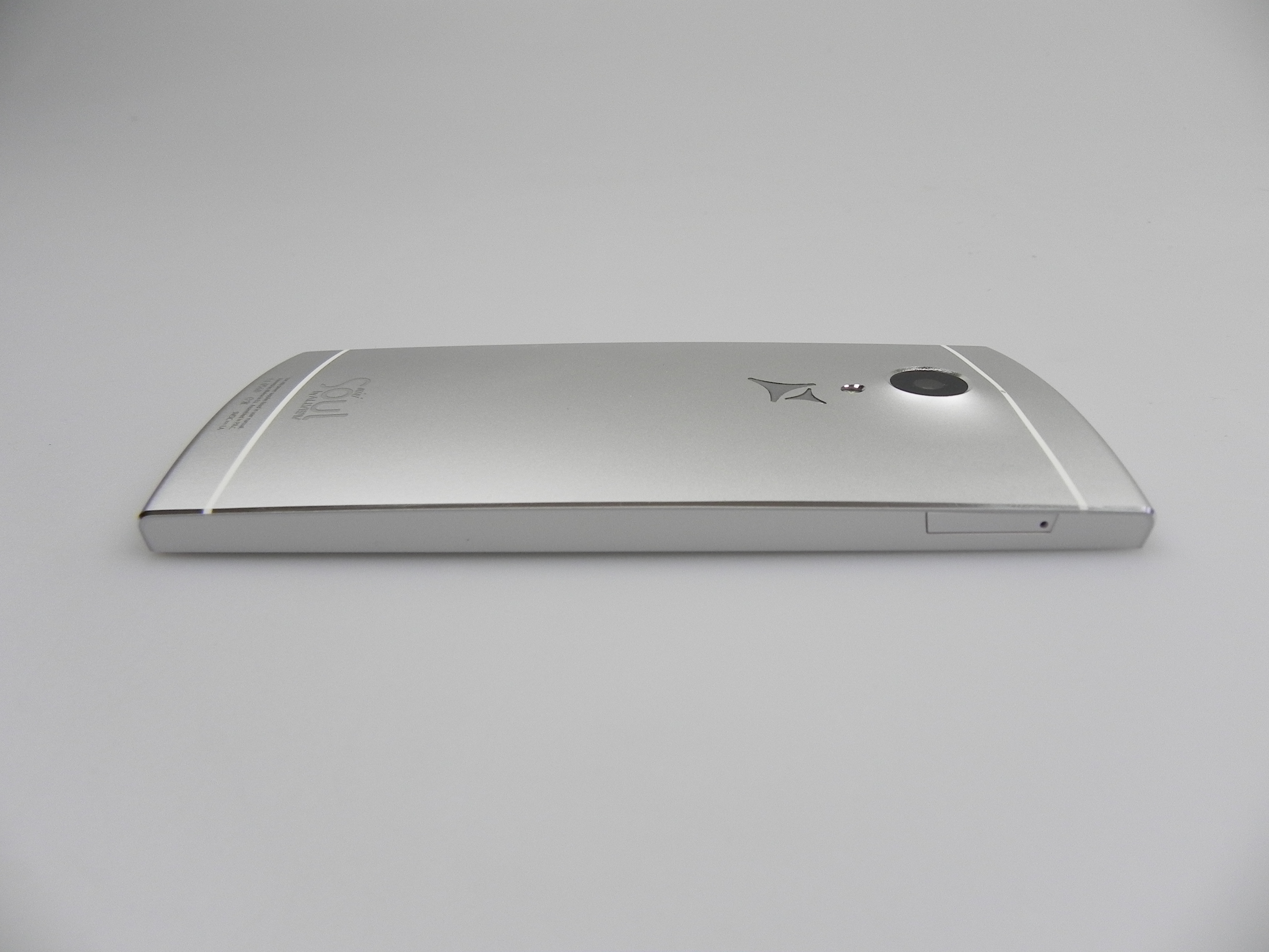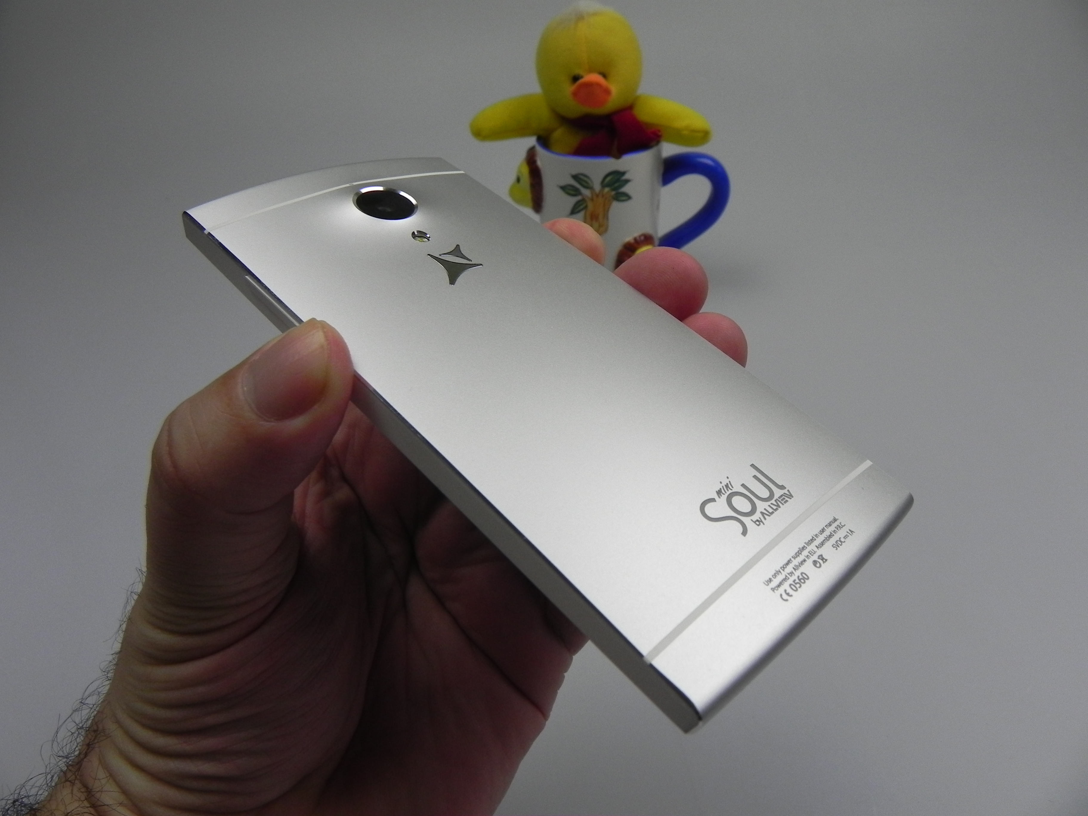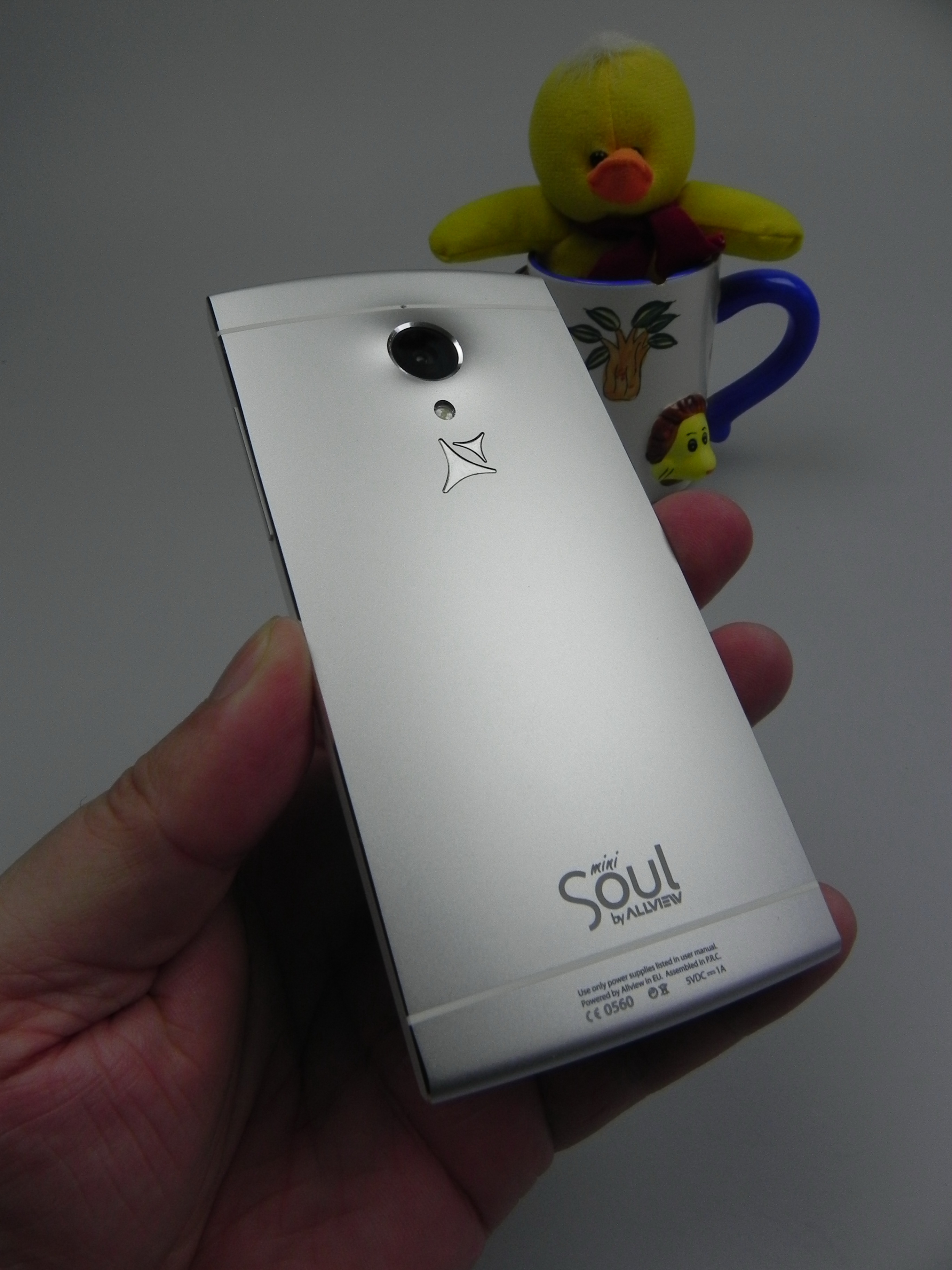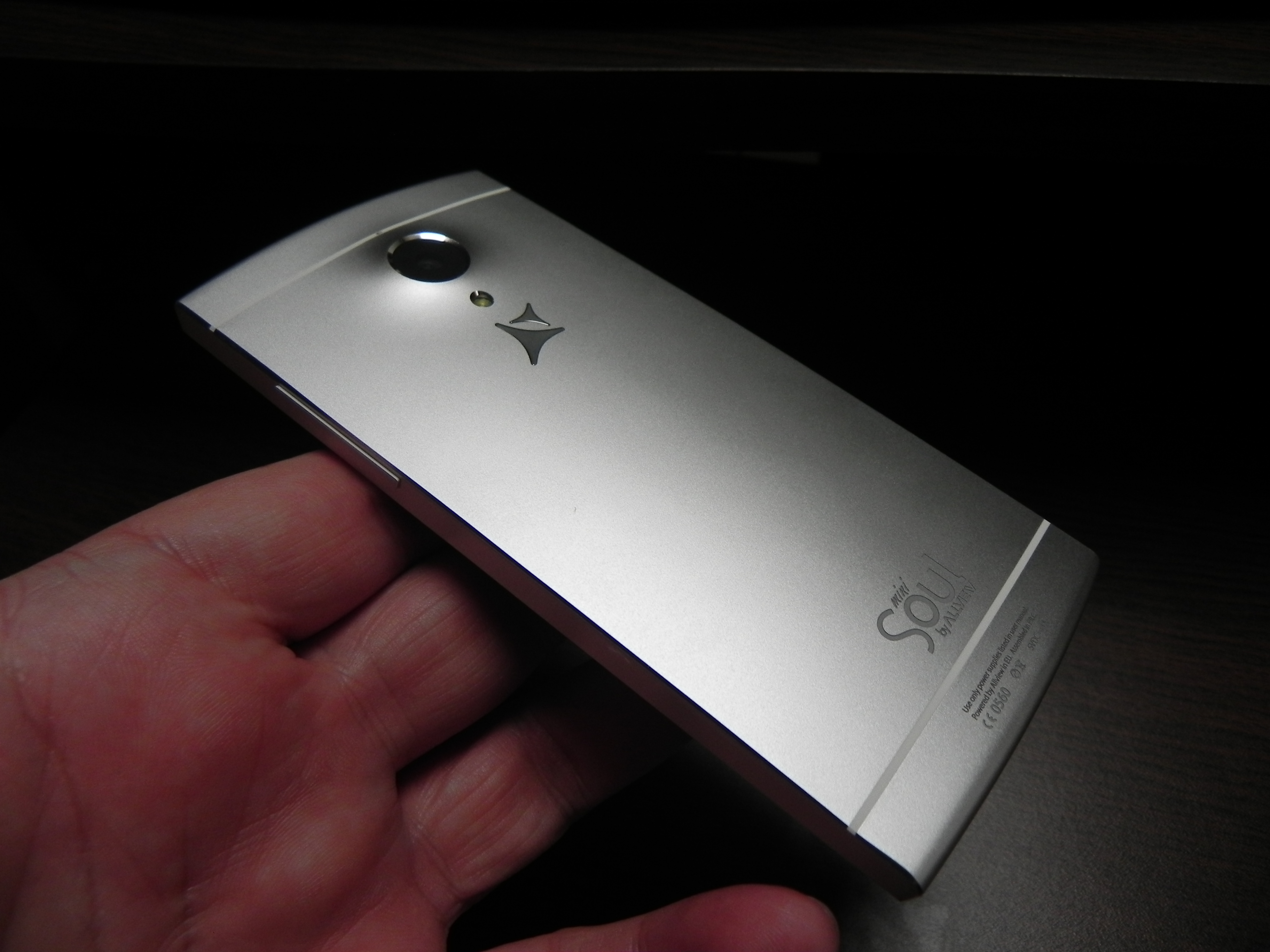 Romanian brand Allview also offered a custom version with a message engraved at the back of the device, depending on the user’s preference. At the front we find an earpiece, notification LED, front camera, 3 capacitive buttons and at the back there’s a big camera bulk, a microphone and LED flash. We’ve got speakers at the bottom, a microUSB port and another microphone.