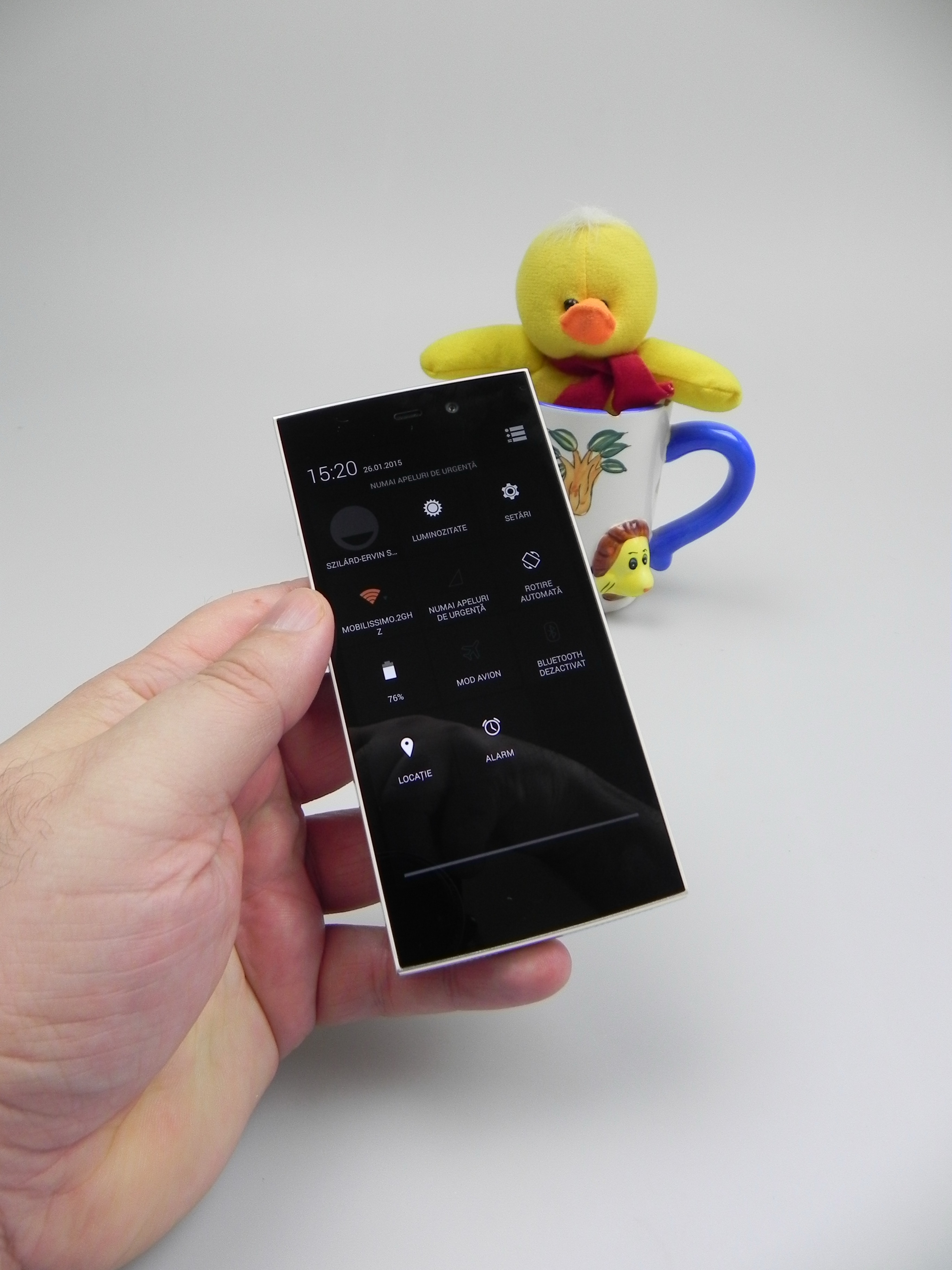 During our test, that involves HD video playback with WiFi on and brightness at 50% we achieved a time of 7 hours and 14 minutes of video playback, similar to the one of HTC One. It’s also one hour less than the bigger model, Allview X1 Xtreme. The average use is one day, or one day and a half and the standby time was actually quite good. During the night, this model only loses a few percentage points, which is OK.