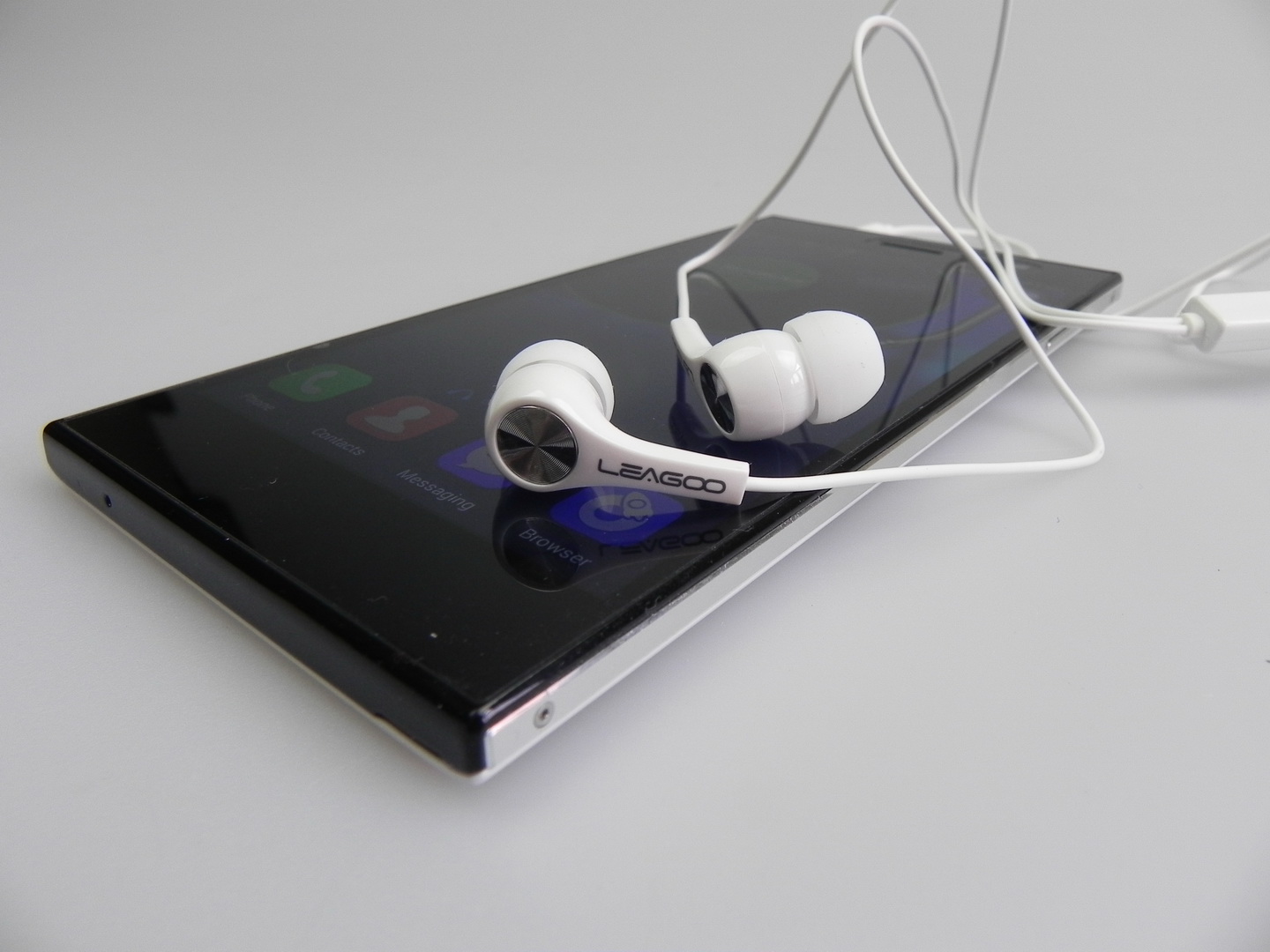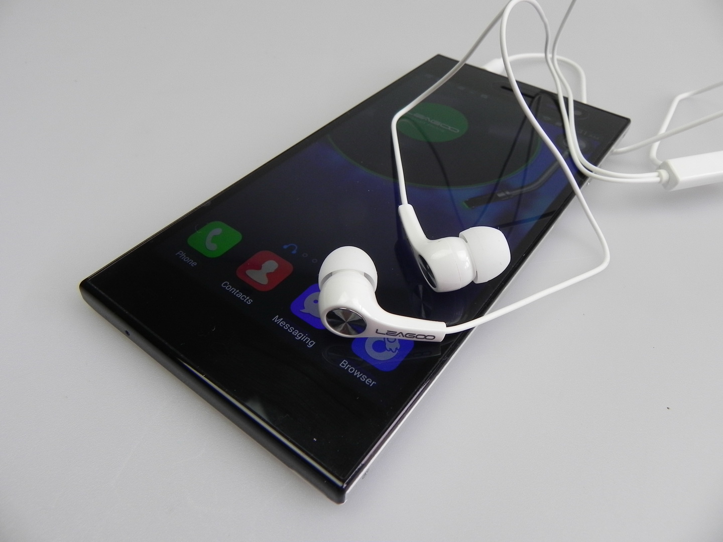 The speaker at the back isn’t very loud, but clarity is OK and we’ve got a medium level bass. Sadly, the device suffers from a bad case of muffling, so once you place it on a flat surface the decibel level goes down about 10 units or so. The speaker doesn’t feel like it has enough strength most of the time. The headphones bundled here have a pretty nice look, they come with a big remote and they’re made of solid plastic.