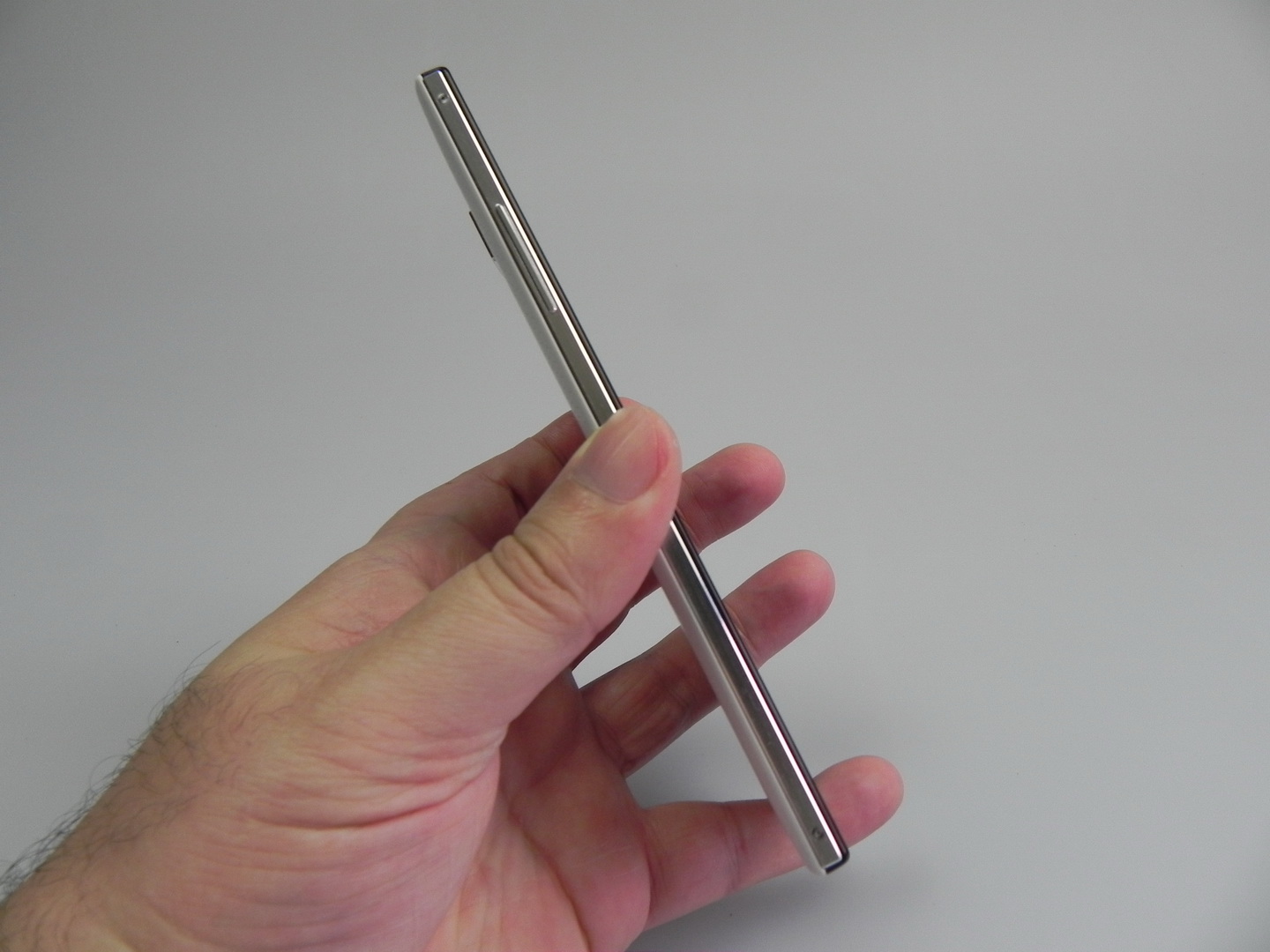Announced in April 2014, the handset was launched commercially in September 2014. We’re dealing with a phablet that measures just 6.9 mm in thickness and weighs 145 grams. The product comes in black, white, rose red or blue and it has a rectangular and tall/narrow design. Its grip is good and the facade is a bit of a fingerprint magnet.