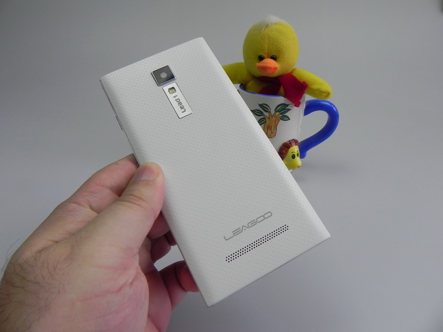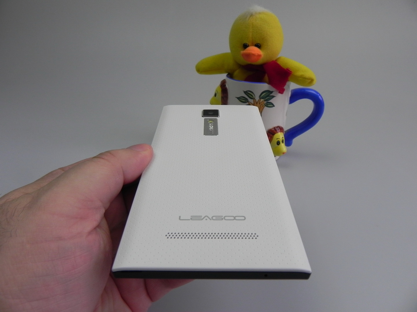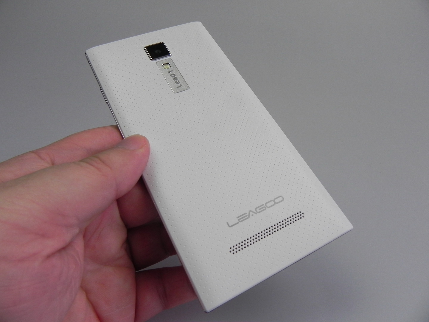 If you remove the back cover, you’ll see the speaker is actually pretty small and below the cover there are dual SIM slots, a microSD card slot and the battery. Leagoo Lead 1 comes with a dotted back texture, that makes it feel a bit like the Galaxy S5. At the top of the phone there’s the audio jack and microUSB port, while at the bottom there’s the mic.