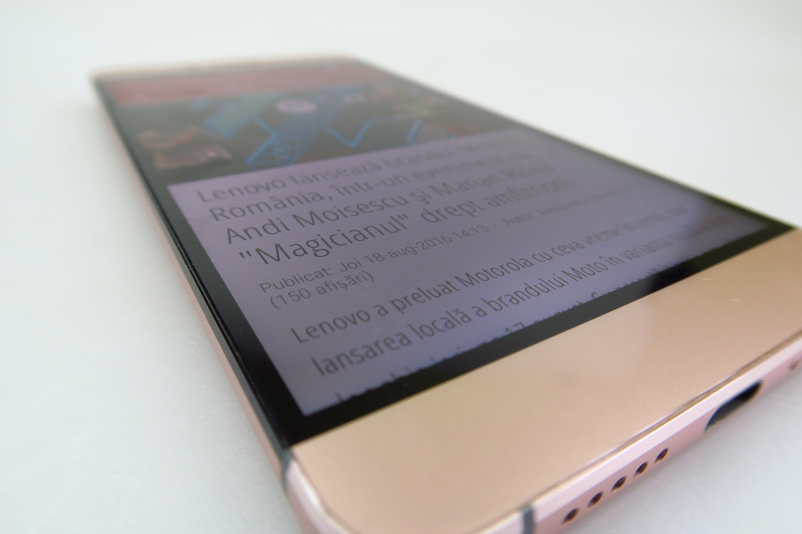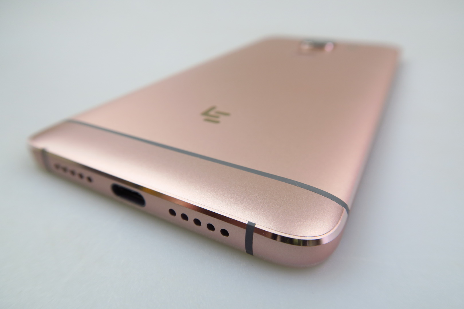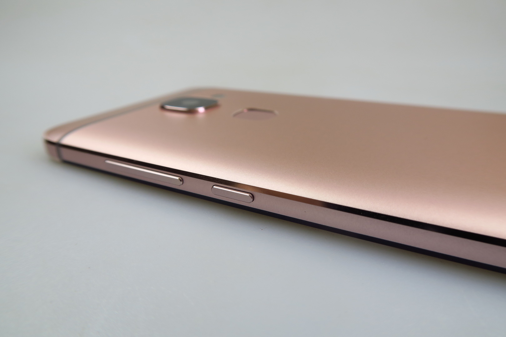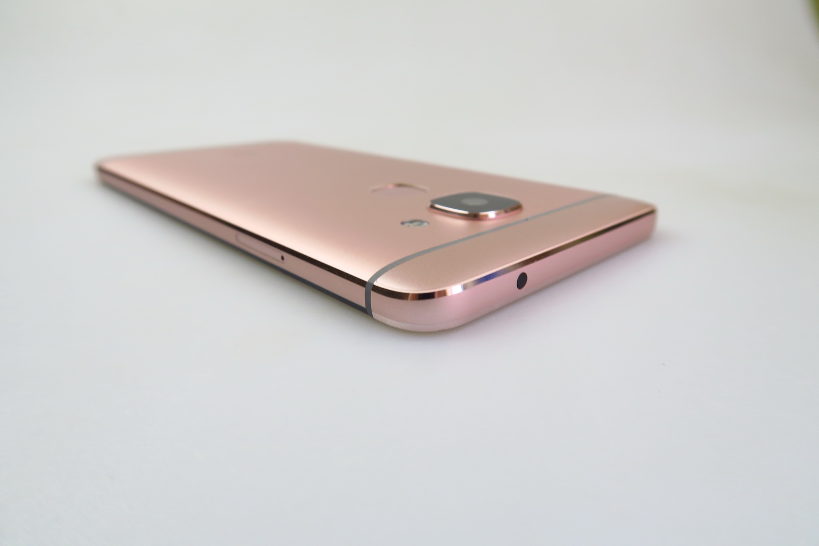 Made of metal and sporting an unibody shell, the smartphone comes in rose gold or gray and it’s an angular model, with a slightly rounded back and rounded corners.  There’s a big camera area at the back, the grip is OK and we’ve got a tough one hand usage, since it’s a massive unit. The build is solid and we also have chamfered edges.
