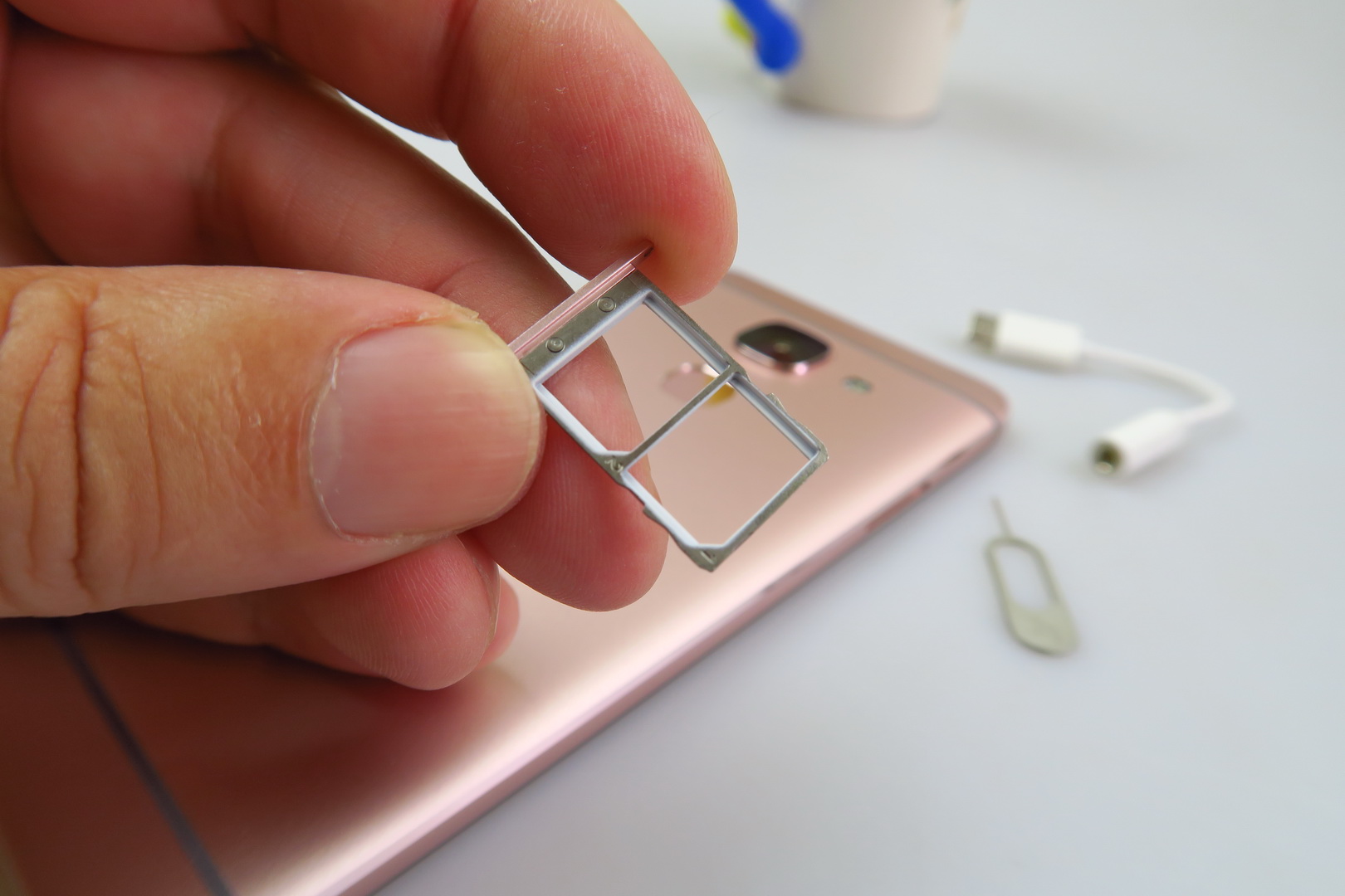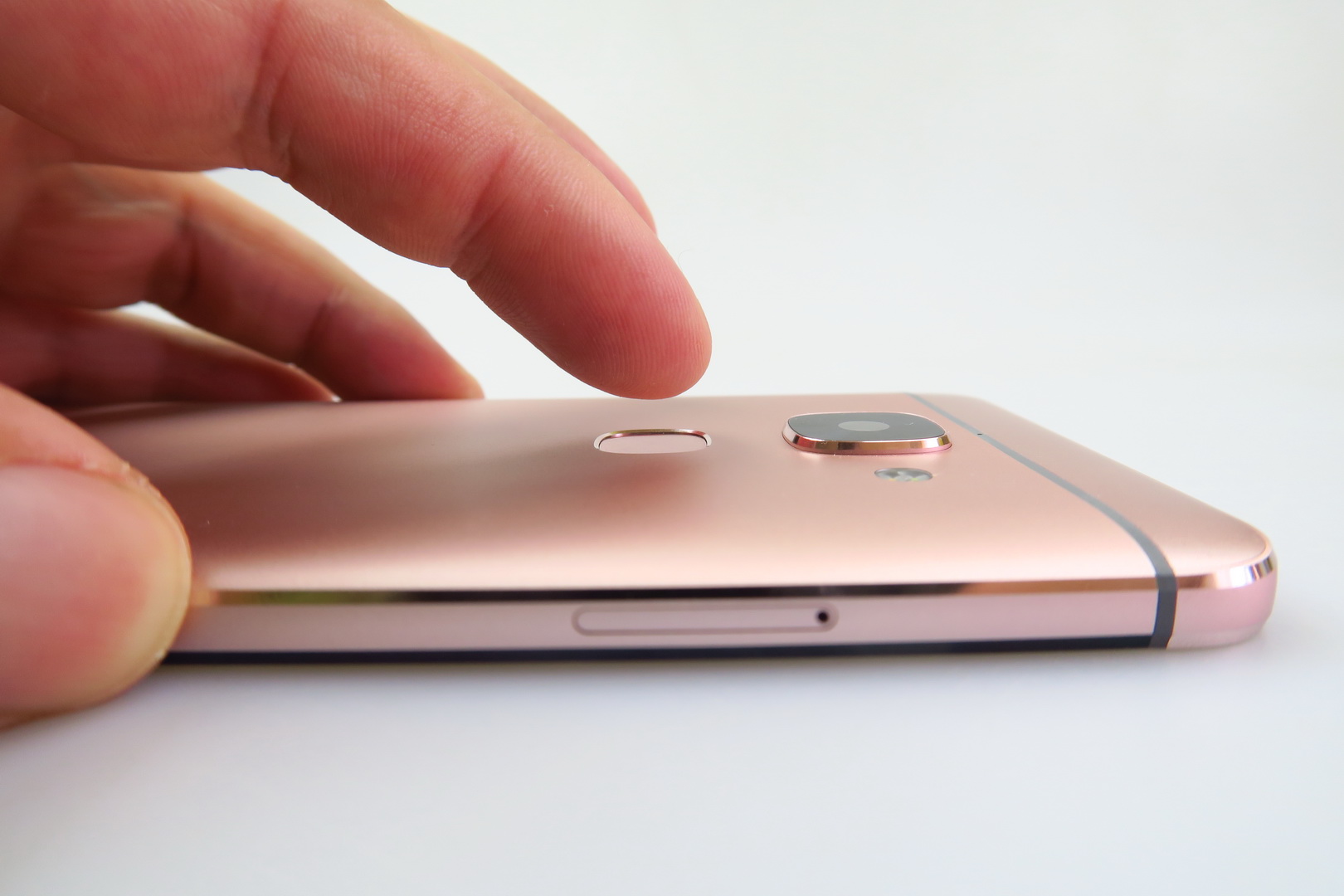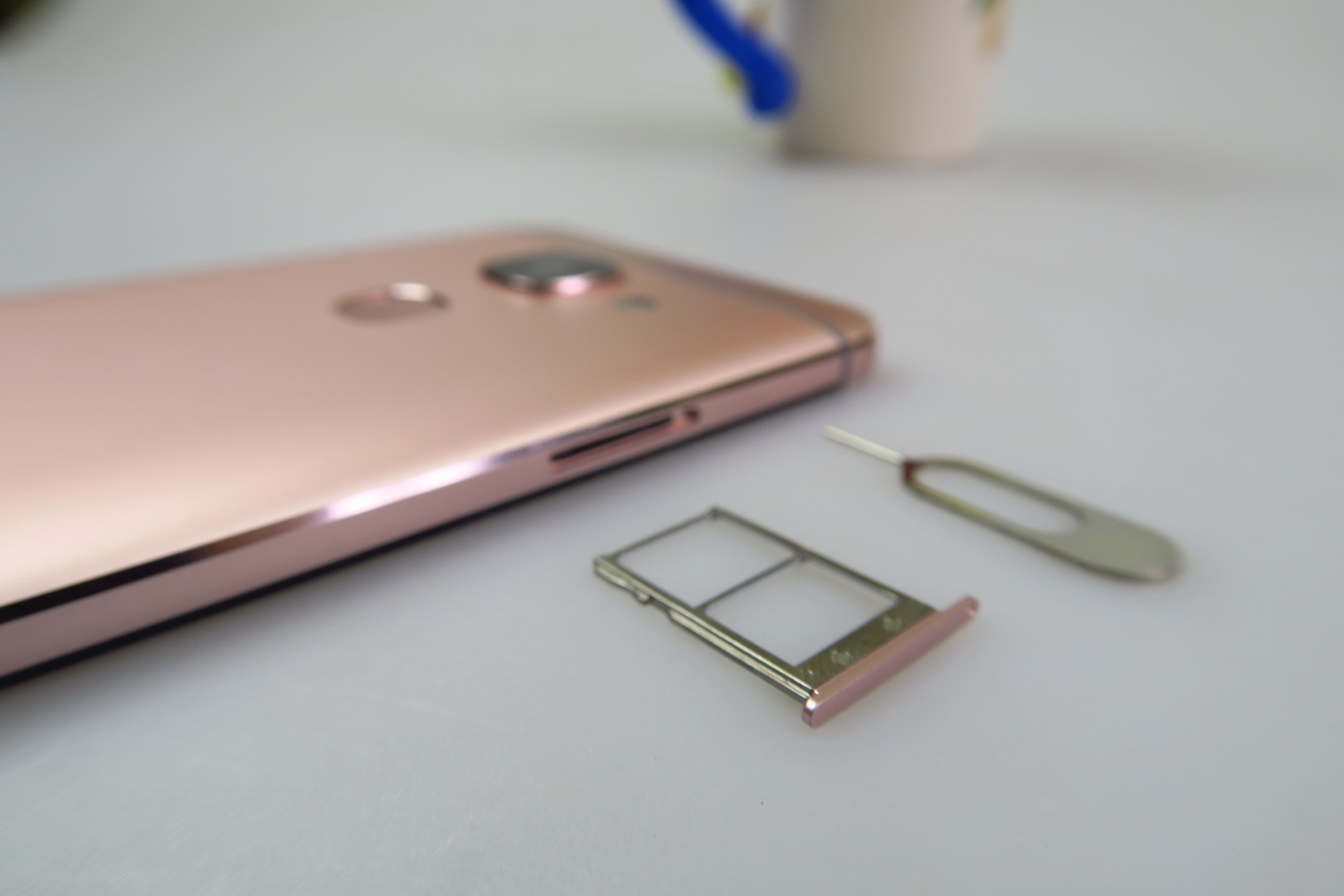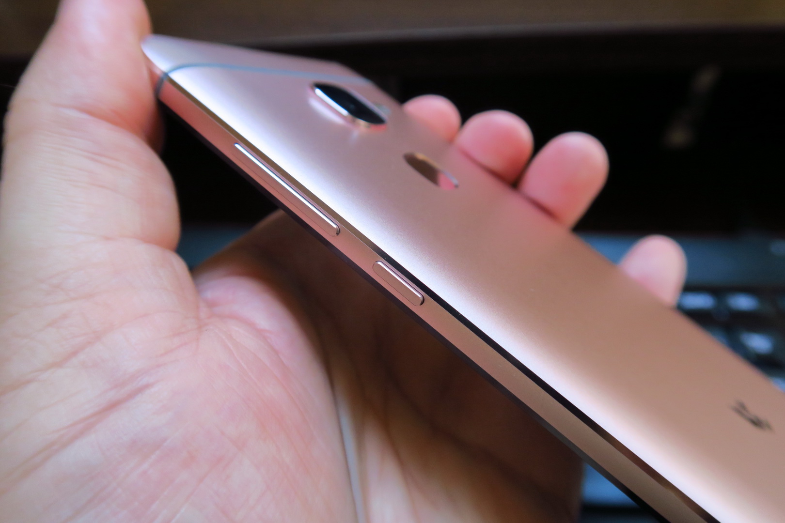 Made of metal and sporting an unibody shell, the smartphone comes in rose gold or gray and it’s an angular model, with a slightly rounded back and rounded corners.  There’s a big camera area at the back, the grip is OK and we’ve got a tough one hand usage, since it’s a massive unit. The build is solid and we also have chamfered edges.