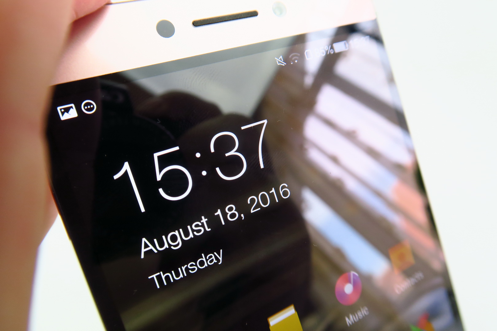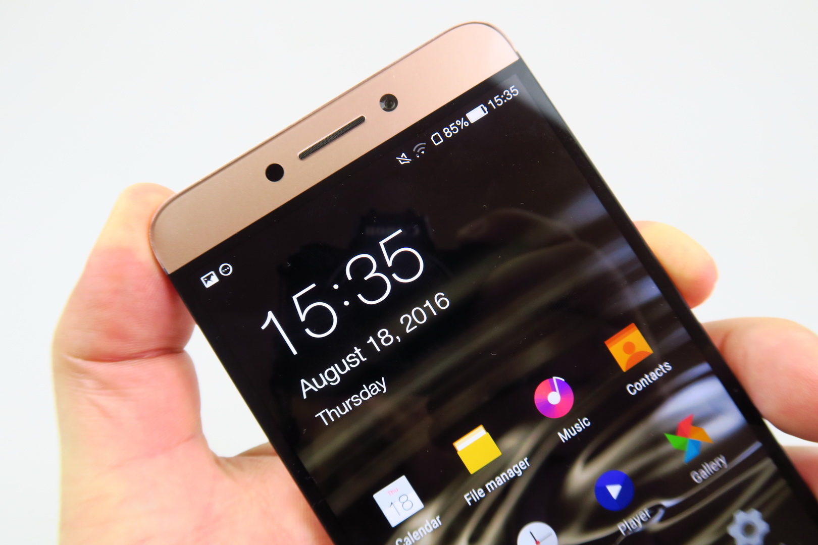 It does 4K video, hybrid AF and 6p lens, as well as F/2.0 aperture. Selfies are taken with an 8 megapixel camera. The camera app starts up fast, focus was very fast and zoom is fluid. Picture taking happens fast as well, but there’s an annoying pop up that appears on the screen after every pic. The UI is inspired by iOS clearly and to the left side of the UI there’s front camera shortcut, flash options and other functions like delayed photos, shutter sound, location and exposure.