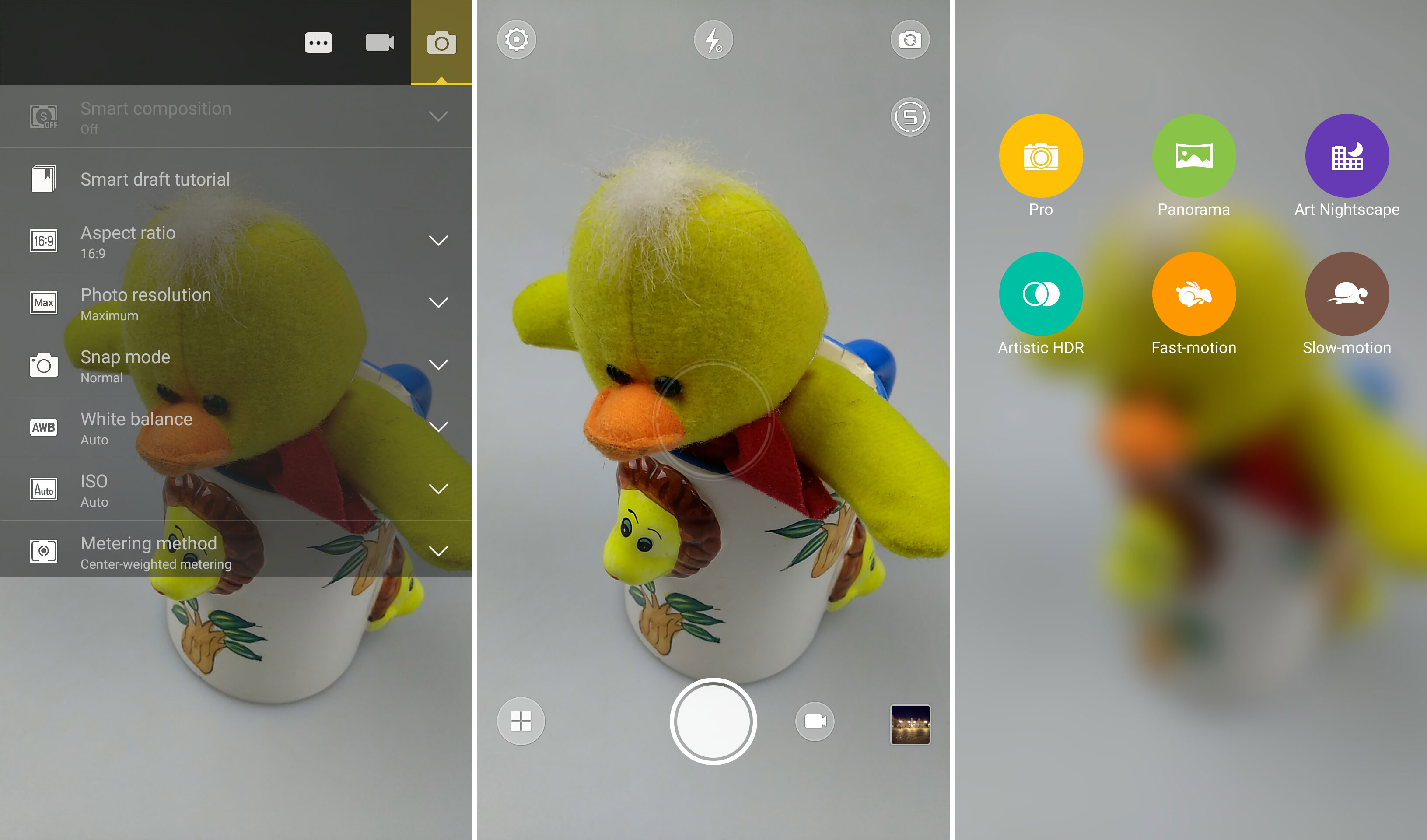 It’s one that comes with a Smart Mode, able to identify the ideal scenery and situation around you. The modes offered here are Pro, Panorama, Art Nightscape, Artistic HDR, Fast Motion and Slow Motion. Then you can also set up the resolution and aspect, plus white balance, ISO, metering and leveling. When we get to the actual shots, the day time gallery was taken on a sunny day in early December, registering OK colors and clarity, plus good details in landscape shots.