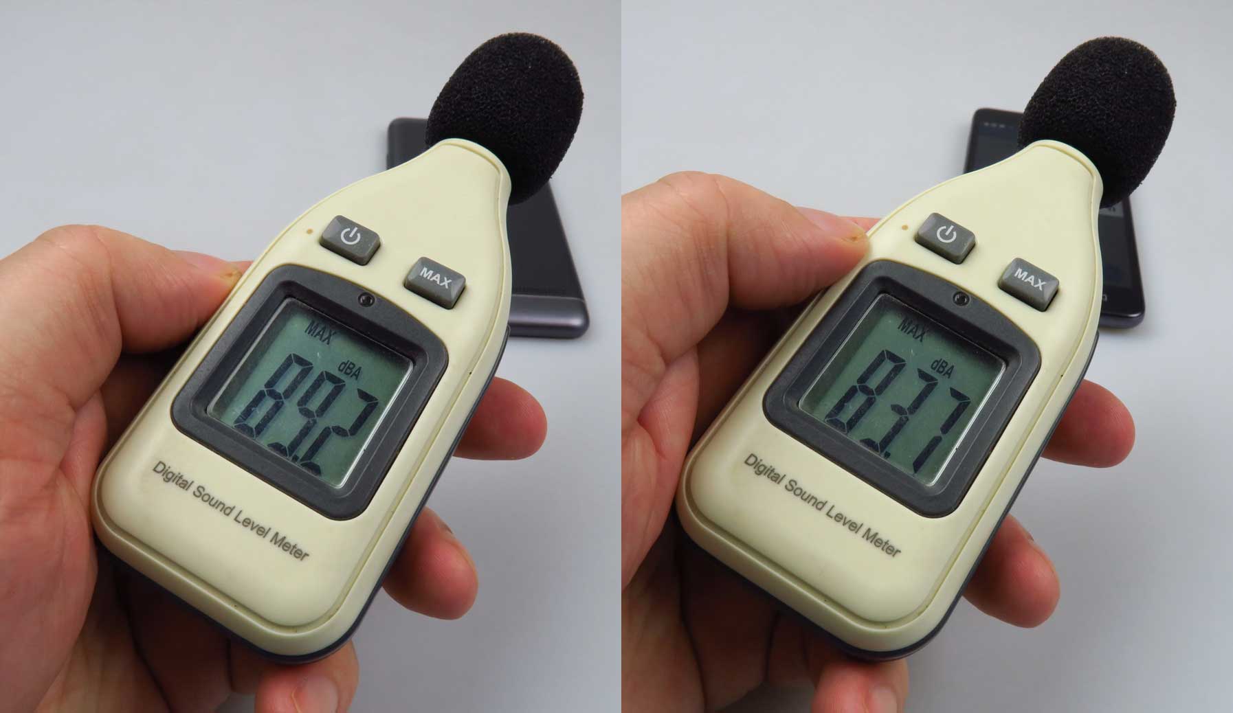 The listening experience brought on a loud and clear sound, good bass and the notes were perfectly pitched and renders. No distortion came out and only a slight case of muffling cramped my style. The decibelmeter showed a value of 89.2 dBA at the back and 85.7 dBA at the front, when using our audio sample. We reached 94.4 dBA when running Riptide GP Renegade, which top 5 loudness in our tests and surpasses the likes of Galaxy S6 and OnePlus One.
