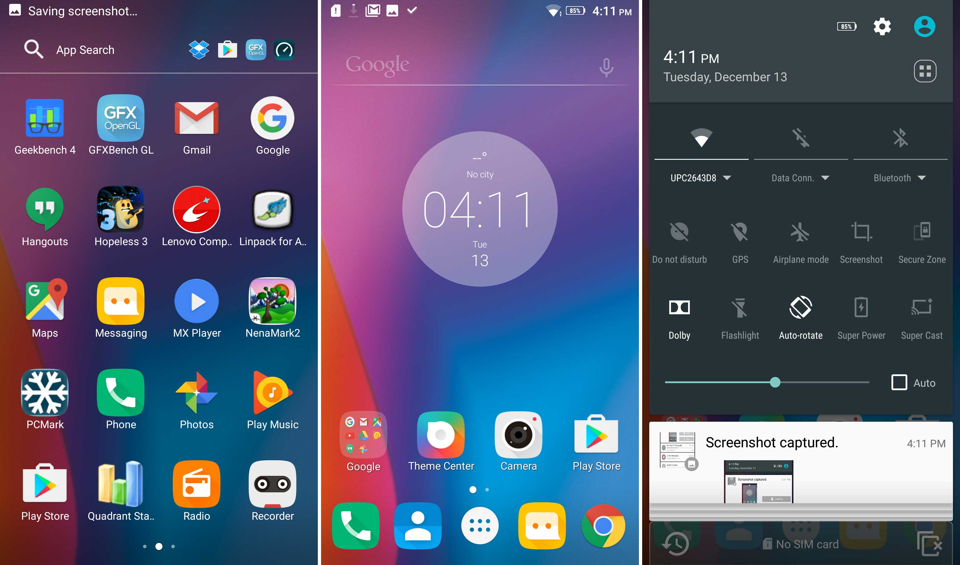 We proceeded to do a SpeedTest and achieved 91 Mbps in download on 4G and 45 Mbps in upload, both reasonable results, but we were let down by the WiFi’s 49 Mbps in download and 25 Mbps in upload. Lenovo K6 runs Android 6.0.1 Marshmallow with tweaks and skeumorphic icons somehow. It’s got a carousel for multitasking and a Clean All feature too.
