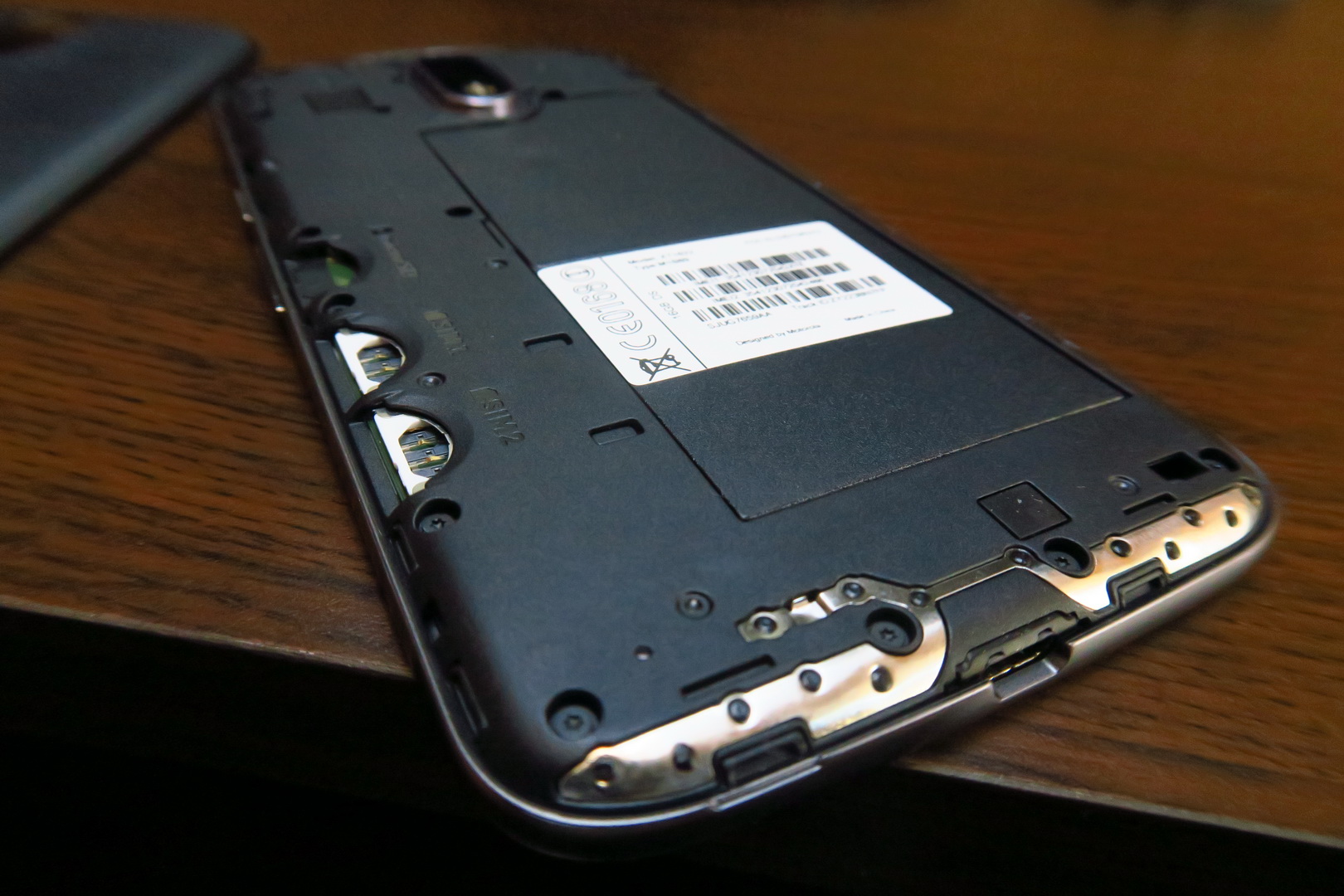 The design is robust and the phone has great ergonomics. It reminds me of a smaller Nexus 6, also made by Motorola. The grip is good and this is quite a big and wide phone, so one hand usage is not that easy. Buttons are comfy and the back cover is easy to remove. Below the back cover we find dual SIM slots, a microSD card slot and this product has a pretty solid build and a nice rounded frame.