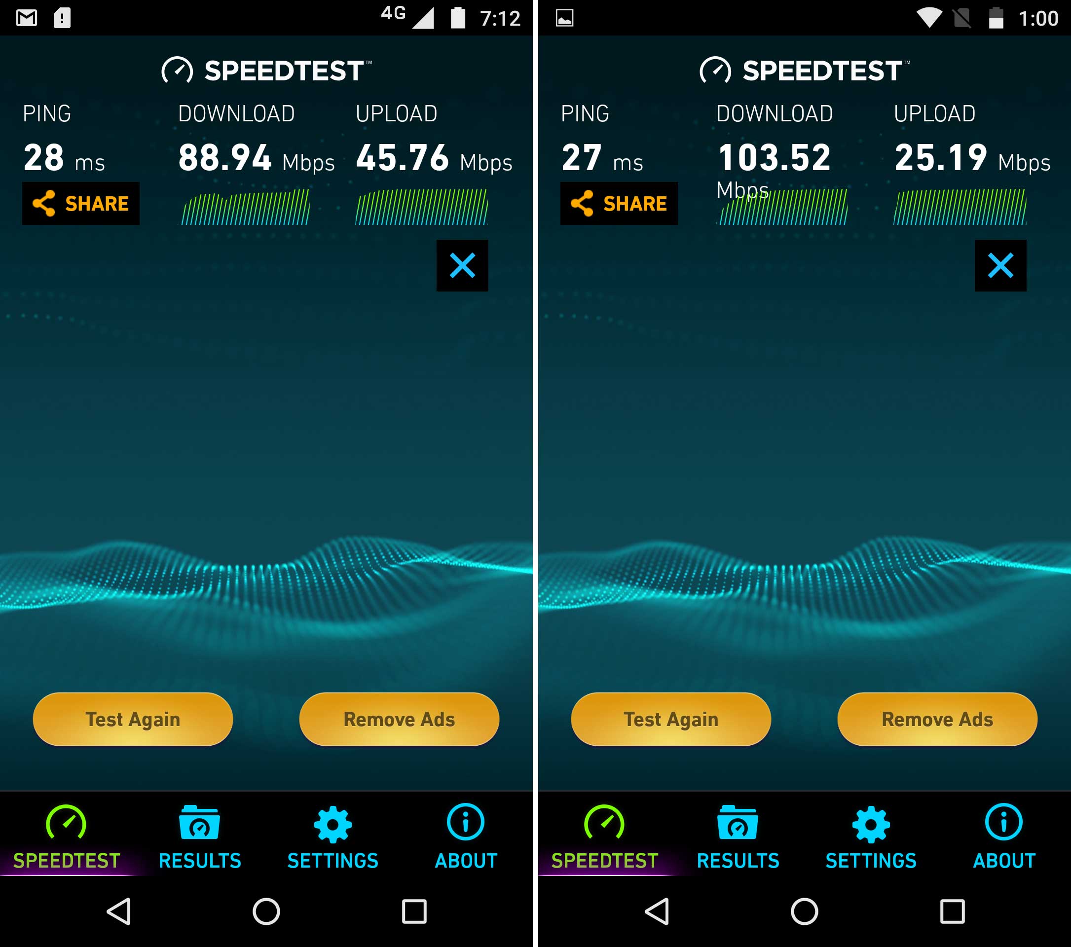 The Speedtest revealed a value of 88 Mbps in download via 4G and 45 Mbps in upload, both pretty solid values. WiFi brought us speeds of 103 Mbps in download and 25 Mbps in upload, so both tests checked out nicely. Moto G4 runs Android 6.0.1 Marshmallow, in a clean and BS-free experience. Google Now has a leftmost dedicated homescreen, while the multitasking is done by a carousel mechanism.