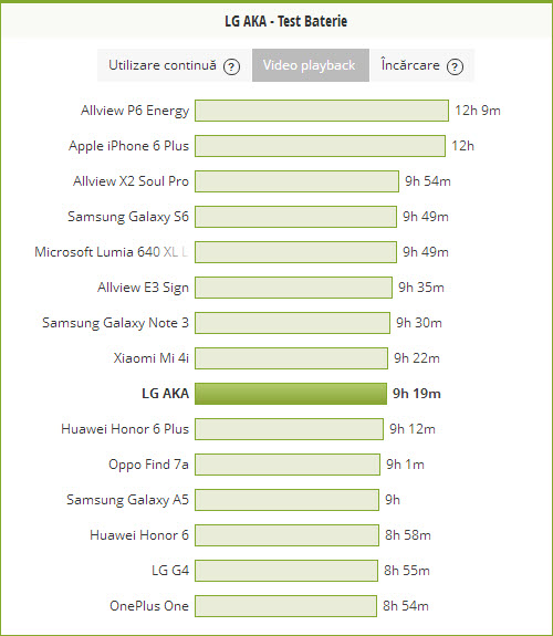 In our test, that involves HD video playback in a loop, with WiFi on and brightness at 50%, we achieved 9 hours and 19 minutes, which is very good for a midranger. We beat the OnePlus One and its 8 hours and 54 minutes of playback, plus the LG G4 and its 8 hours and 55 minutes, as well as the Samsung Galaxy A5 and its 9 hours. Still, we scored below the HTC One M8 for example and its 10 hours and 15 minutes.