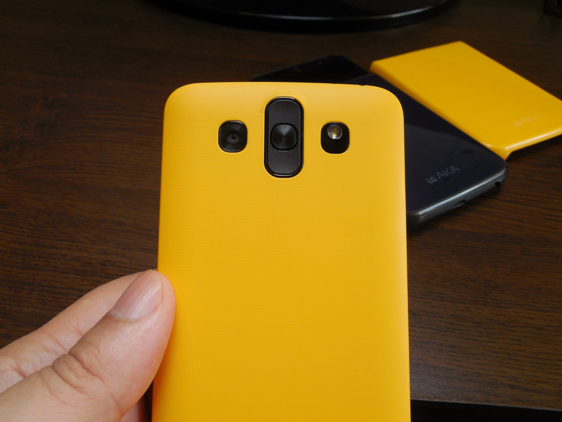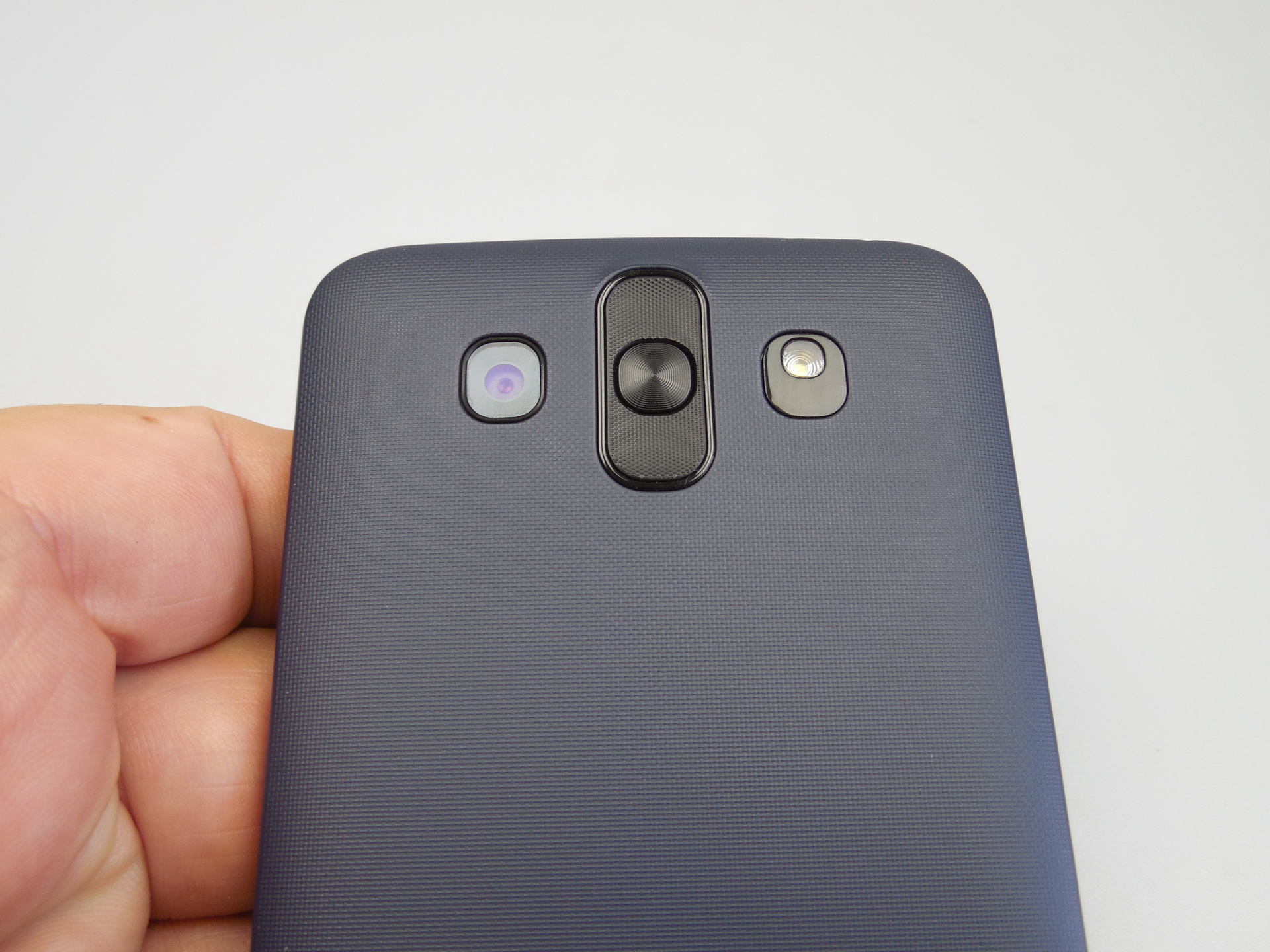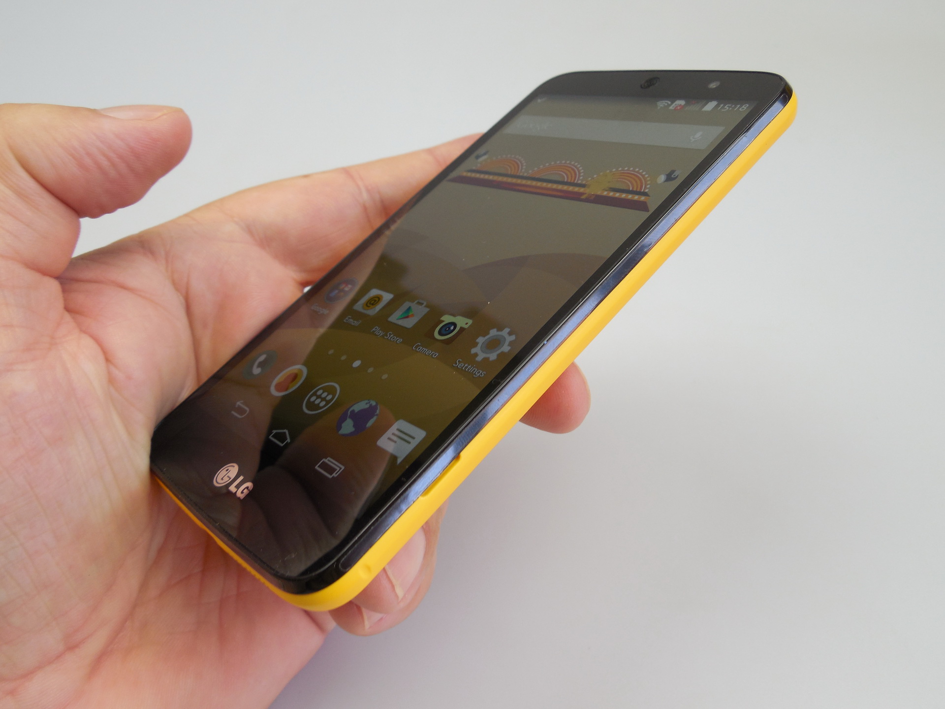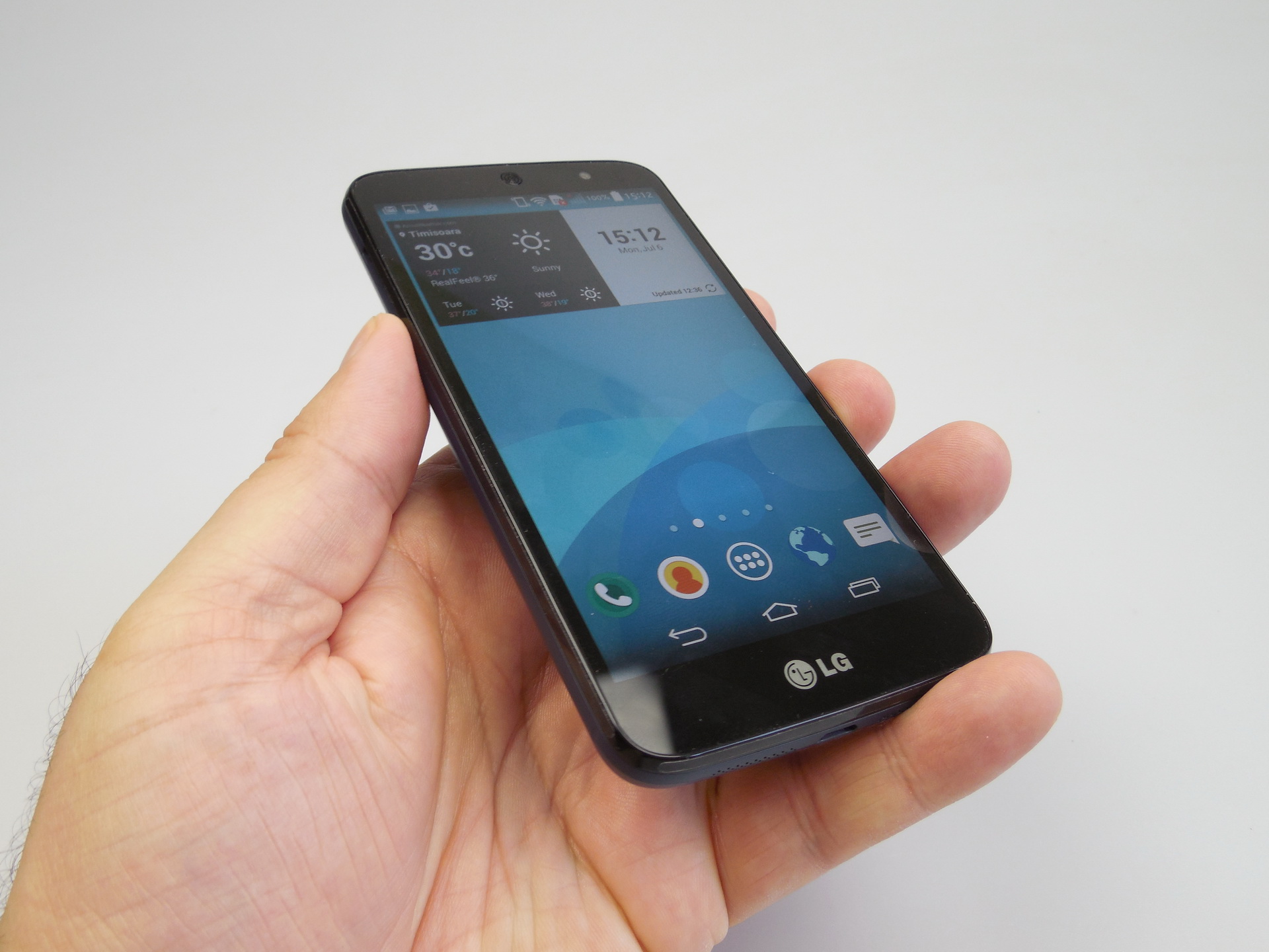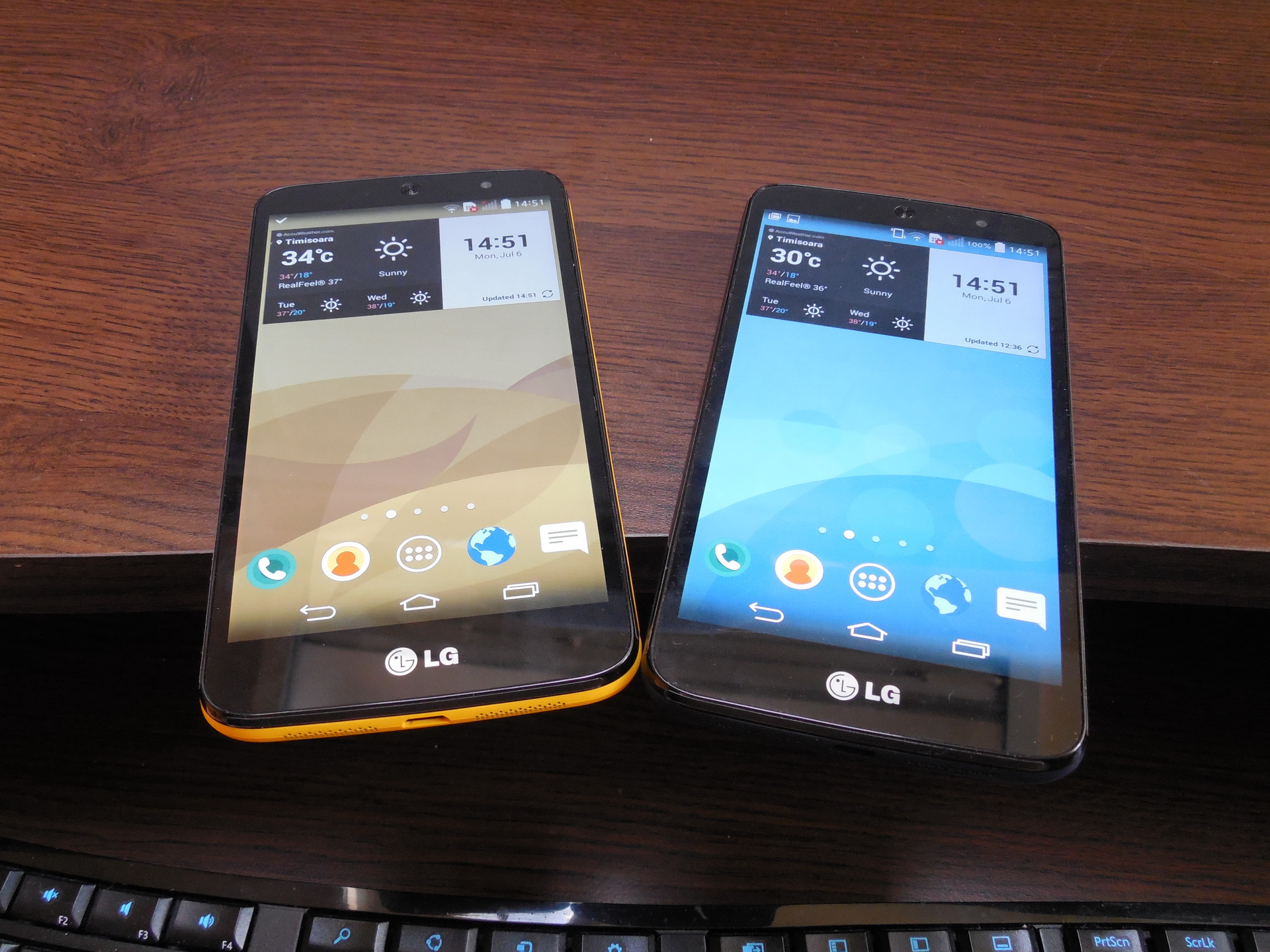 LG encourages placing stickers on the outer shell, by the way. Moving to the actual design analysis here, the device sports a small, round earpiece upfront, a front camera, sensors, status LED and a flossy facade. It also has big bezels and it’s a bit of a fingerprint magnet. The back side creaks when you touch it and holds the main camera, LED flash, laser autofocus mechanism, as well as the Power and volume buttons.