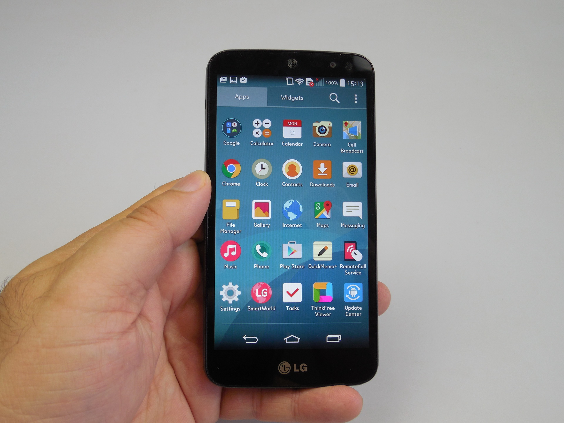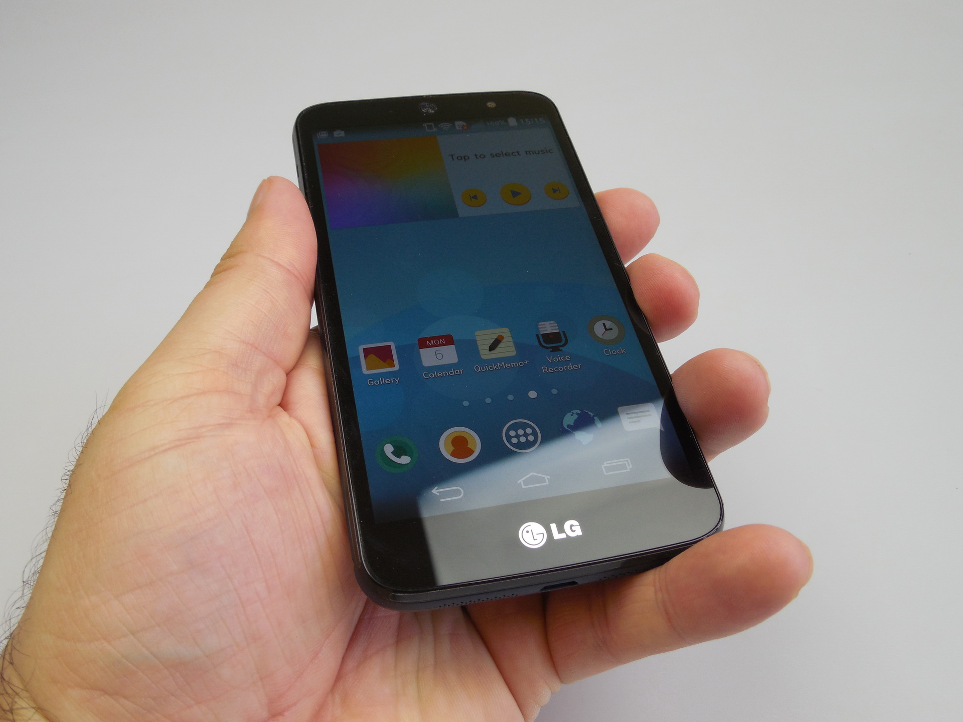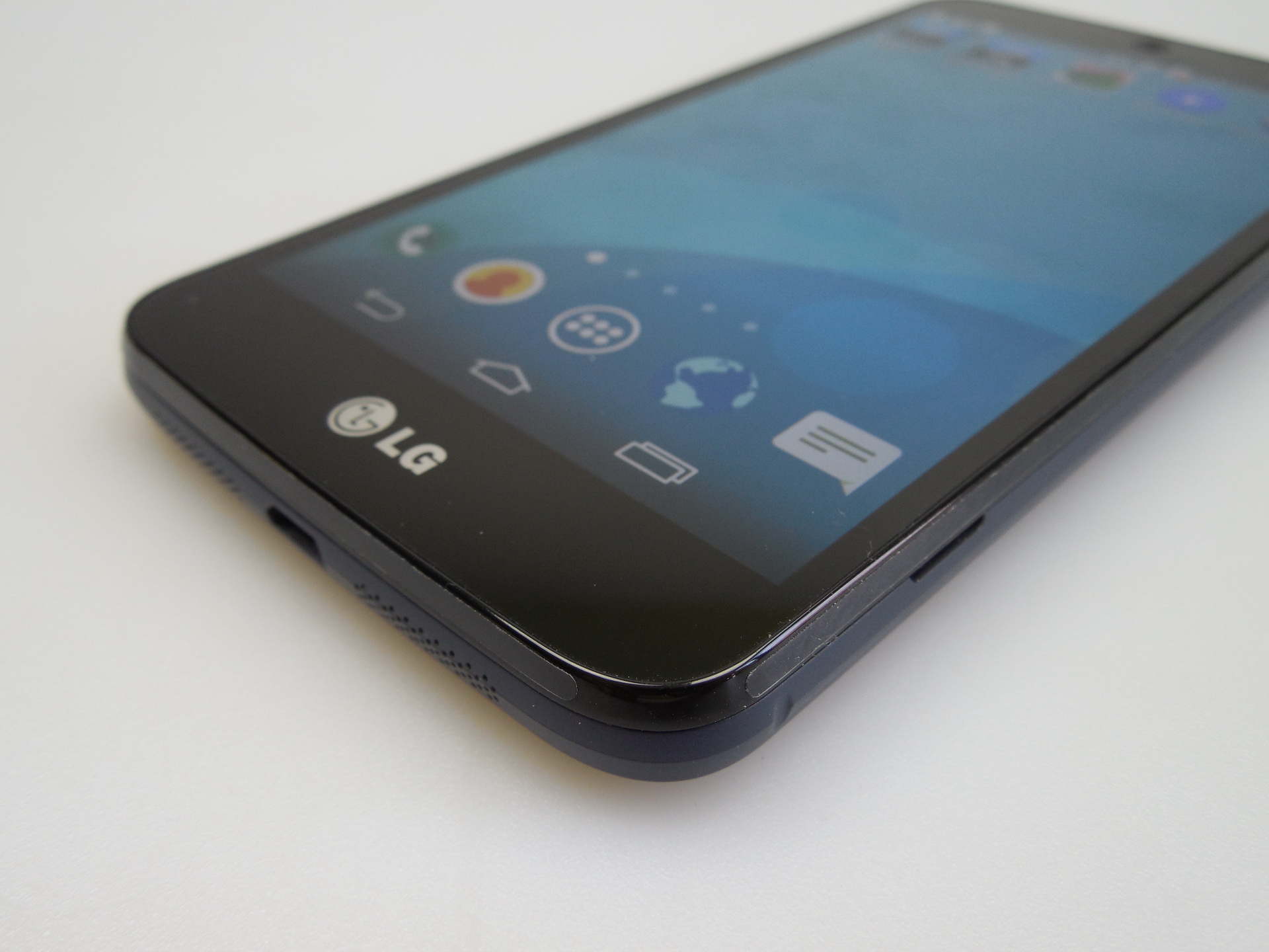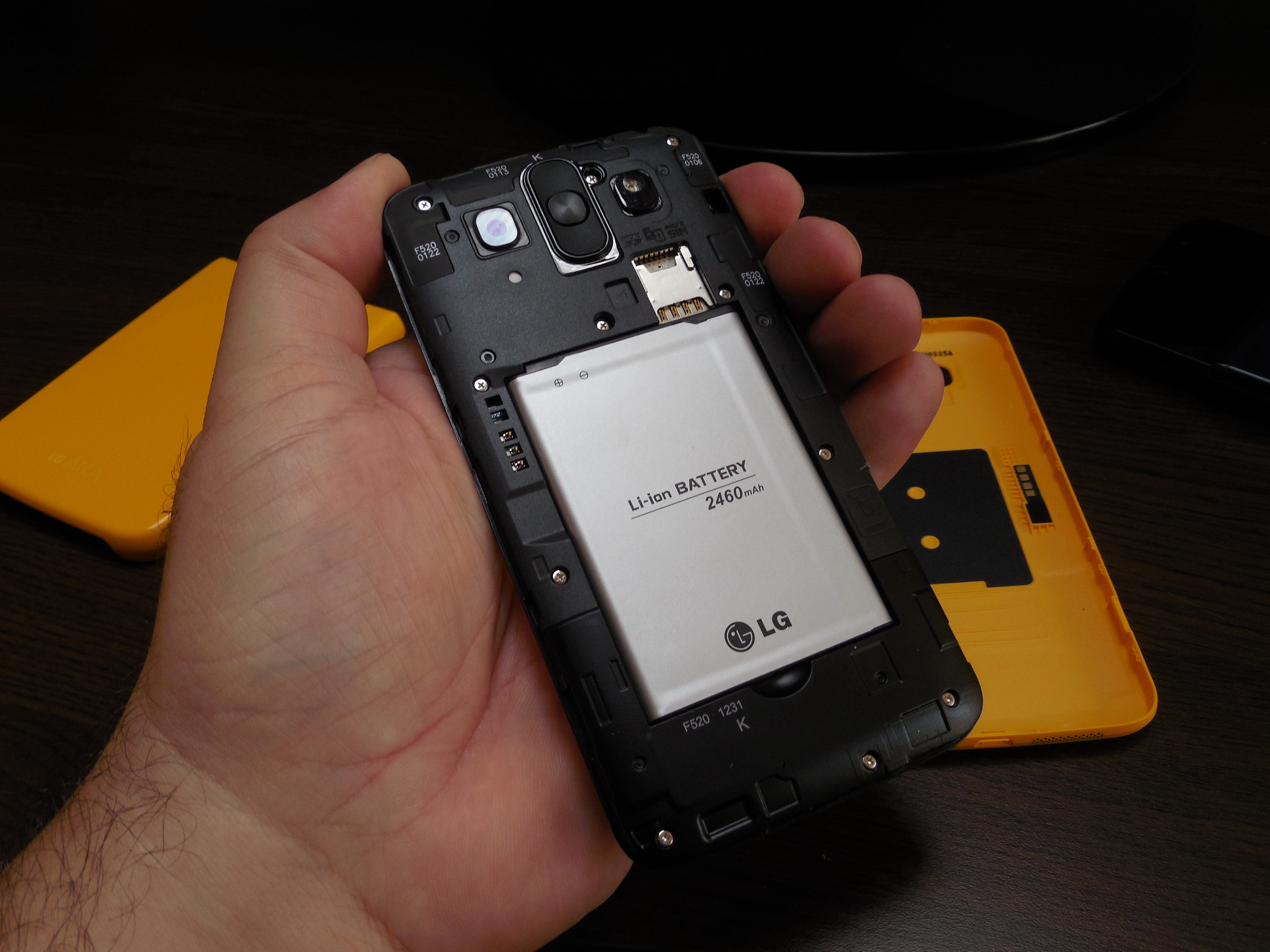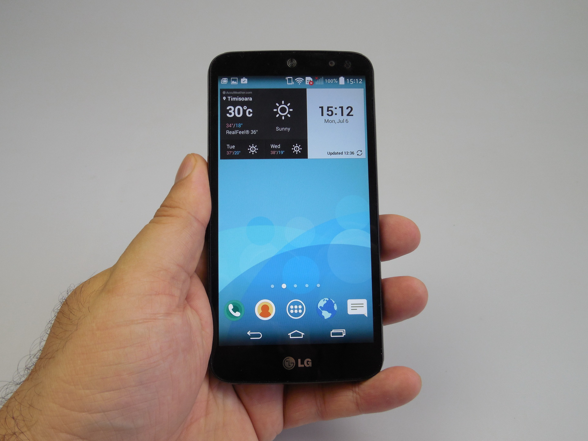 LG encourages placing stickers on the outer shell, by the way. Moving to the actual design analysis here, the device sports a small, round earpiece upfront, a front camera, sensors, status LED and a flossy facade. It also has big bezels and it’s a bit of a fingerprint magnet. The back side creaks when you touch it and holds the main camera, LED flash, laser autofocus mechanism, as well as the Power and volume buttons.