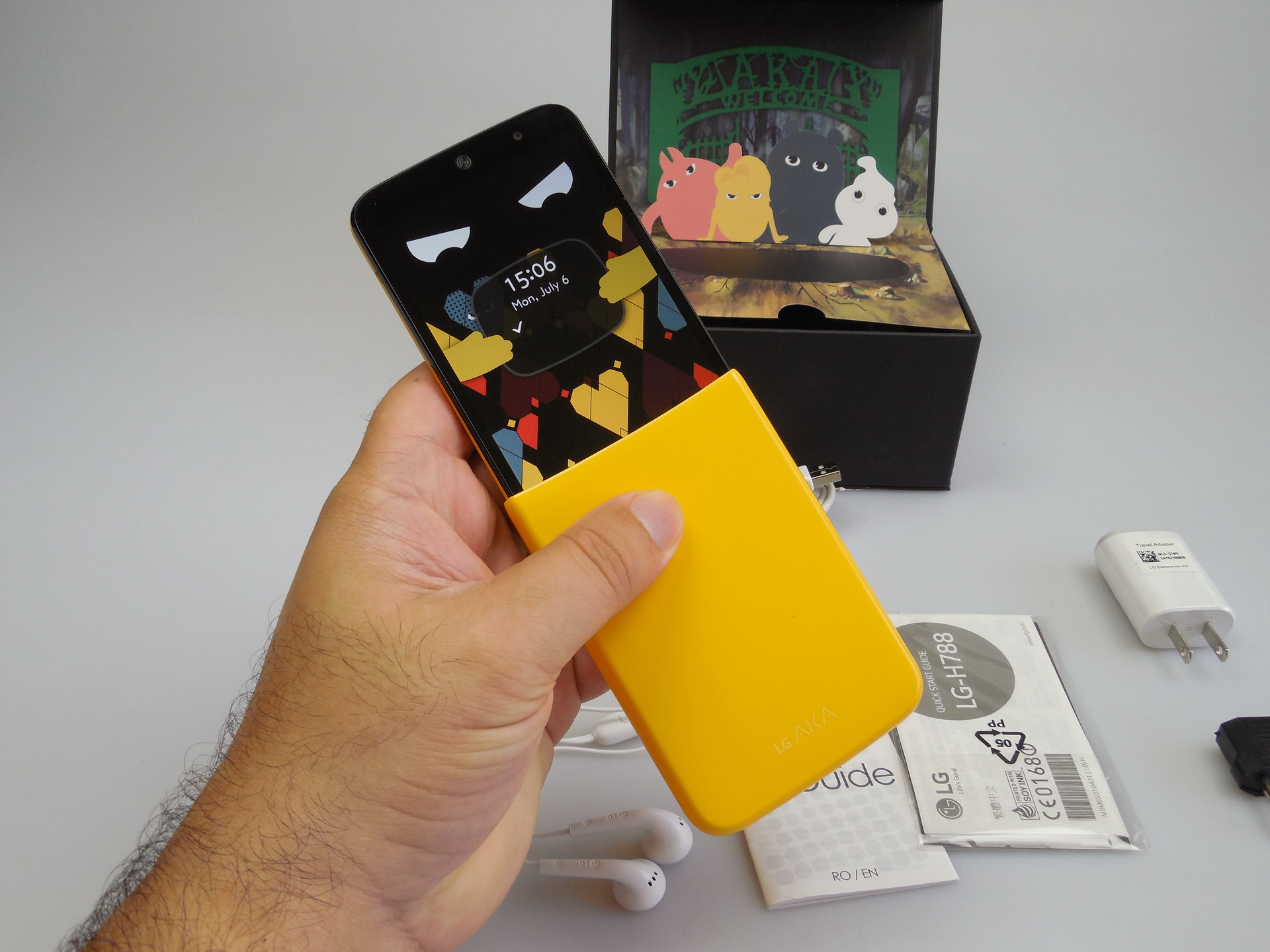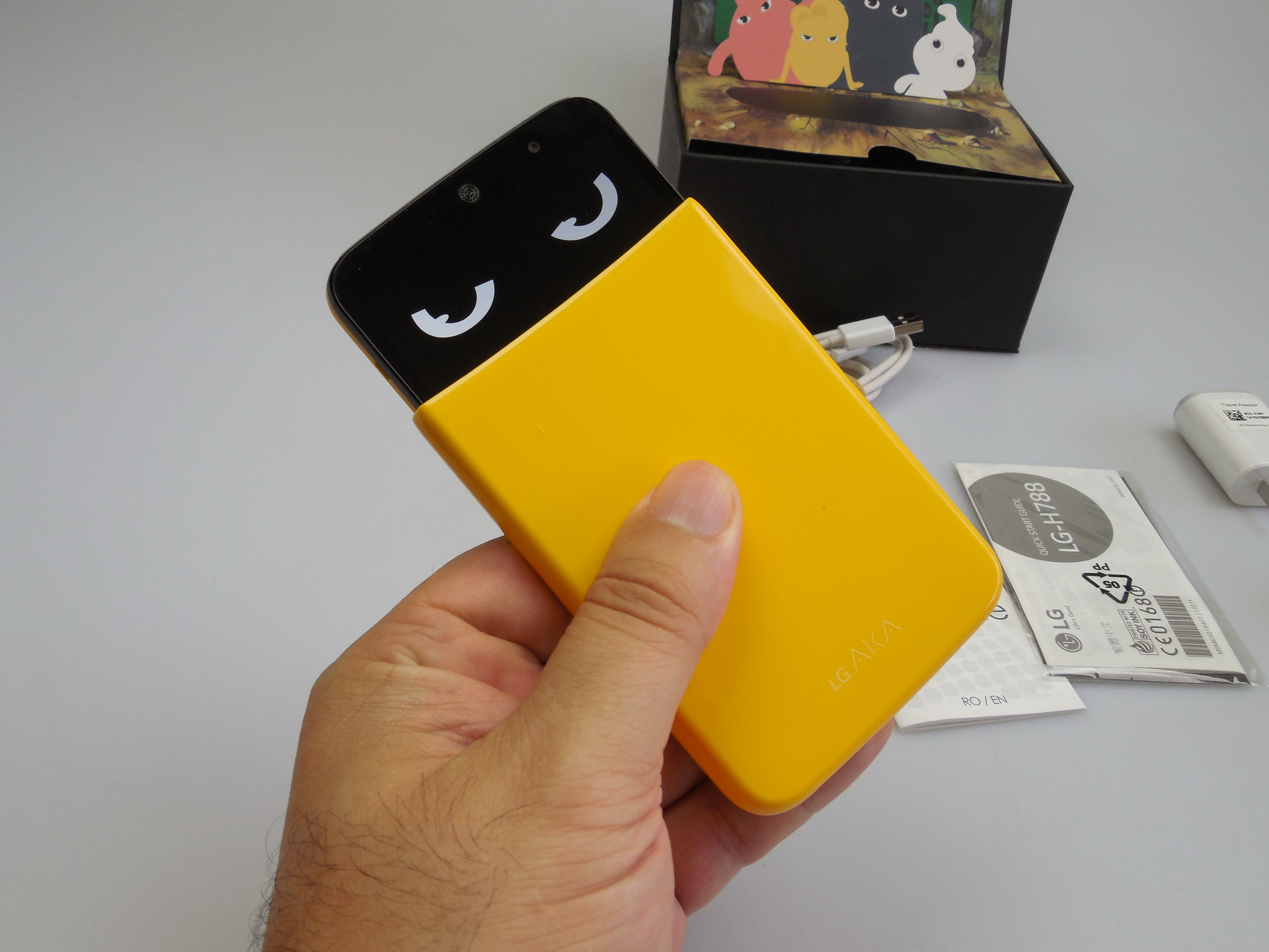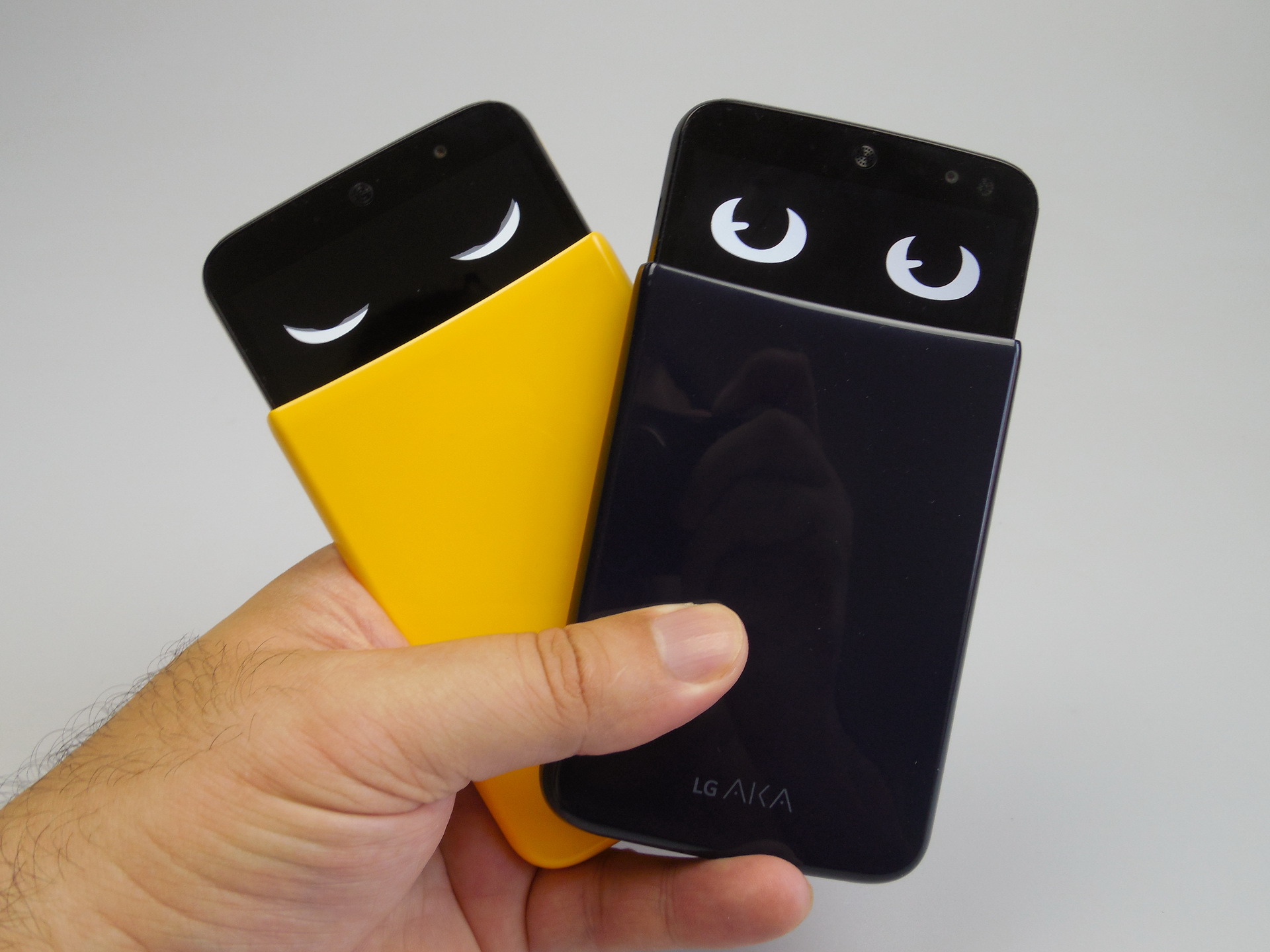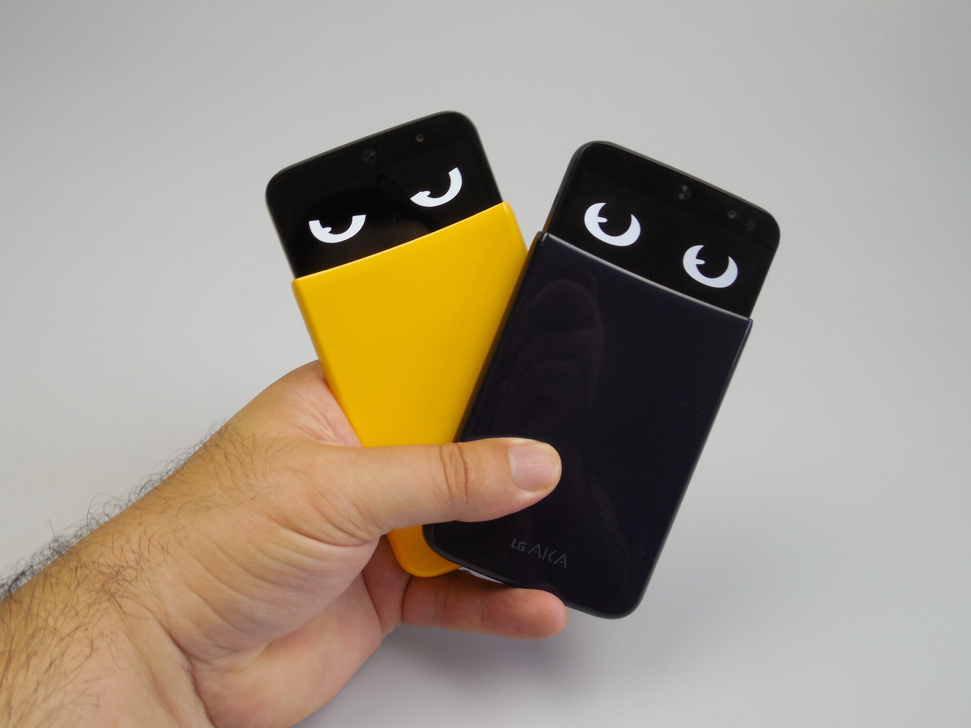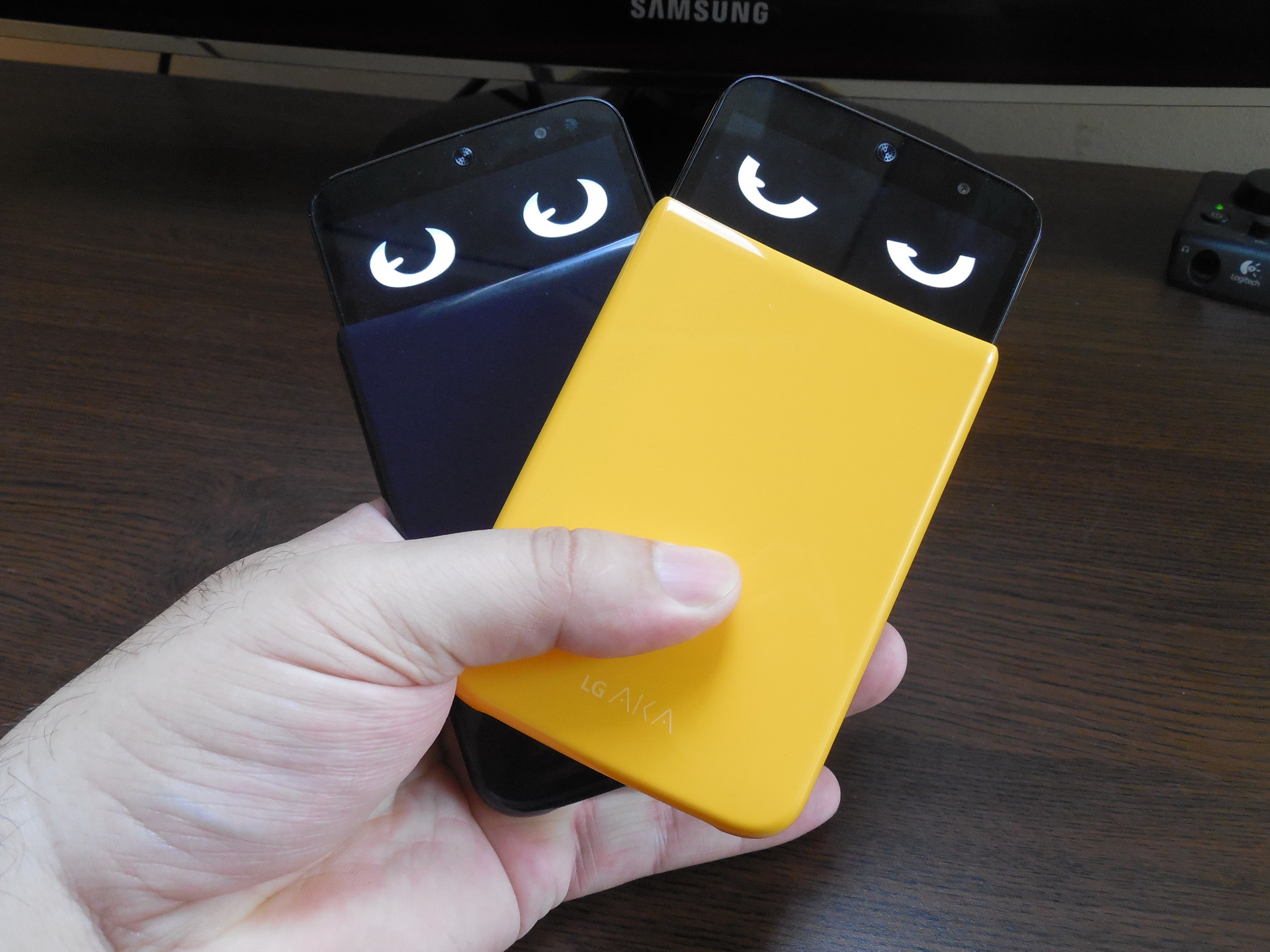 It’s finally time to publish the finalized review of the LG AKA, one of the cutest and funkiest handsets we’ve tested this year. The smartphone has its own personality and a set of eyes to show for it. We had it in two versions, the yellow and blue one, both detailed below. Launched in South Korea last fall, this handset debuted in Europe in May and it comes with a case that triggers a pair of on screen eyes, plus a bundled mascot.
