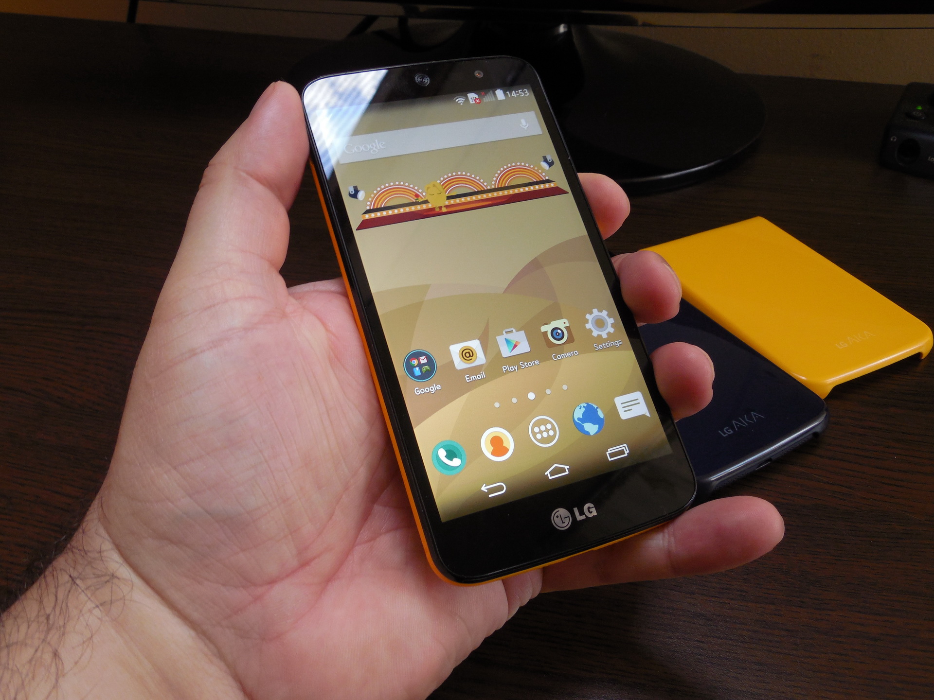LG AKA has a rather rounded design and it’s pretty comfy, but the creaking is annoying. I liked the shell that triggers those eyes, as a funky element and for the sake of protection. Moving on to hardware, the phone brings a 5 inch IPS display with a 1280 x 720 pixel resolution, a quad core Snapdragon 400 Cortex A7 processor, clocked at 1.2 GHz and the Adreno 305 GPU.