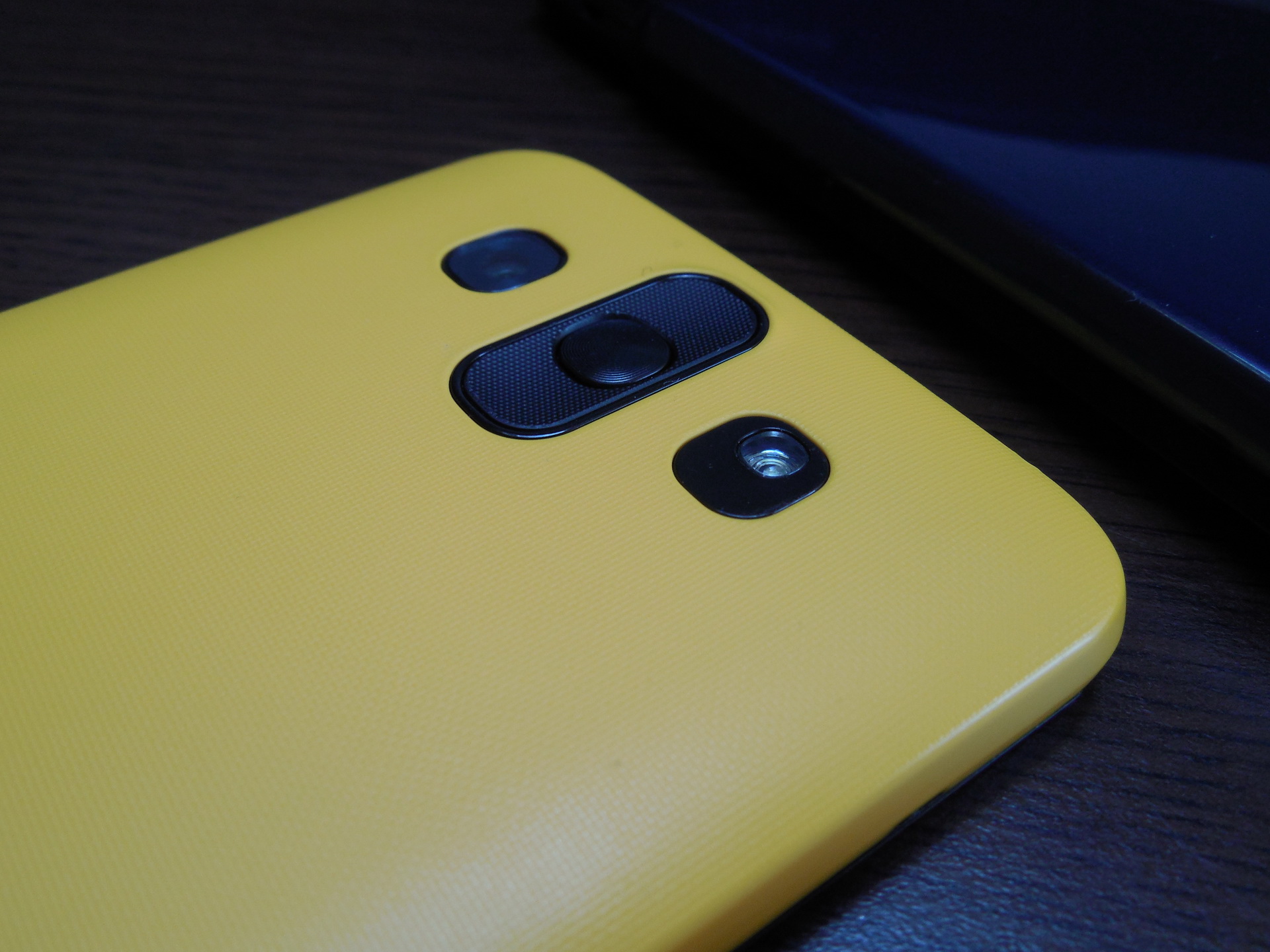 The back shell is easy to remove and it covers up the battery, microSIM and microSD card slot, with the latter two overlapped. The case of the phone feels a bit flimsy to be honest. The top side includes the audio jack and microphone and at the bottom we’ve got the speakers, microUSB and a grille, one for the microphone and one for the speaker. The sides hold a lanyard to the left and that’s about it.