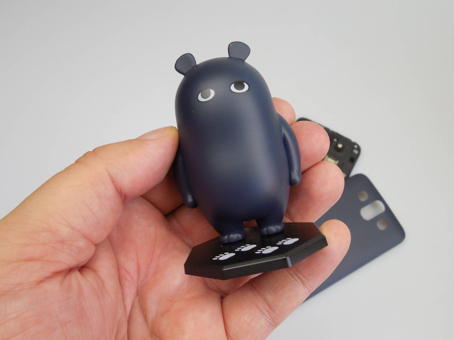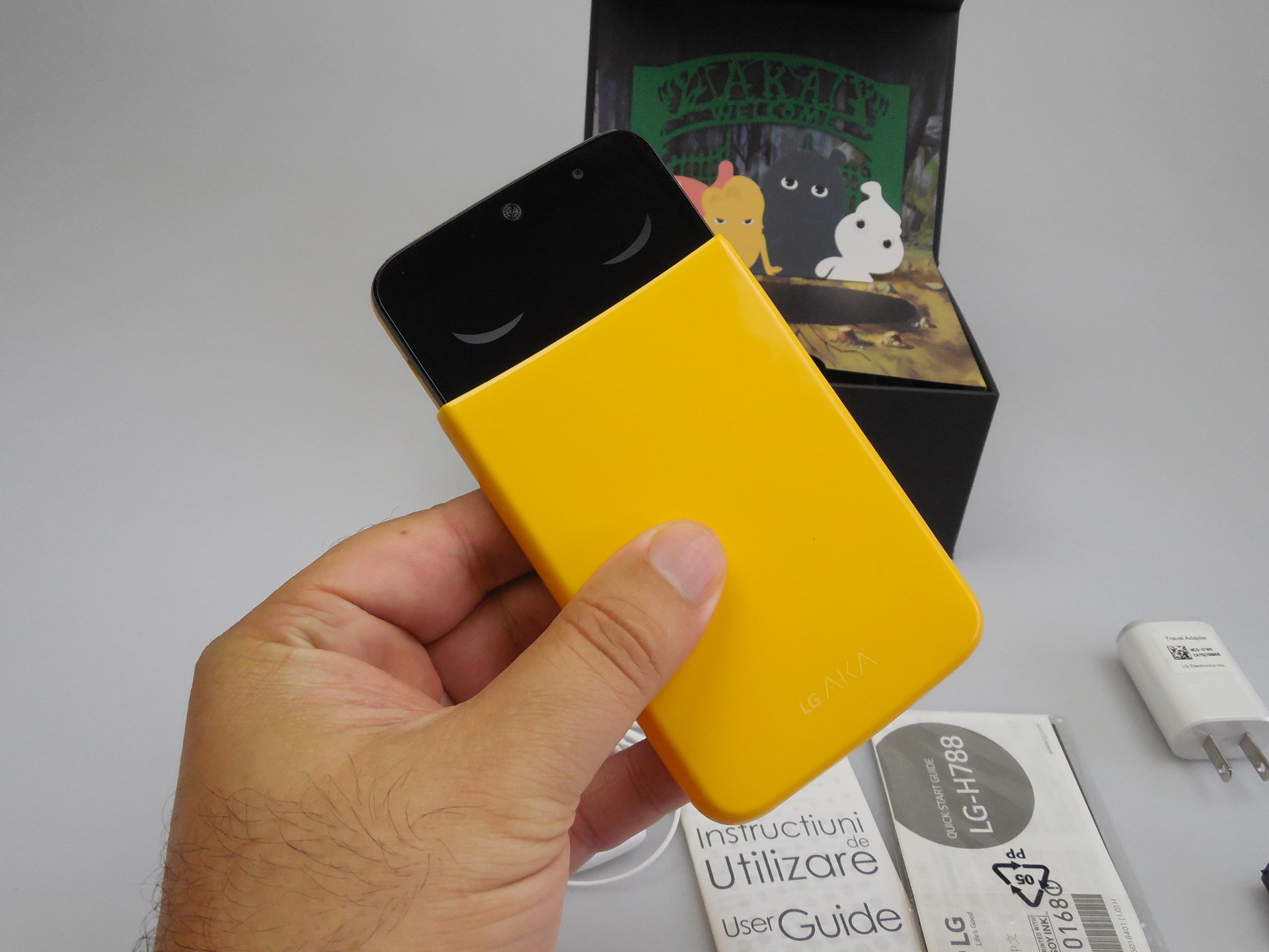 Priced at $240 on Amazon, the smartphone has 4 versions: white, blue, yellow and pink. It measures 9.9 mm in thickness, weighs 135 grams and it’s quite big for a 5 inch phone. Its case is made of plastic and tends to creak quite a bit. The same case has a dotted texture and the phone feels quite light and easy to use with one hand. Grip is good and the mascot bundled with the AKA comes in 4 guises.