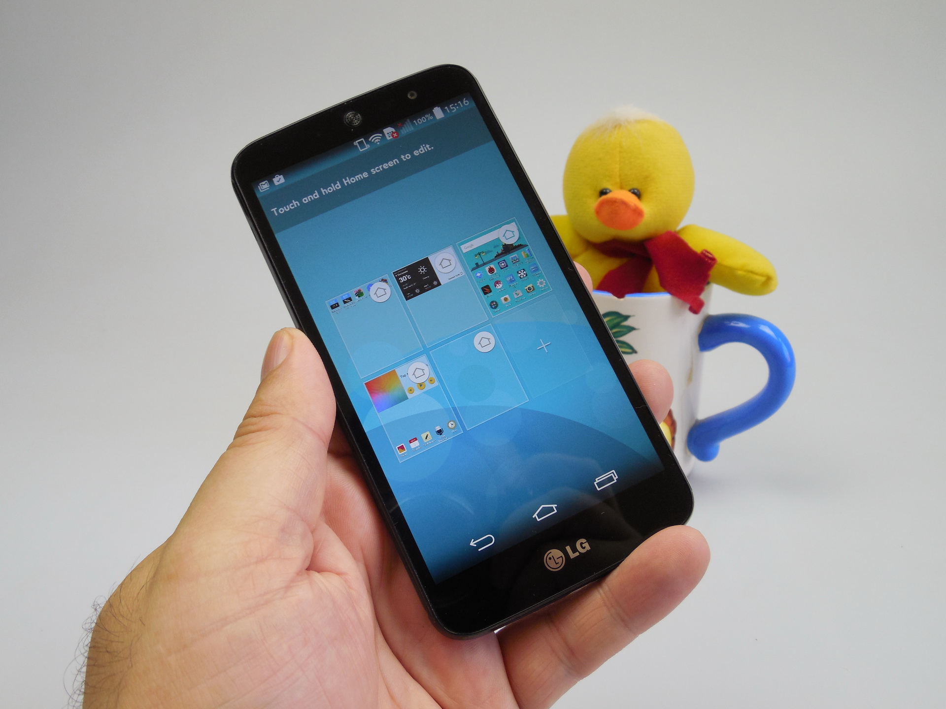Multitasking is done with the aid of thumbnails, much like on HTC Sense (9 of them) and the widgets are not many in number and they’re a combo of stock Android ones and LG ones. If you keep an icon pressed you can change its pictogram, by the way. The dropdown area is crowded on the small screen, including notifications and Quick Settings in this area, plus 2 sliders (volume and brightness). Things can get a bit hectic there…