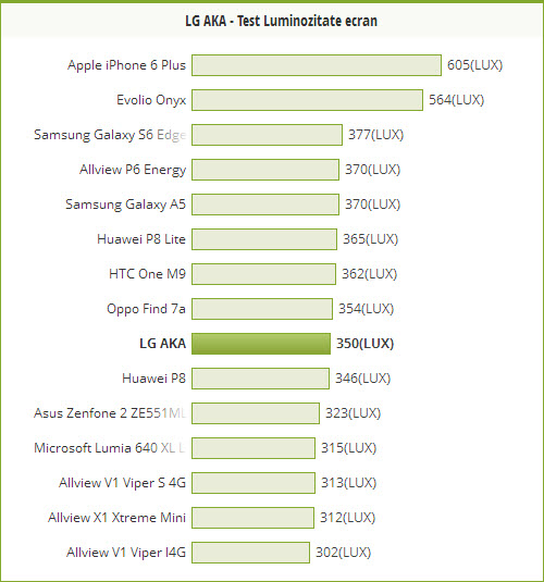 Pixels are of the RGB Stripe kind and during our test with a luxmeter, we achieved 350 LUX units, which is good for a midranger. We beat the LG G Flex 2, that achieved 266 LUX and the Huawei P8 with its 346 LUX, as well as the ASUS ZenFone 2 and its 323 LUX. Still, we scored below the Galaxy A5 and its 370 LUX, or the Wiko Rainbow and its 424 LUX.