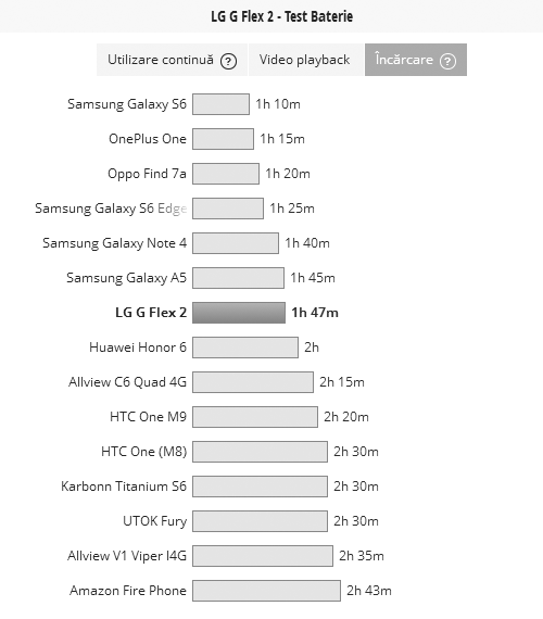 G Flex 2 wins 1 of the 11 battles in front of the Galaxy S6, 9 out of 11 in front of the G Flex and 6 out of 11 in front of the HTC One M9. Obviously there’s no lag and we can run the newest games available. The OS installed here is Android 5.0.1 with the same LG customized UI as the one from the LG G3. There’s carousel multitasking, a clear all option and the option to pinch to edit homescreens.