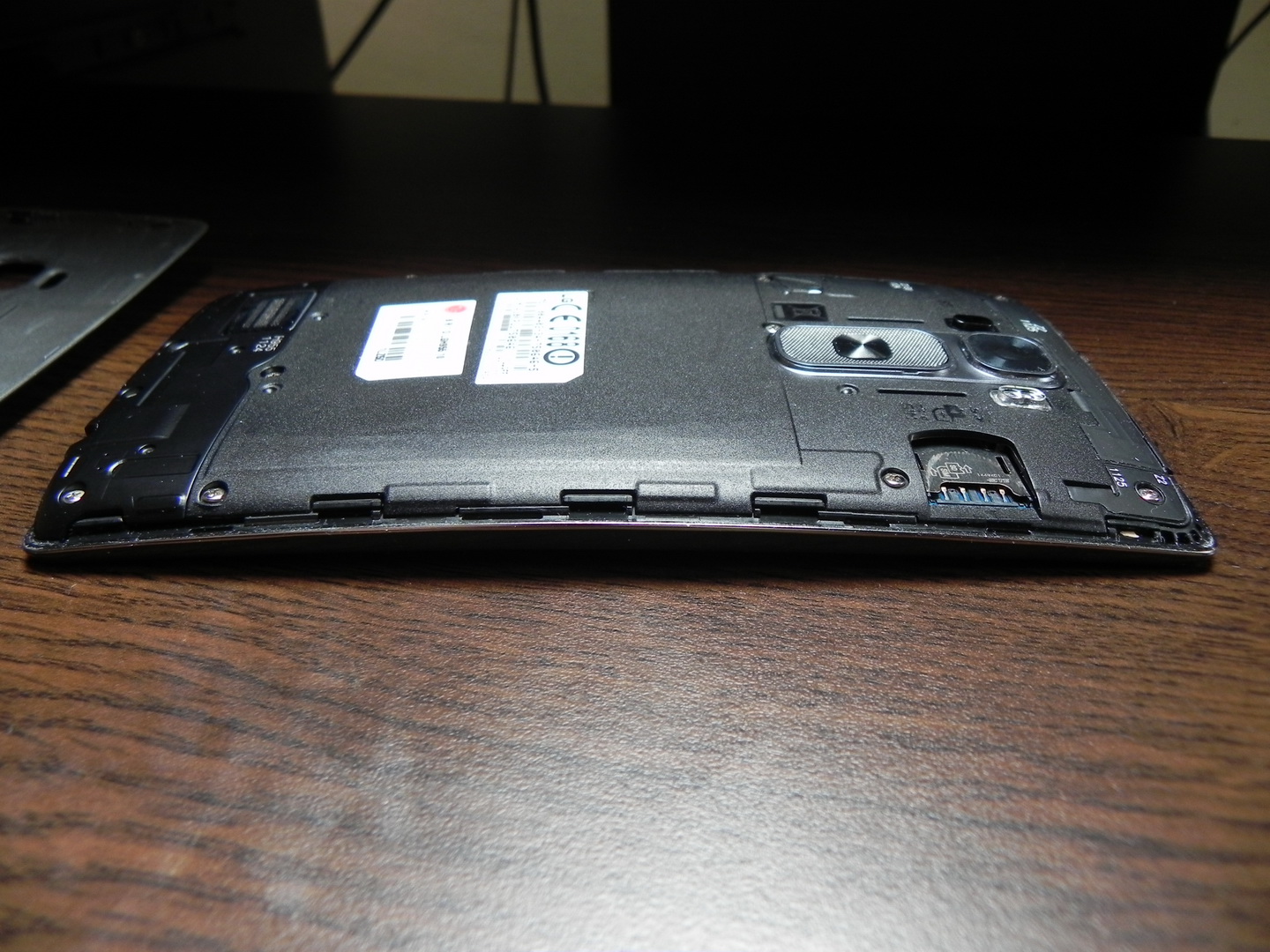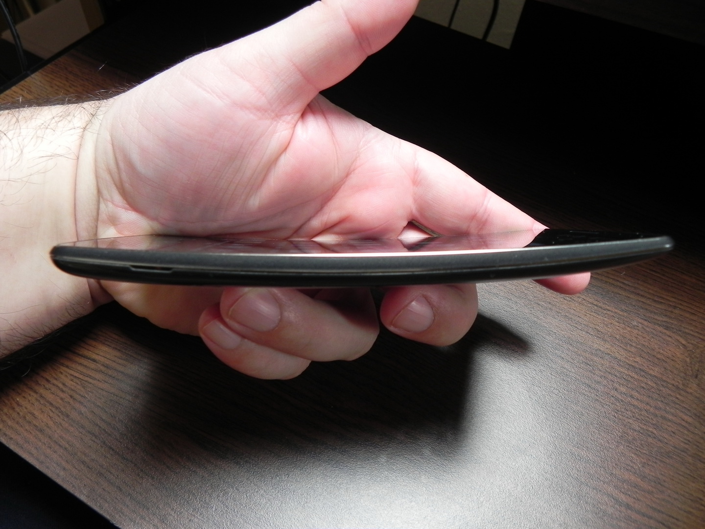 It’s comfier to use and sits excellently in the user’s hand and pocket, once again compared to the G Flex 1. I also noticed it’s more rigid when being flexed and unlike the previous unit, it doesn’t flex for show anymore, but only in extreme situations. The body is made of glossy plastic and it has a self healing back, with the healing time reduced to 10 seconds for minor scratches, down from 3 minutes.