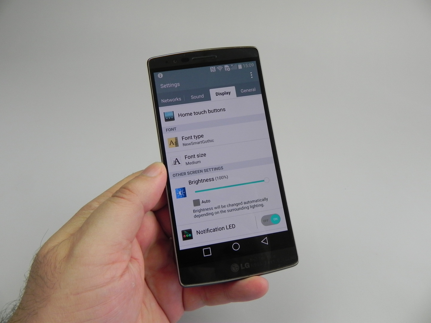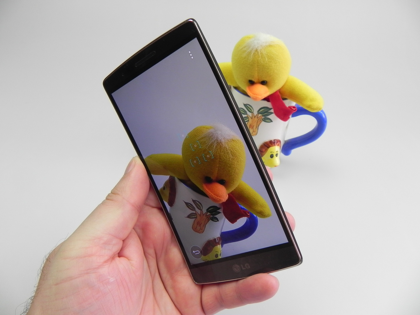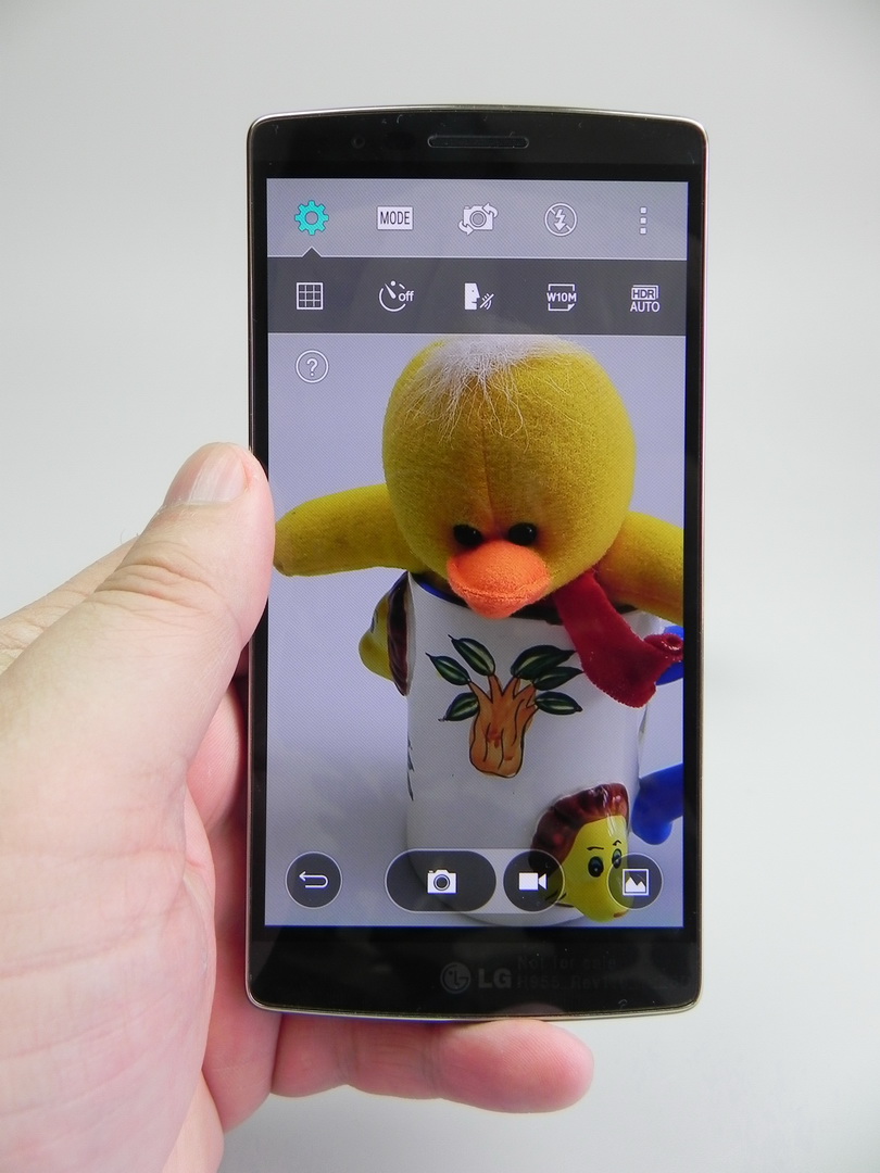 Auto Adjust Screen Tone is also here as well as a sort of Glance feature in the lockscreen, by gently swiping down from its top. Overall, an unimpressive screen, because of its brightness. The main camera is the same 13 megapixel unit from the LG G3, with optical image stabilization and phase detection autofocus, aided by an infrared sensor.