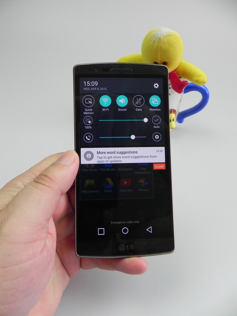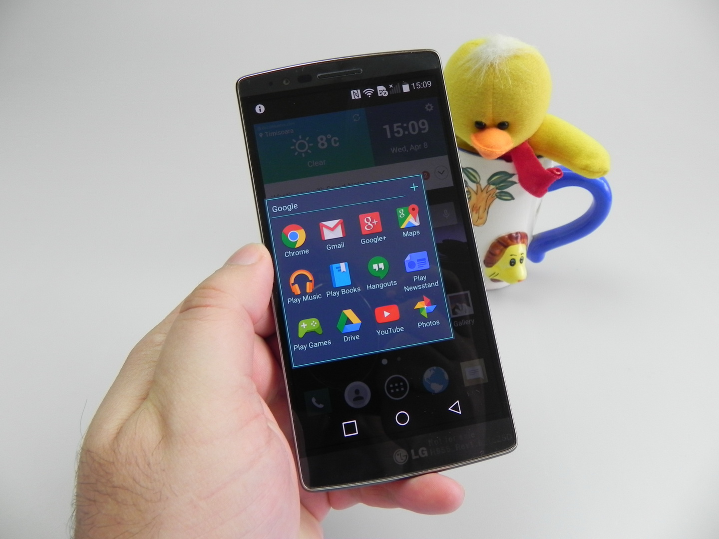 There’s also a special widget, the Smart Notice thingie, that lets you know what clothes to wear depending on weather changes, notifies you about a birthday, about a missed call you need to attend to and offers fitness and recommendations depending on your behaviour. The dropdown area includes notifications, Google Now cards, brightness and volume sliders, Quick Memo+, Q Slide (floating mini apps), Quick Remote and Voice Mate, as some of the Quick Settings, plus more.